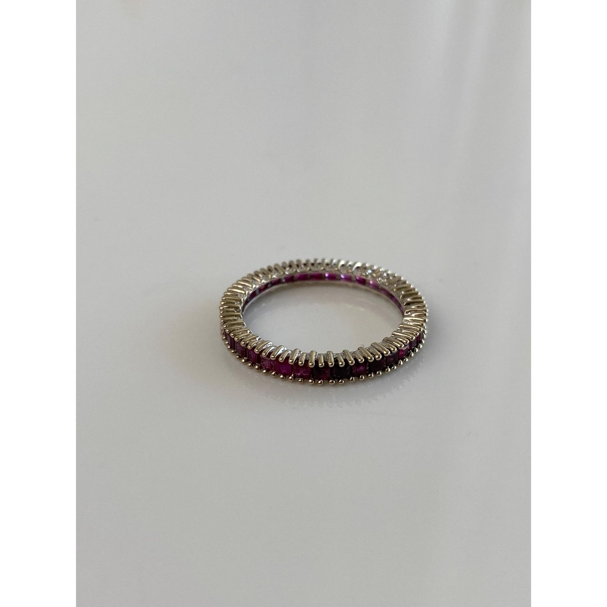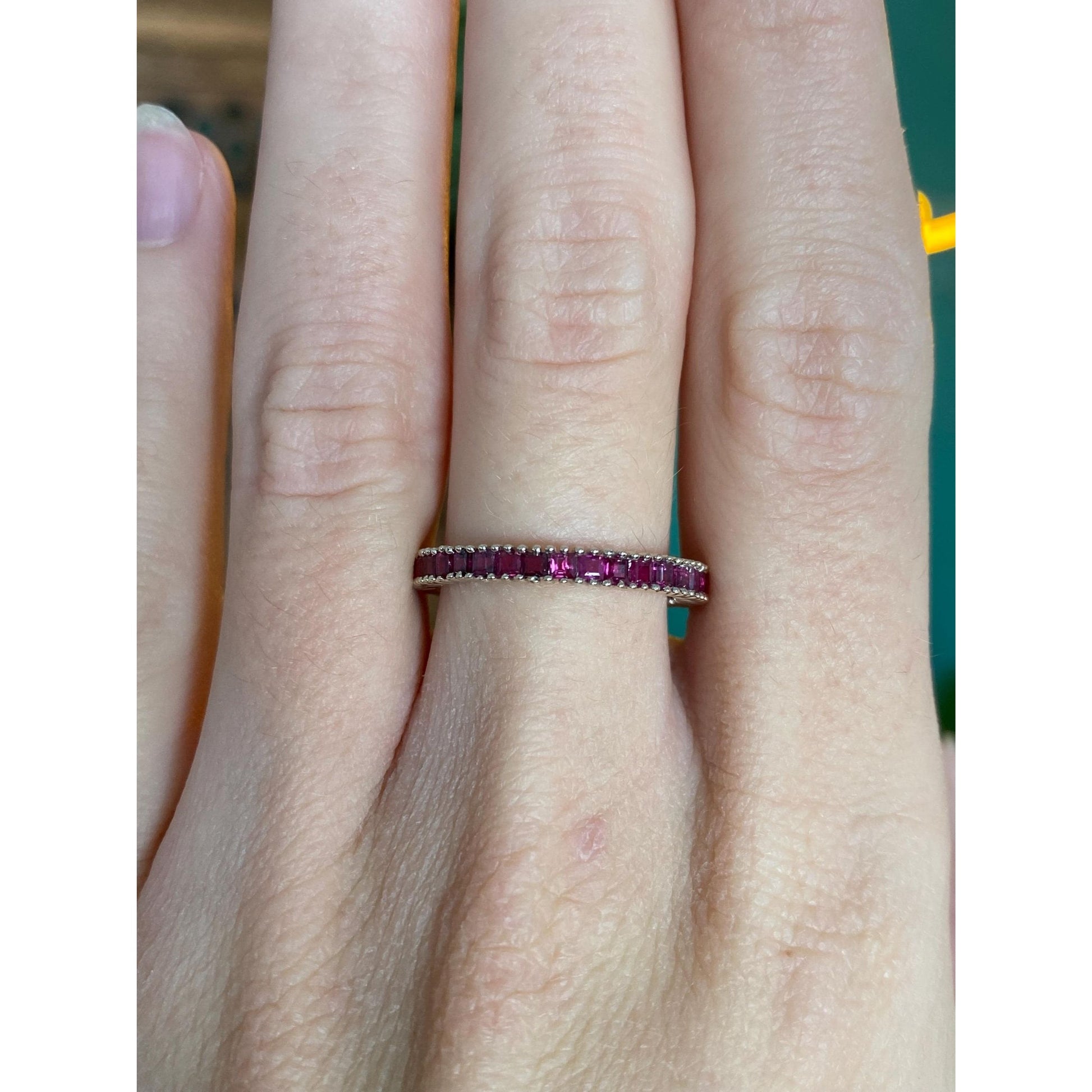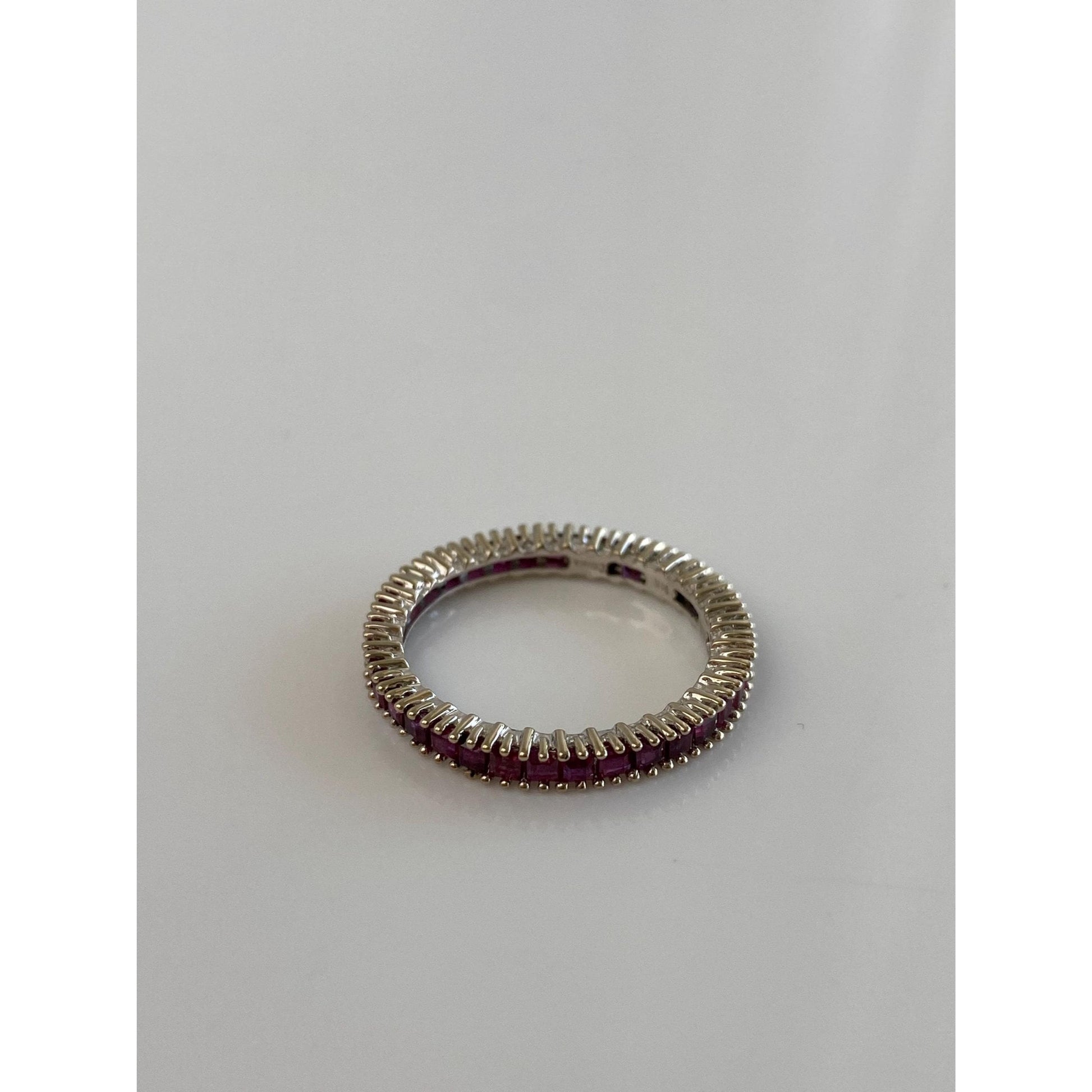 Vintage Solid 14k White Gold Pink Sapphire Ring Band - Size 7
