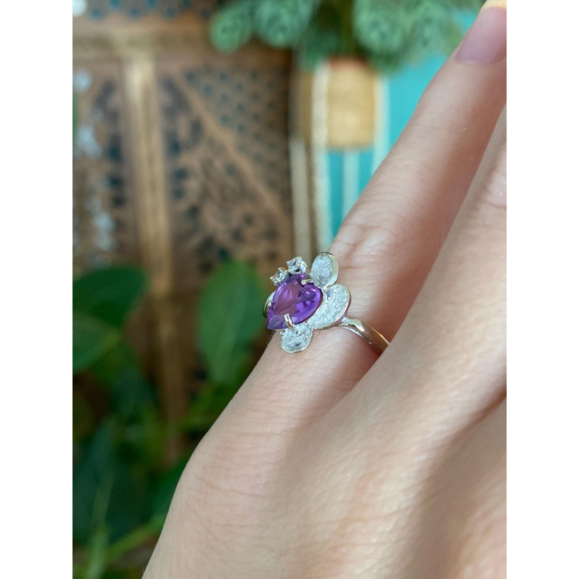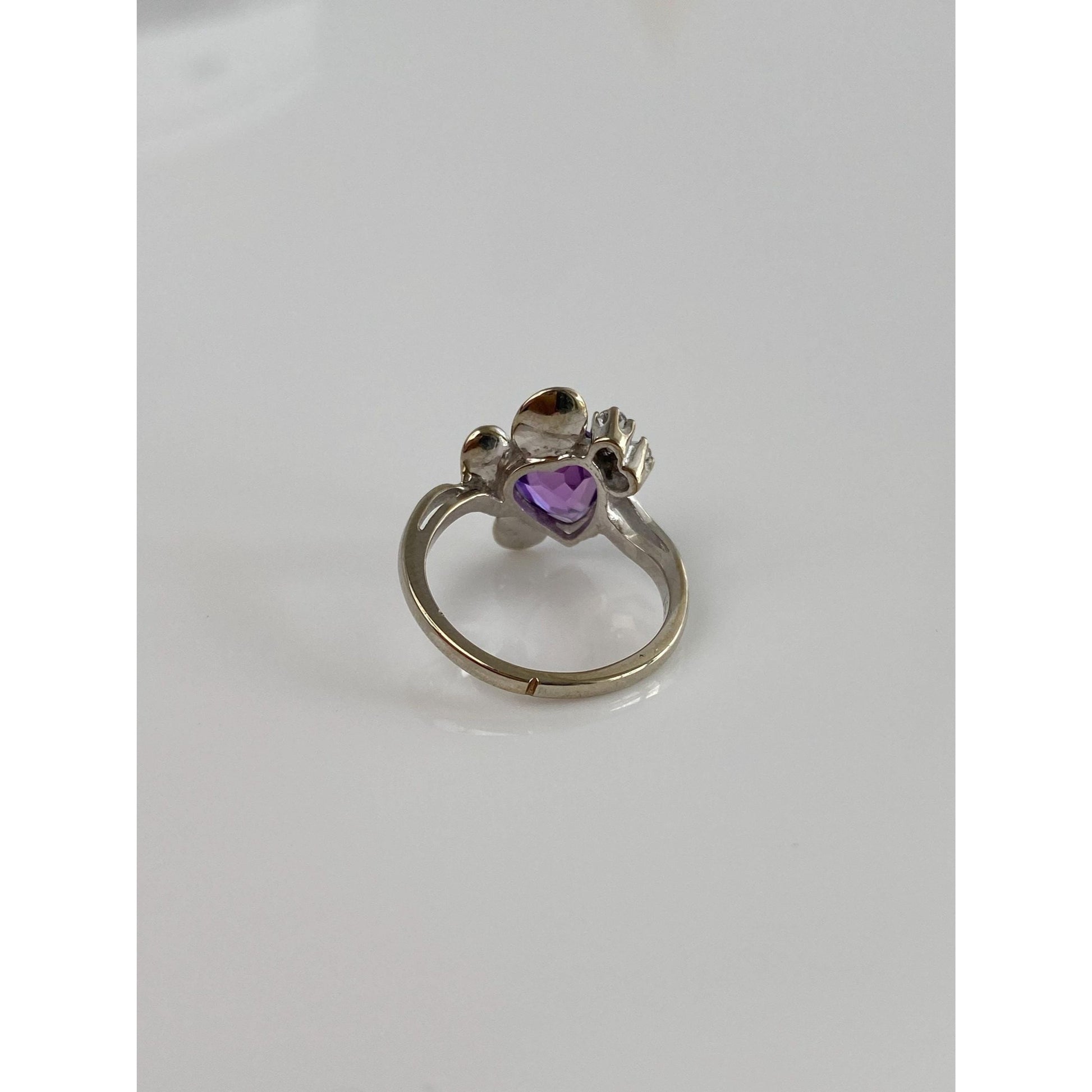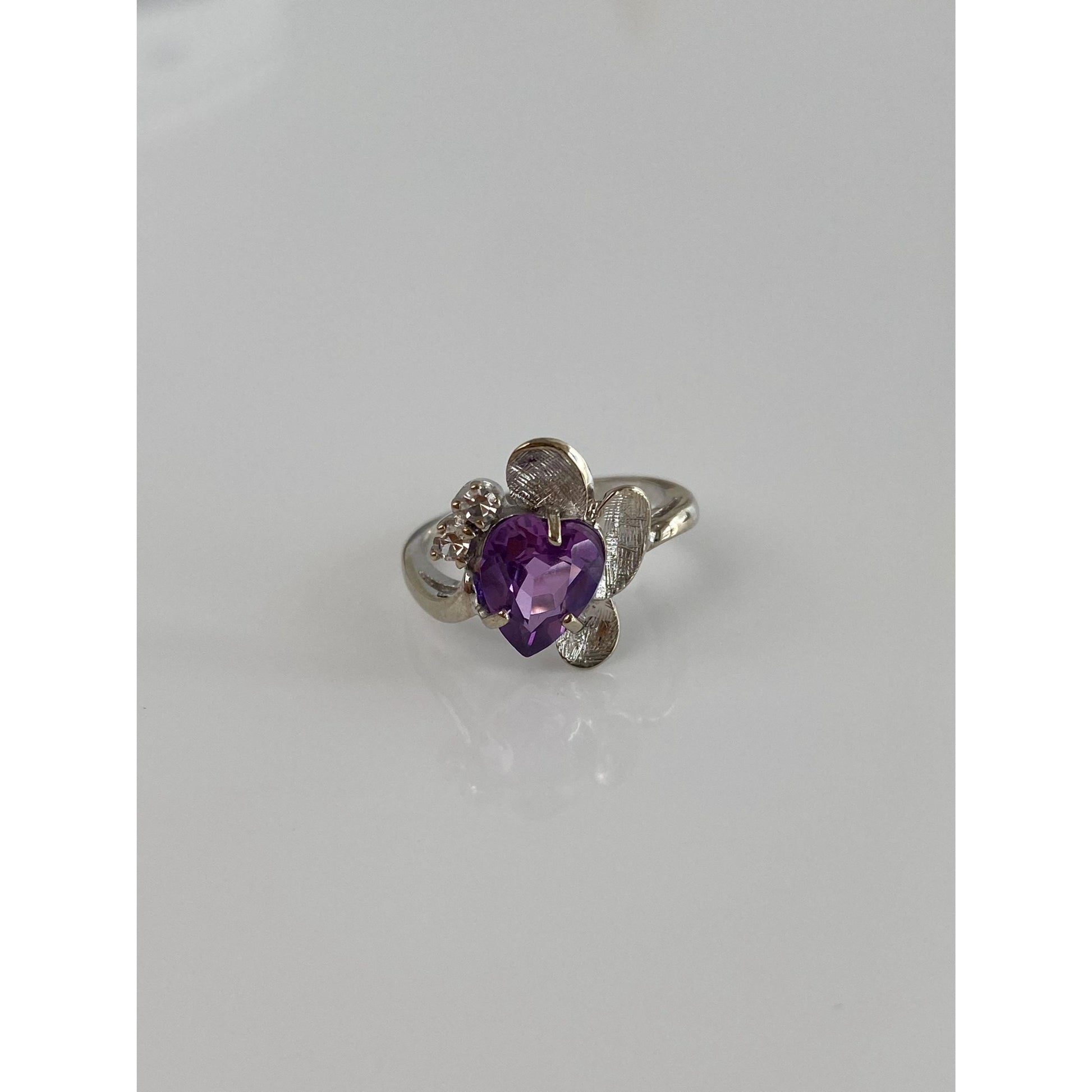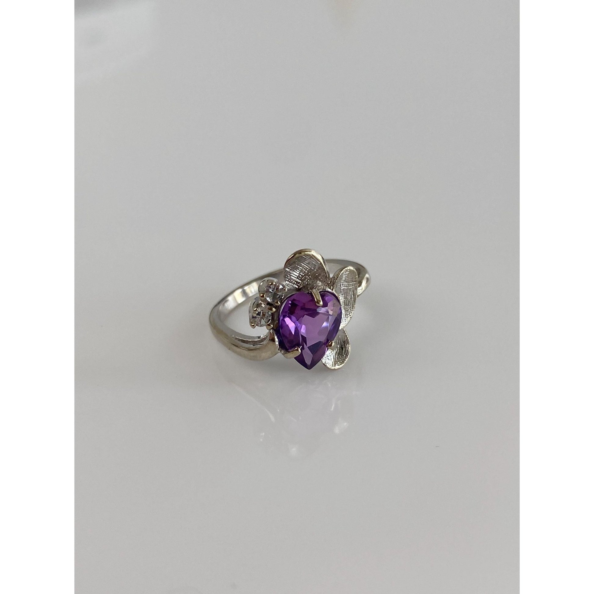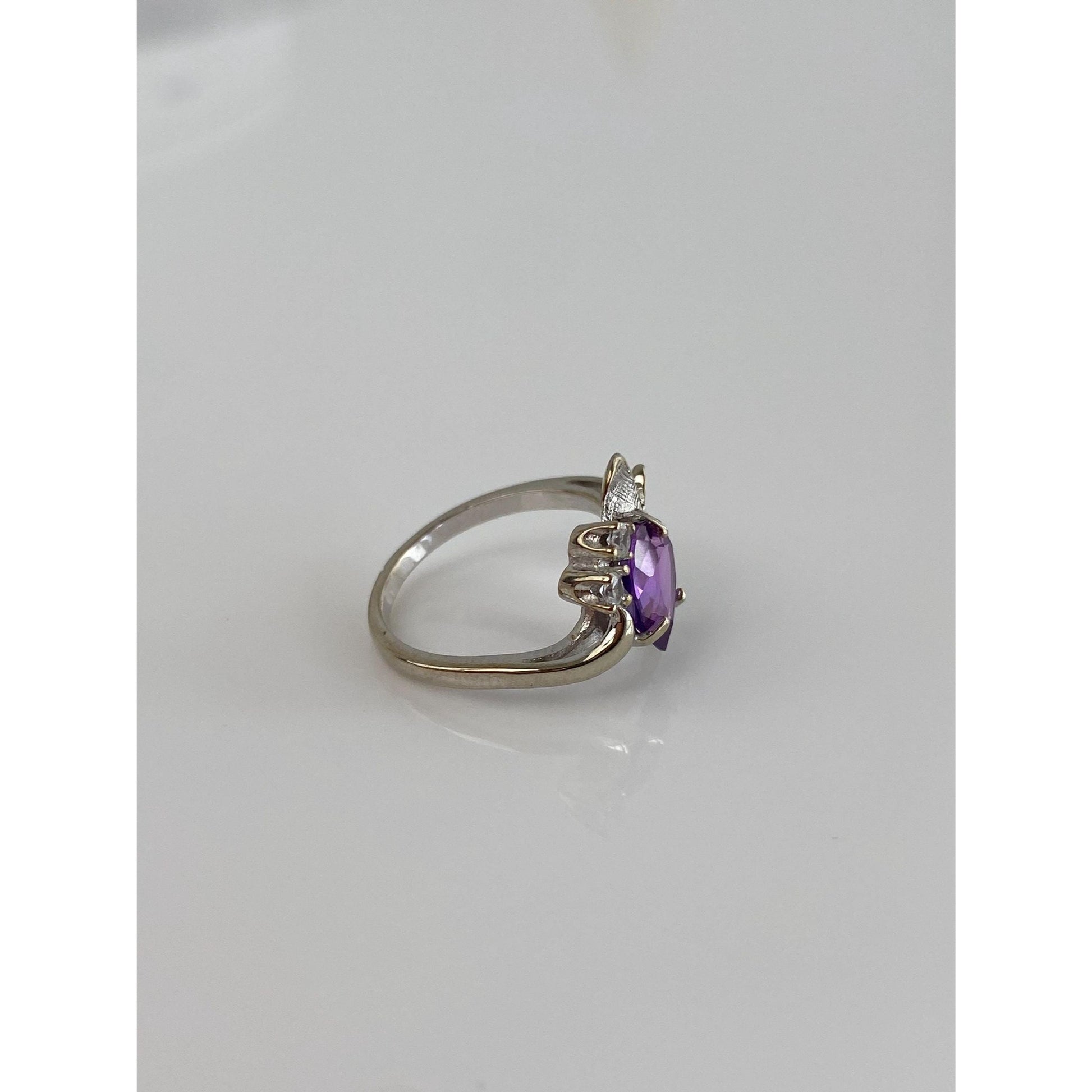 Vintage Solid 14k White Gold Purple Sapphire Clear Quartz Ring - Size 3.75