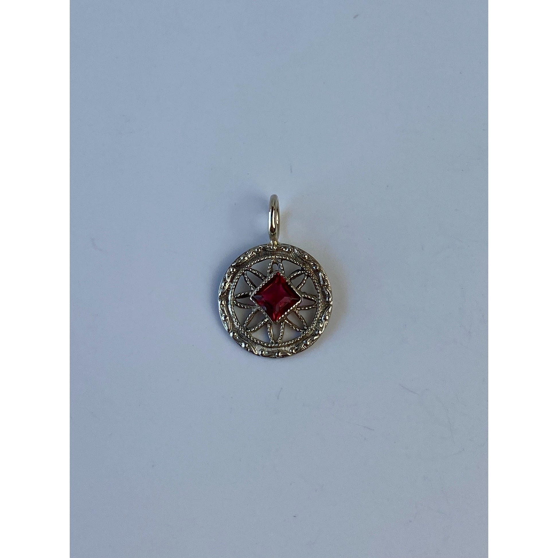 Vintage Solid 14k White Gold Red Cubic Zirconia Charm