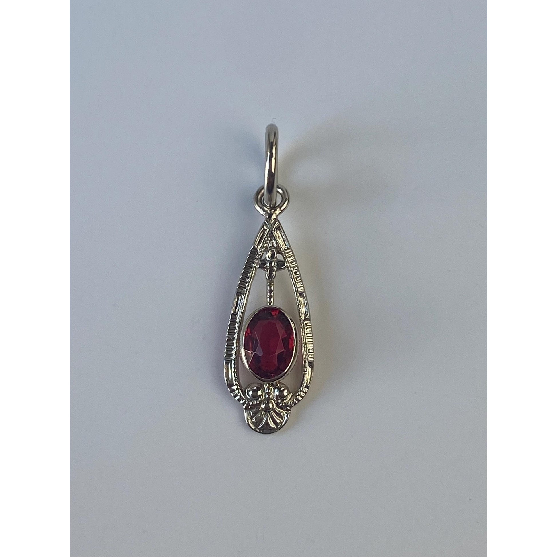 Vintage Solid 14k White Gold Red Cubic Zirconia Stick Pin Conversion Charm