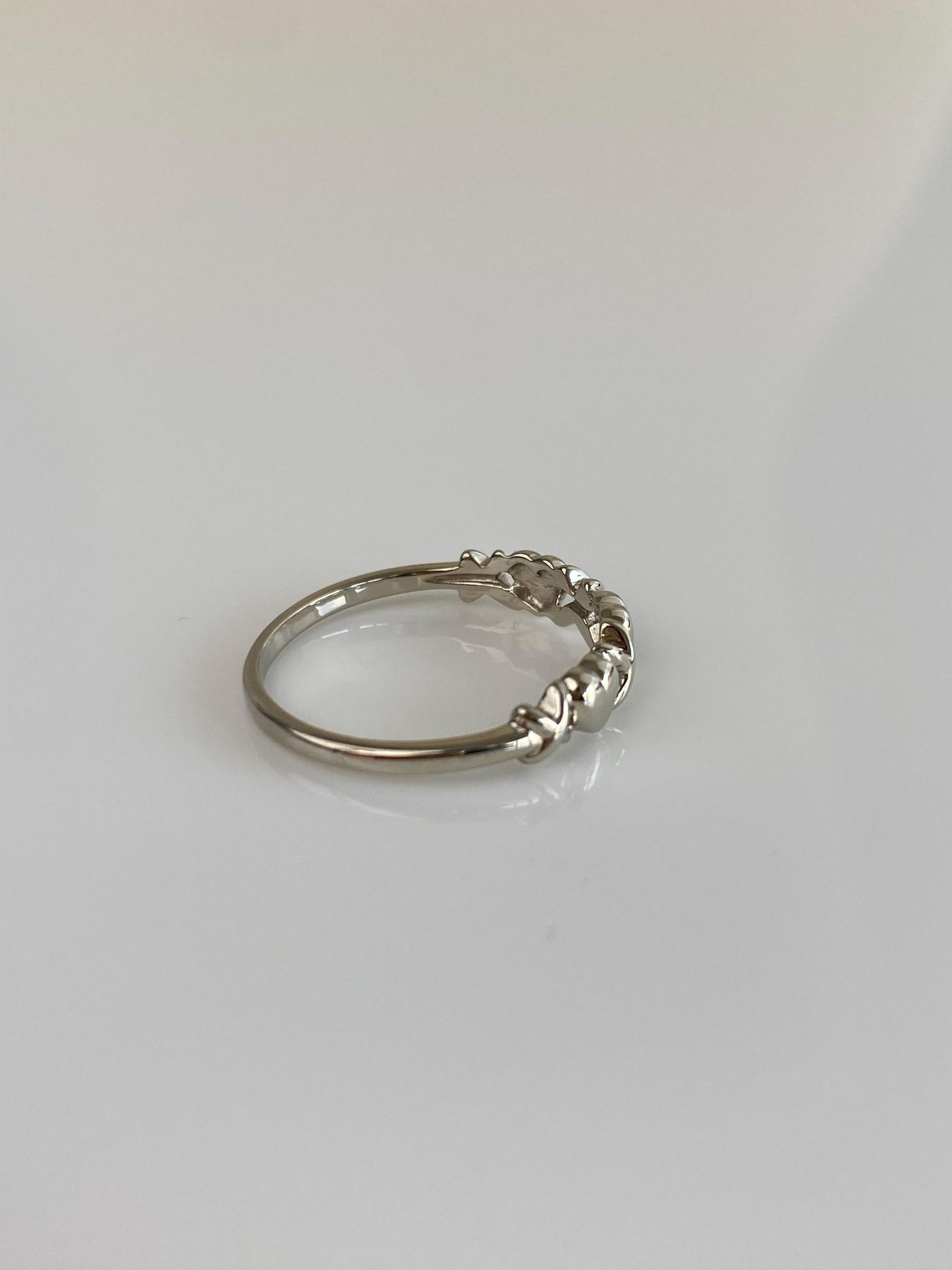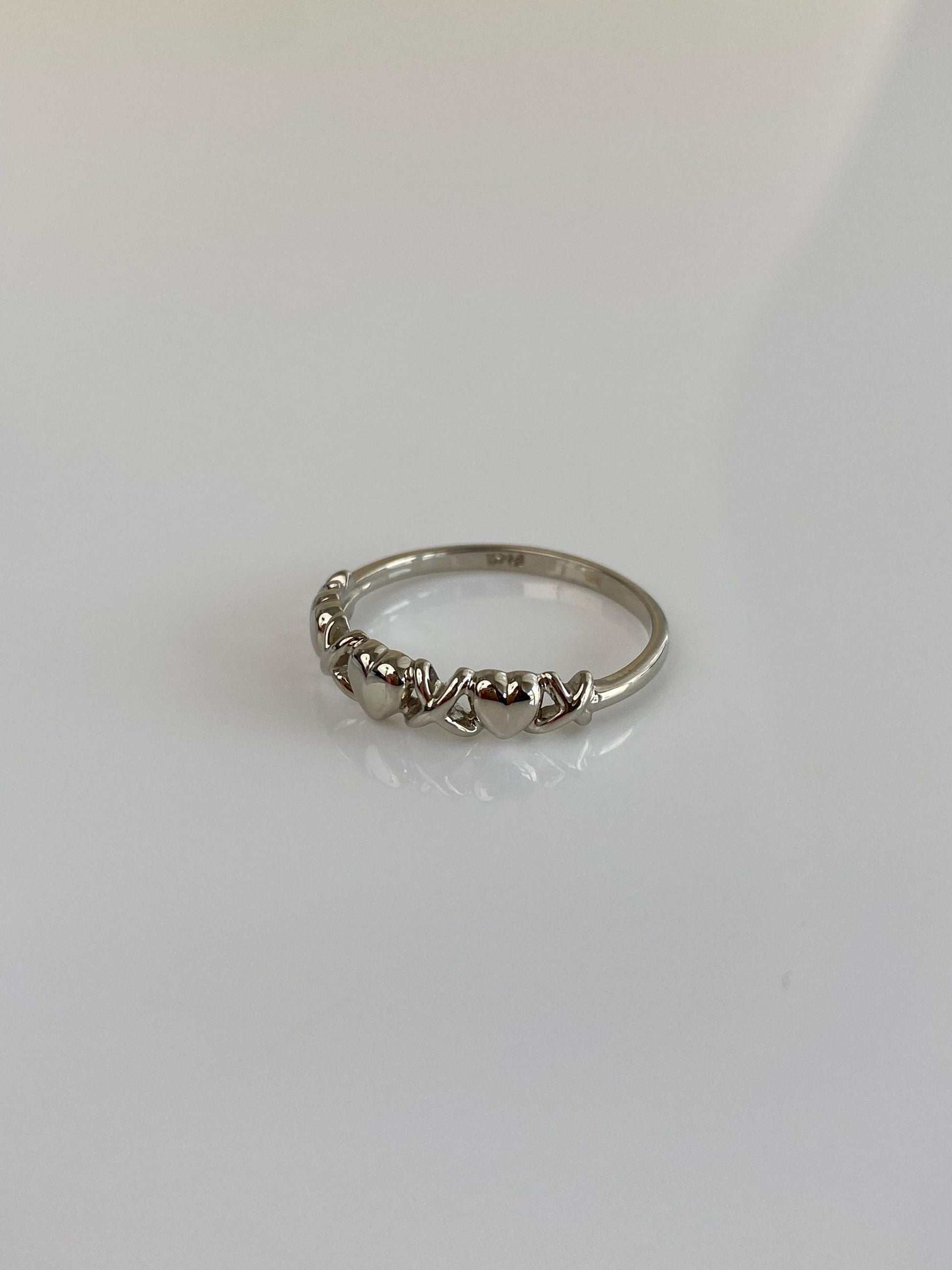 Vintage Solid 14k White Gold X Heart Ring Band - Size 6.75