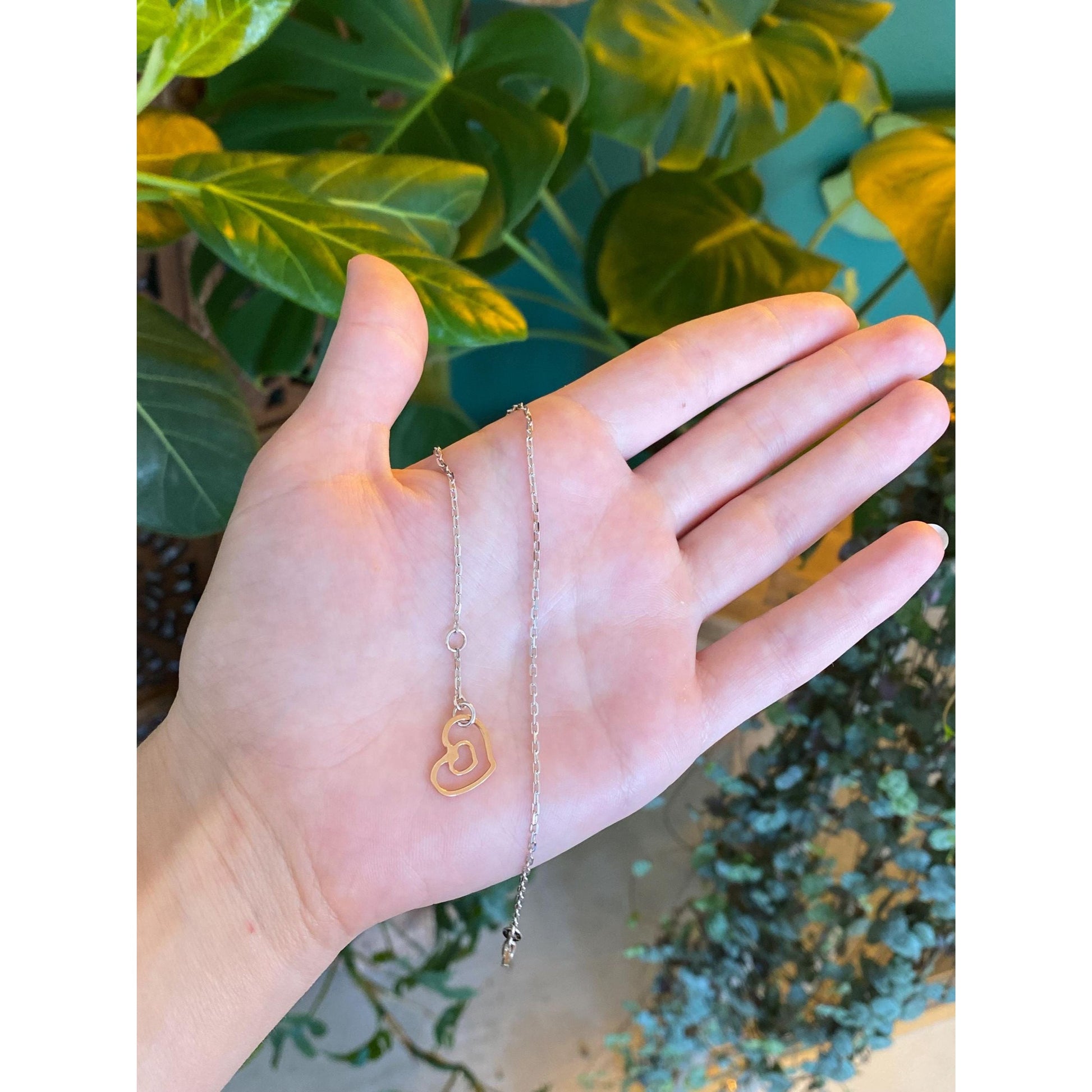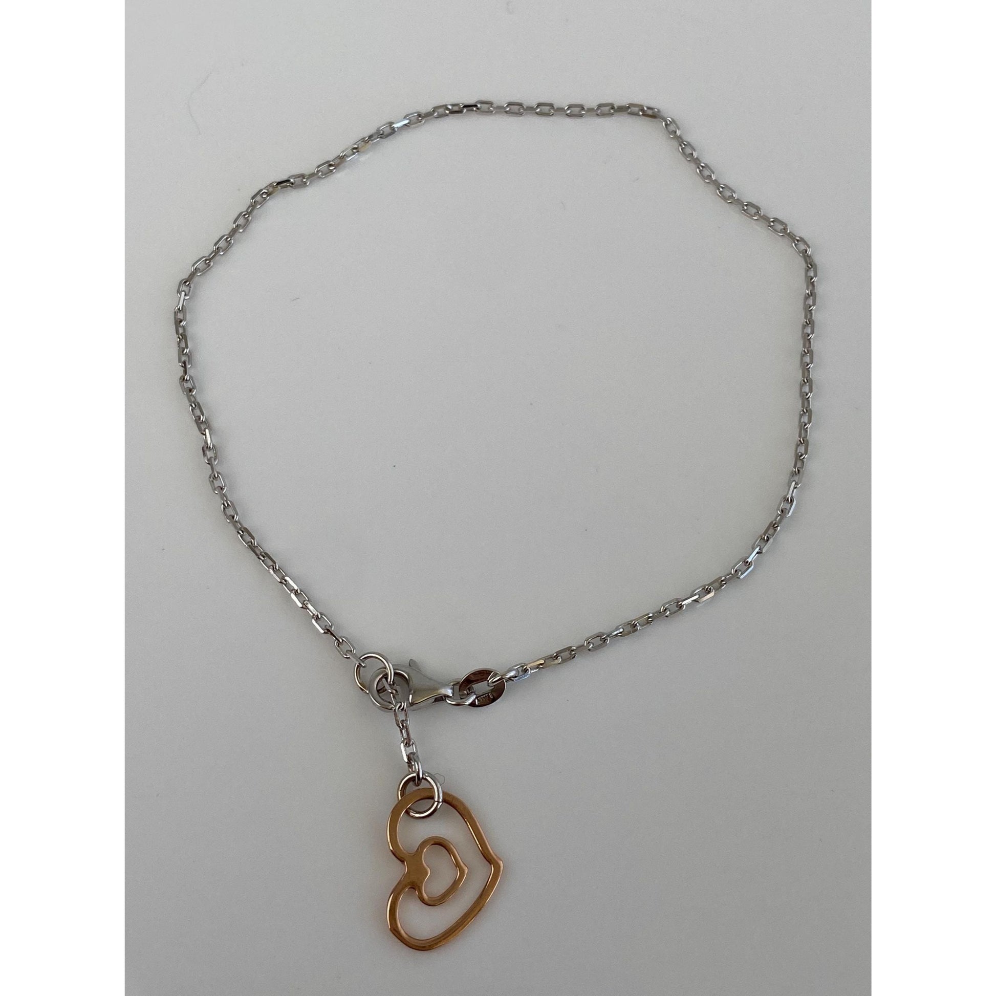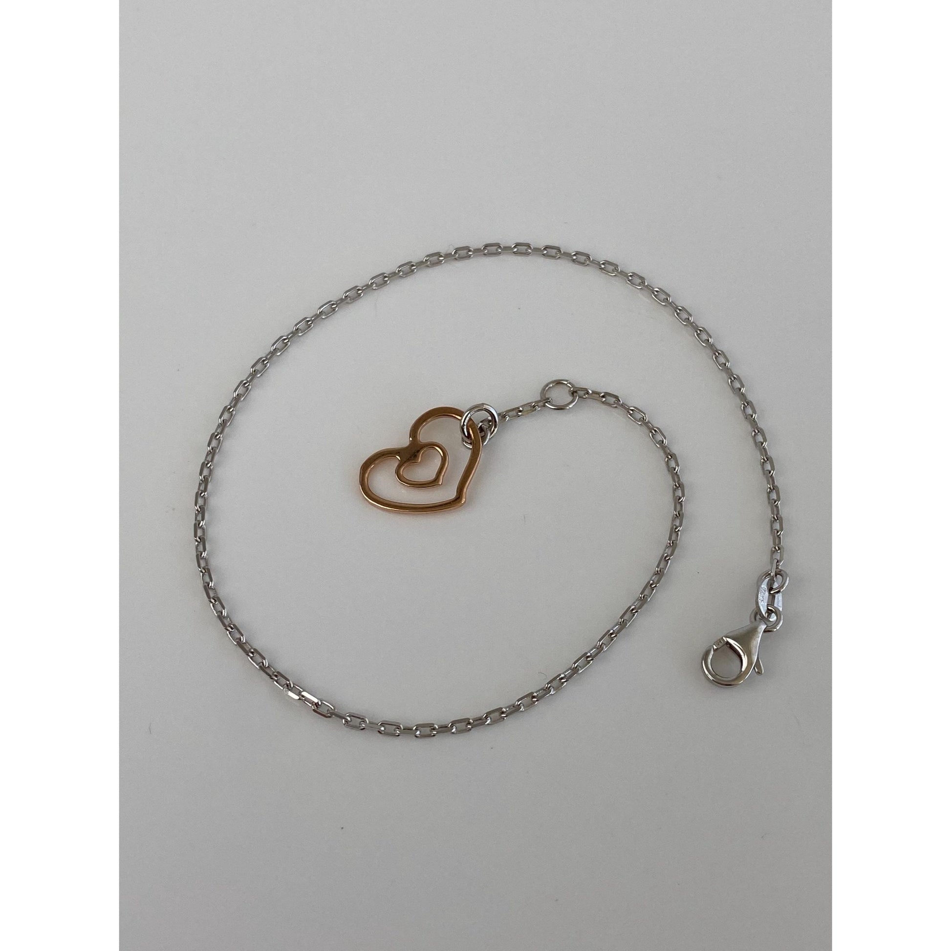 Vintage Solid 14k White & Rose Gold Biker Link Chain Heart Bracelet/Anklet - 9.75 inches
