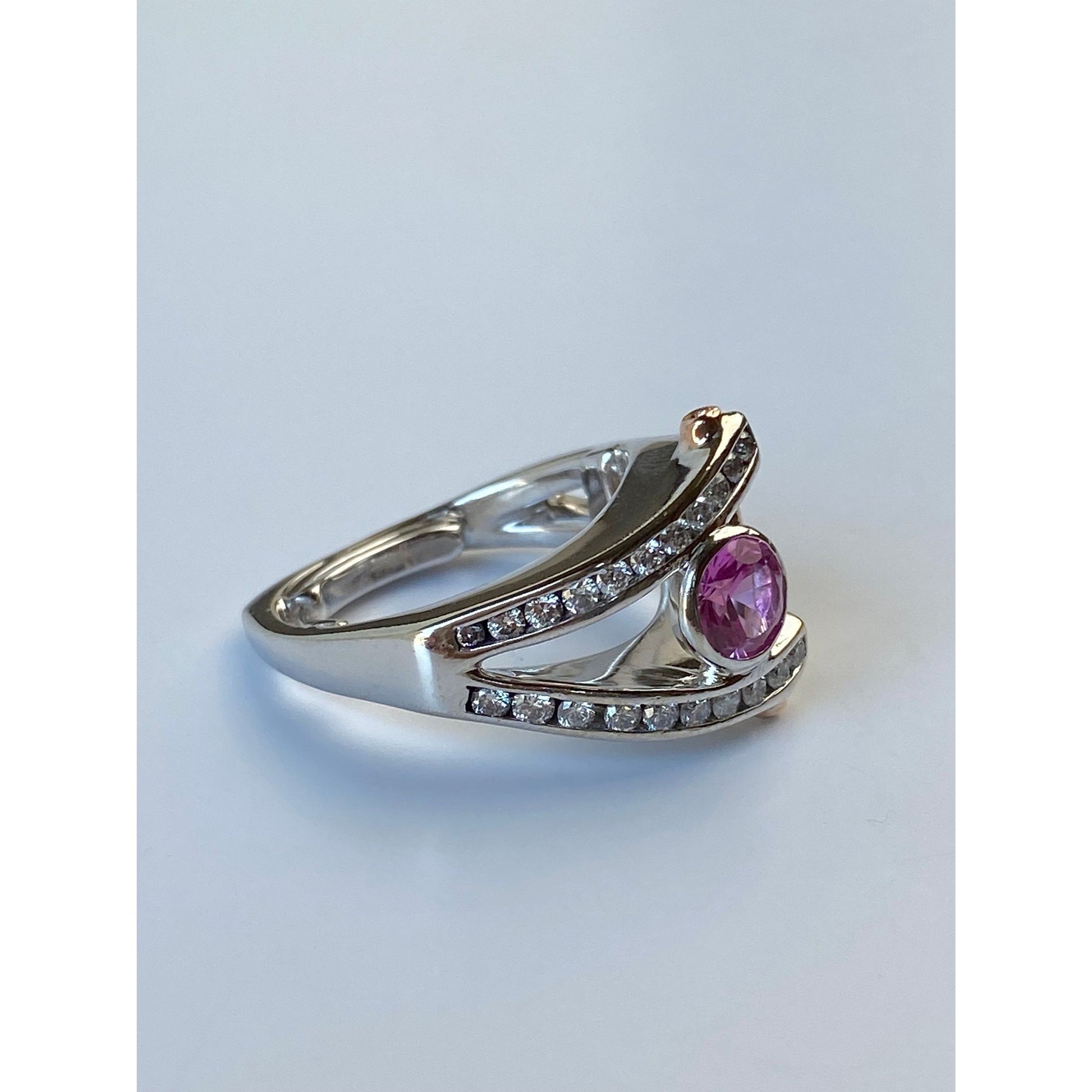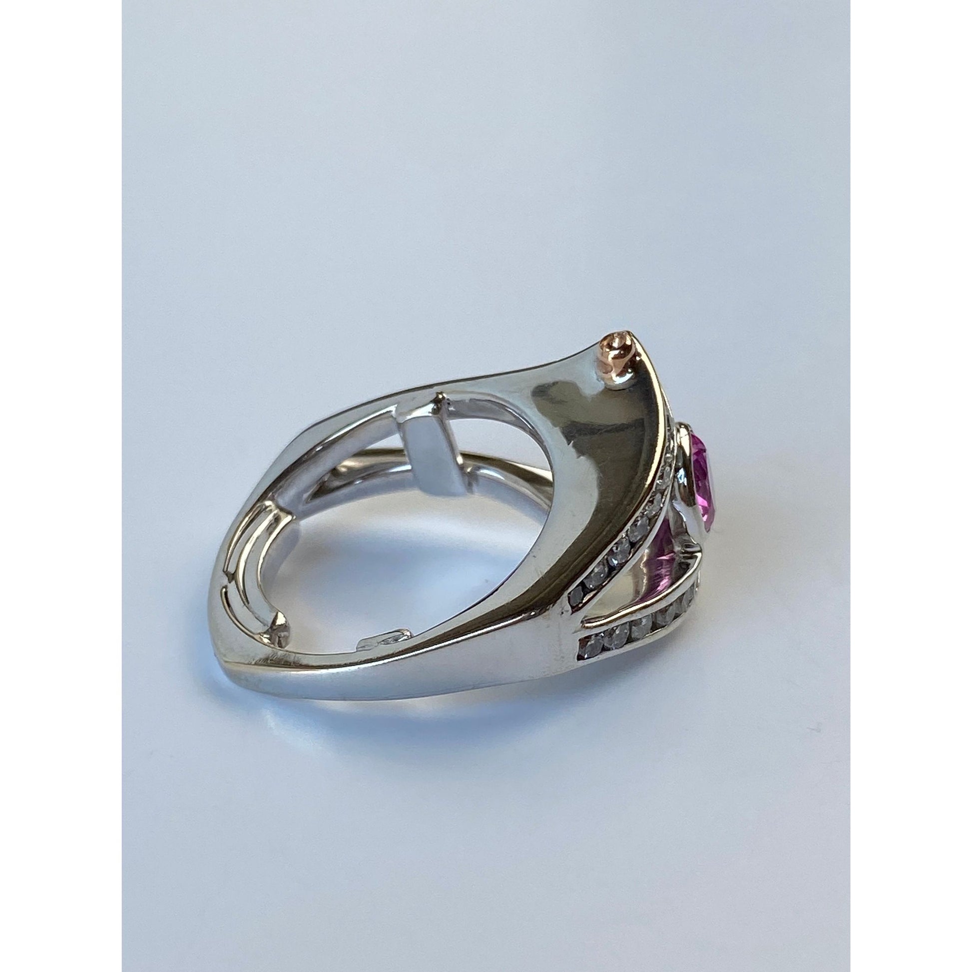 Vintage Solid 14k White & Rosey Gold Chunky Pink Sapphire Diamond Ring - Size 6.25