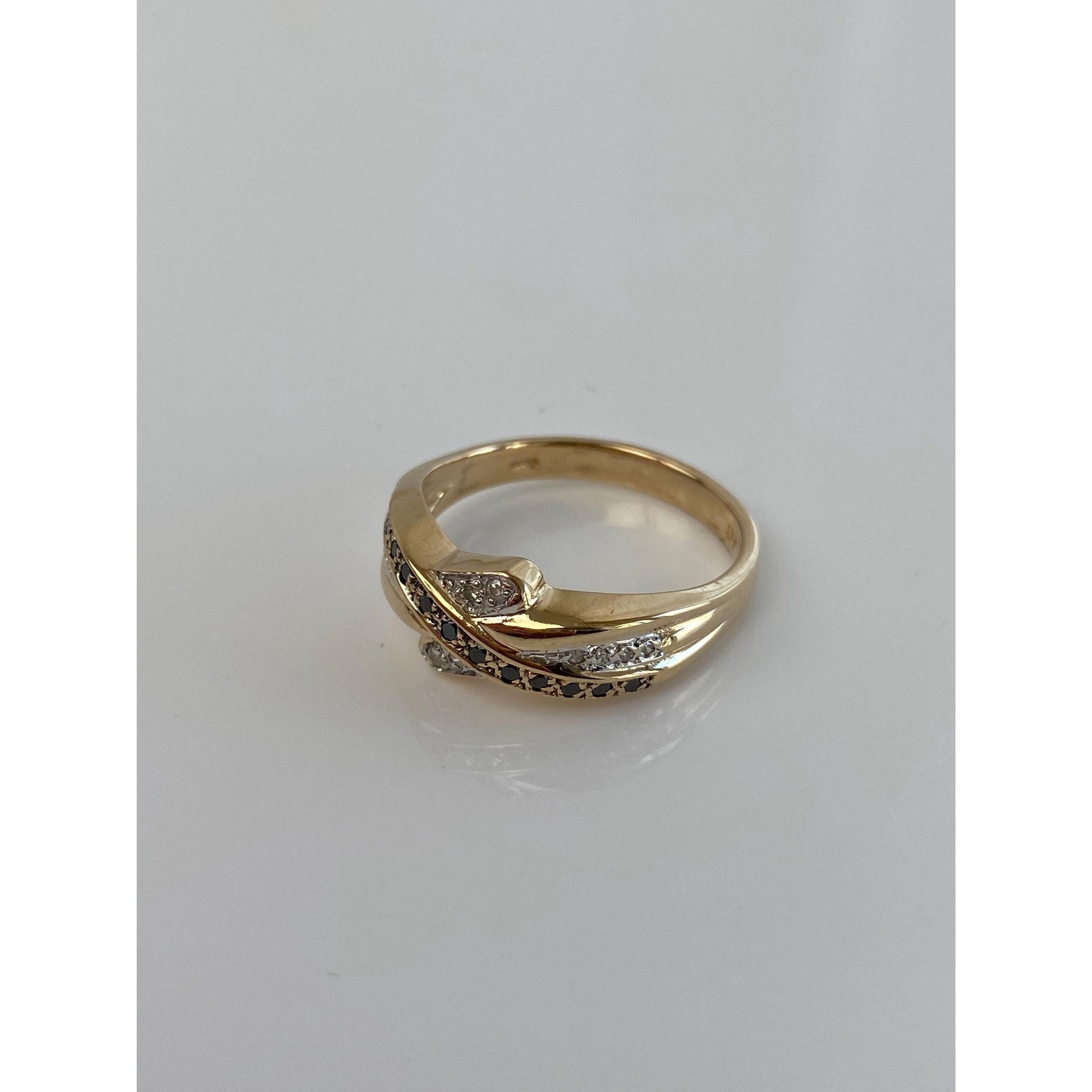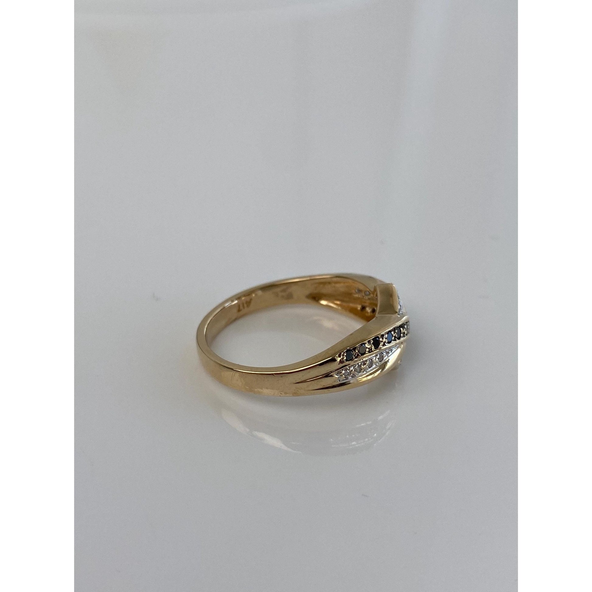 Vintage Solid 14k White & Yellow Gold Black Clear Diamond Twist Ring - Size 9.5