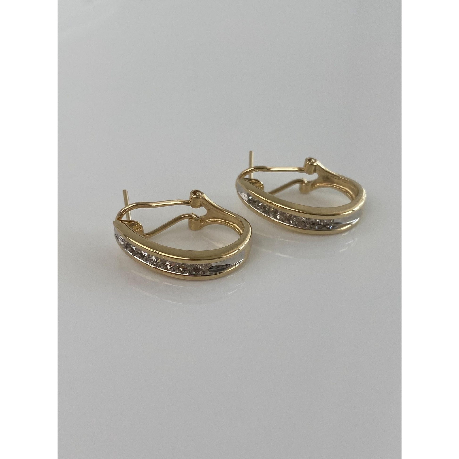 Vintage Solid 14k White & Yellow Gold Cubic Zirconia Drop Earrings