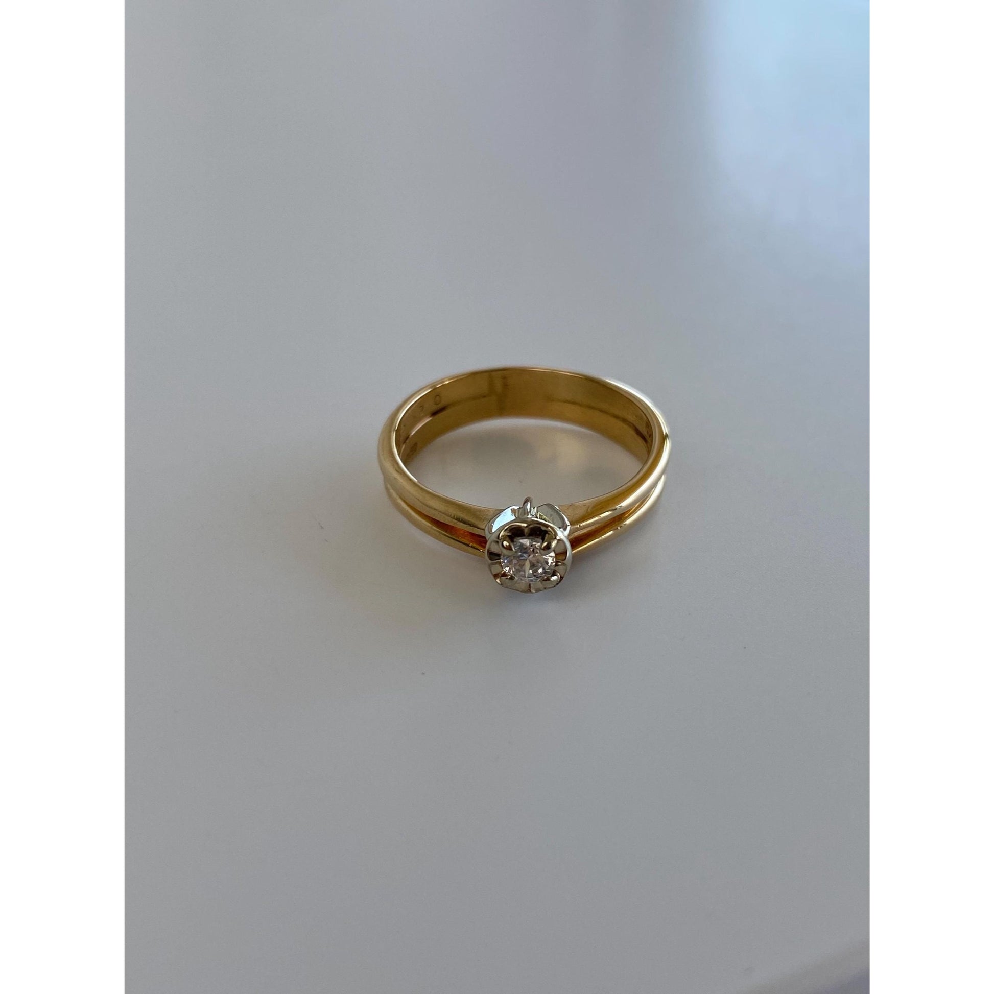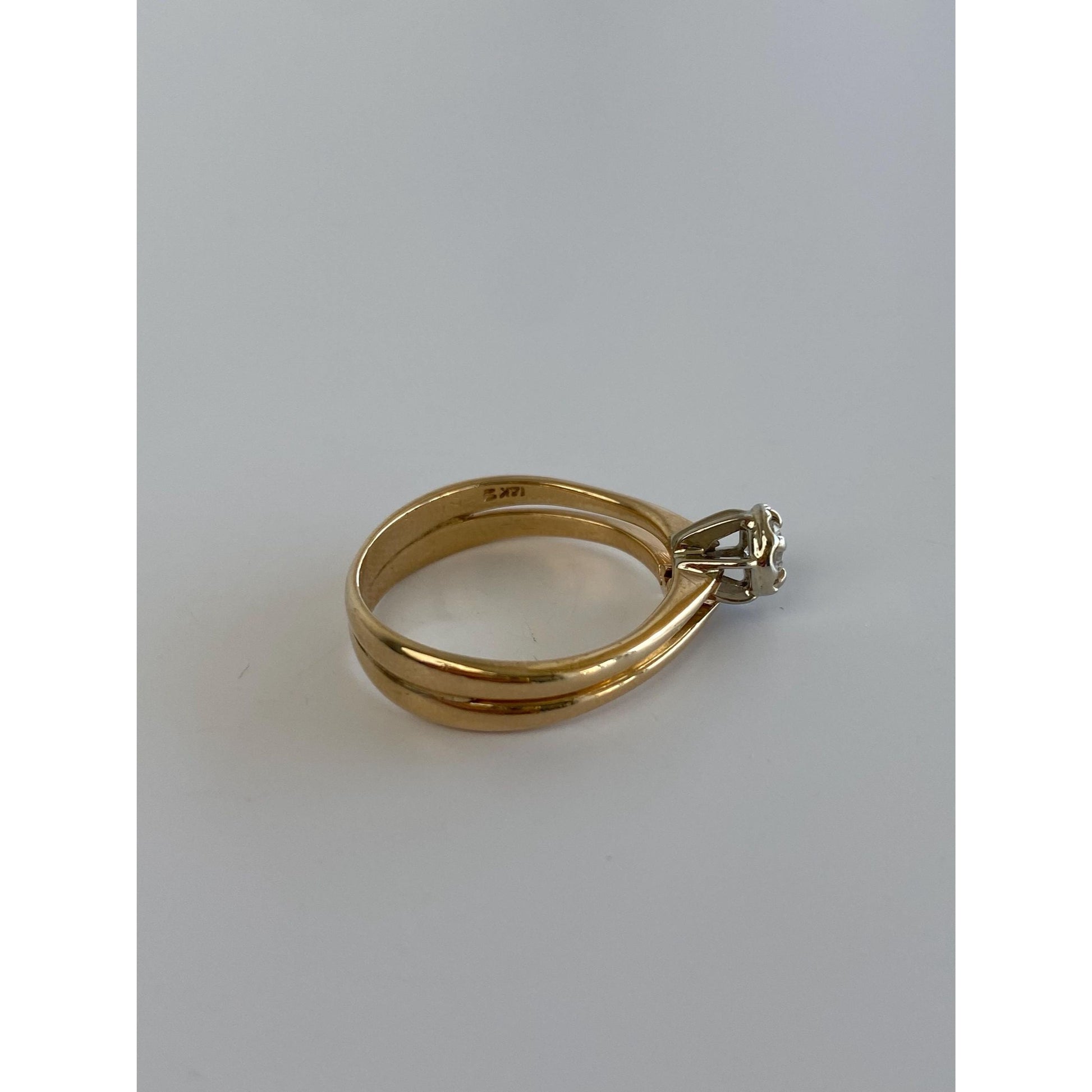Vintage Solid 14k White & Yellow Gold Cubic Zirconia Ring - Size 6
