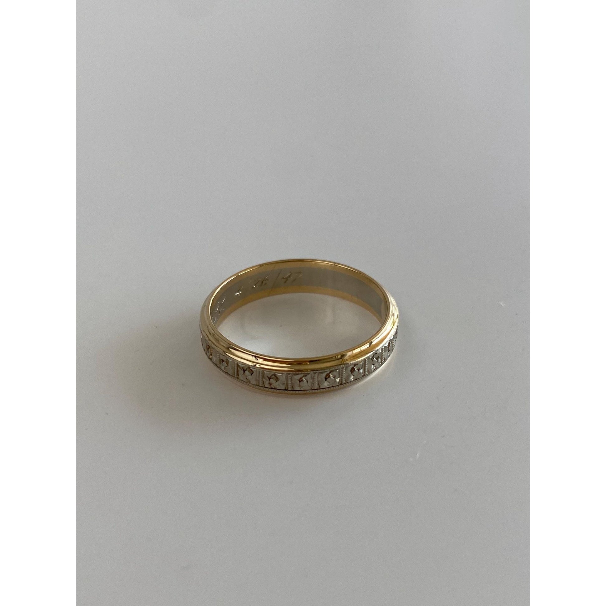 Vintage Solid 14k White & Yellow Gold Designed Ring Band - Size 8.5