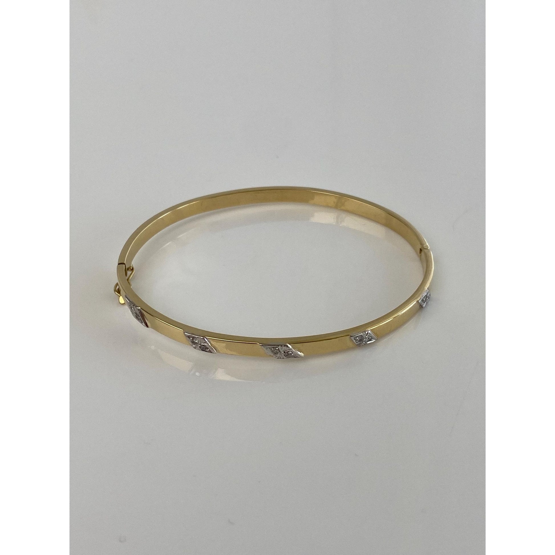 Vintage Solid 14k White &. Yellow Gold Diamond Bangle Bracelet