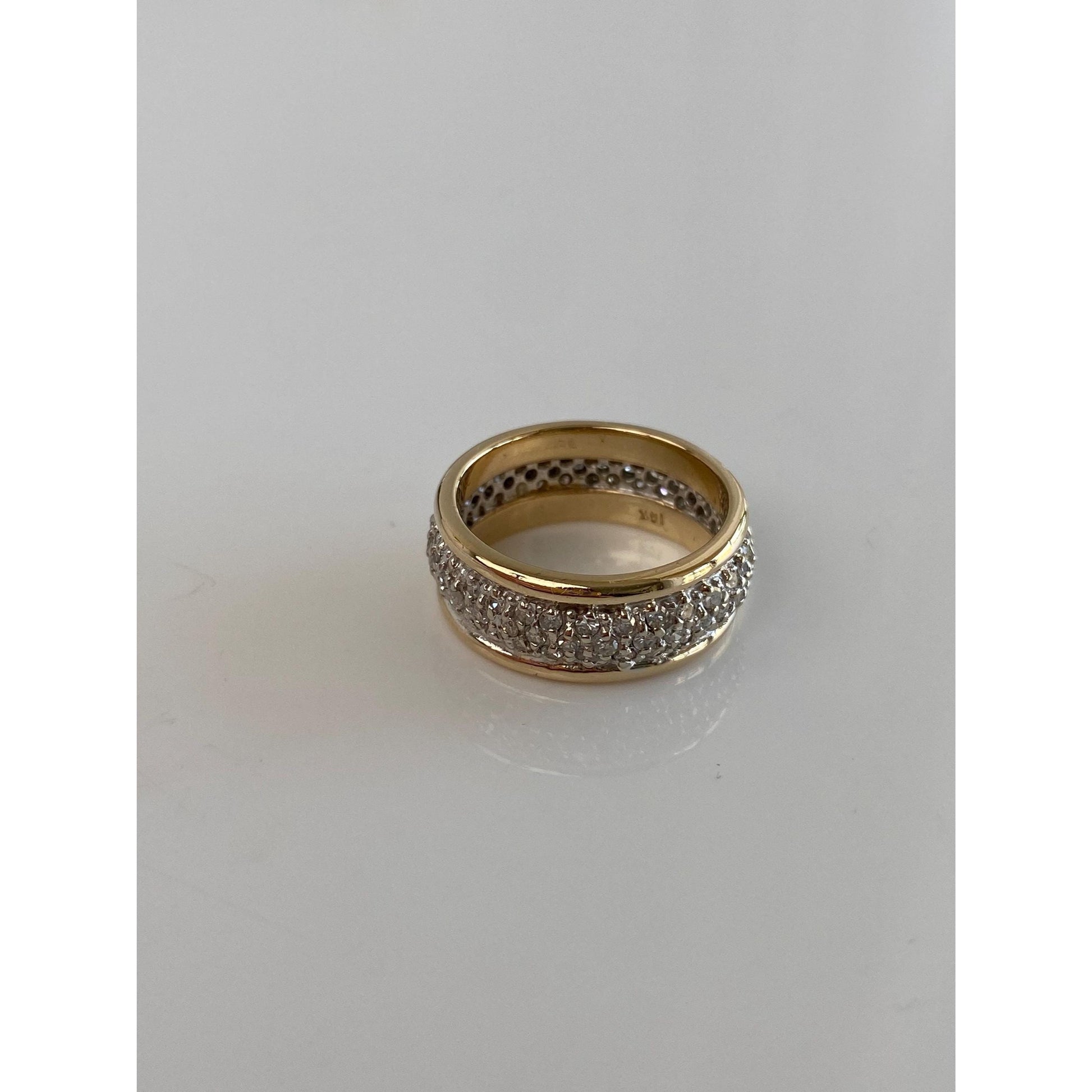 Vintage Solid 14k White & Yellow Gold Diamond Cluster Ring Band - Size 7.25