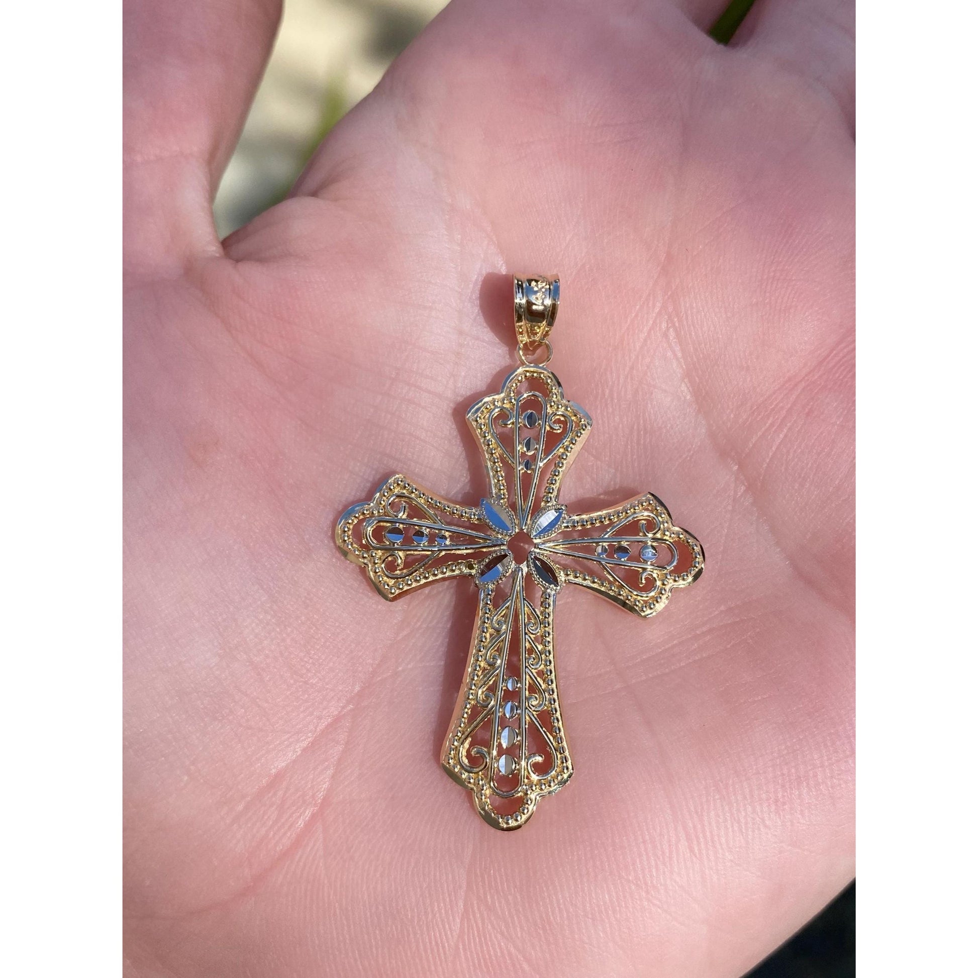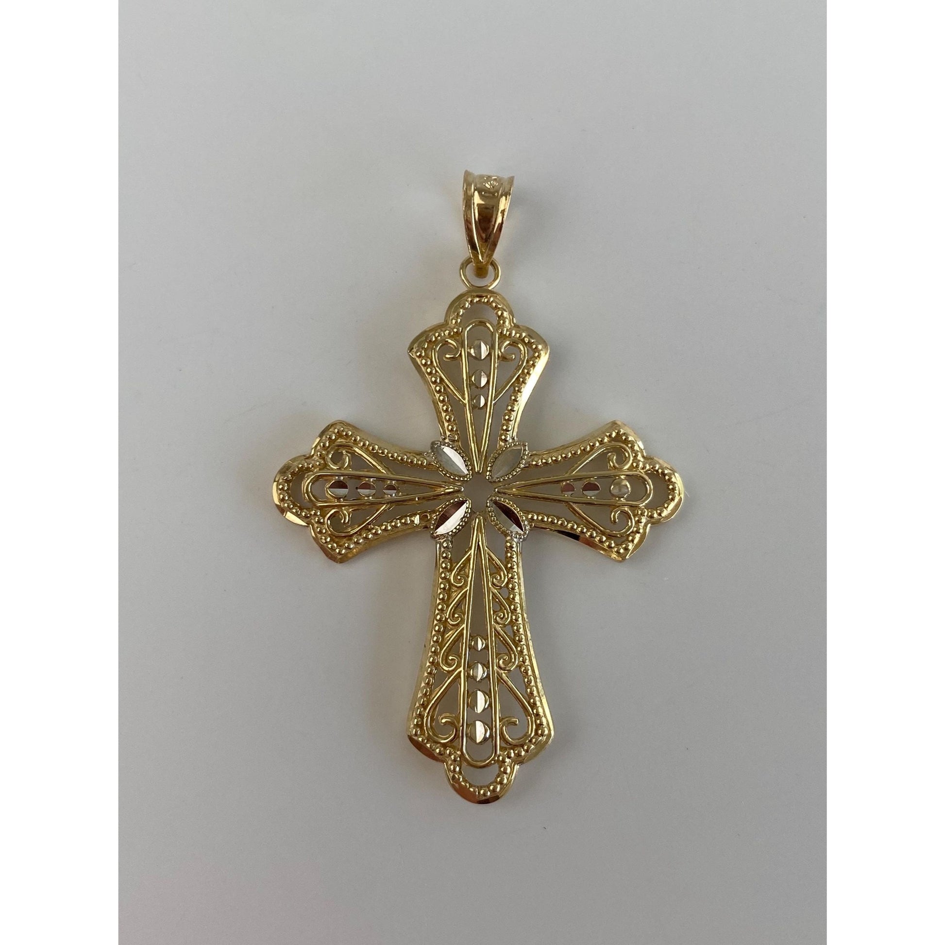 Vintage Solid 14k White & Yellow Gold Diamond Cut Cross Charm