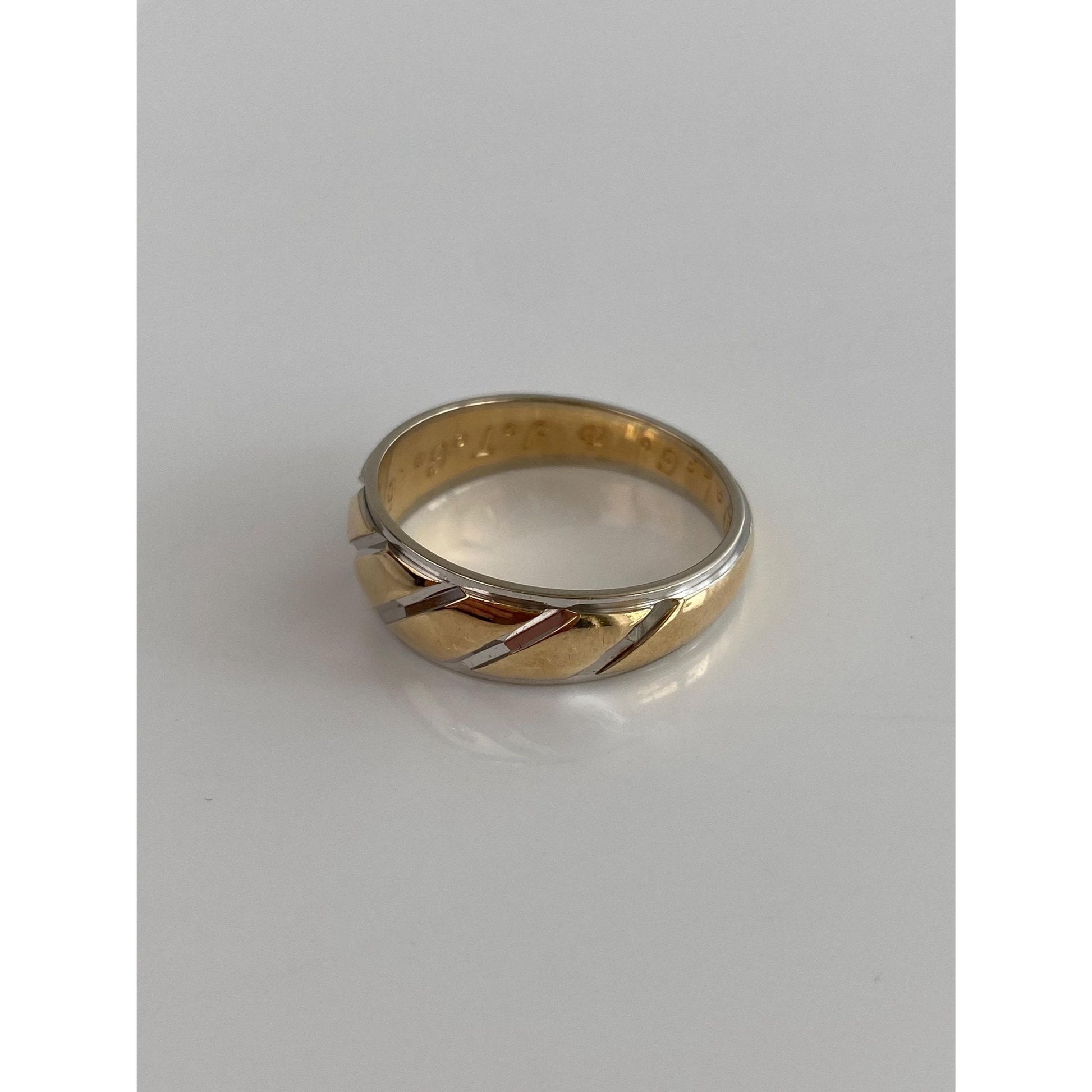 Vintage Solid 14k White & Yellow Gold Diamond Cut Lined Ring Band - Size 10