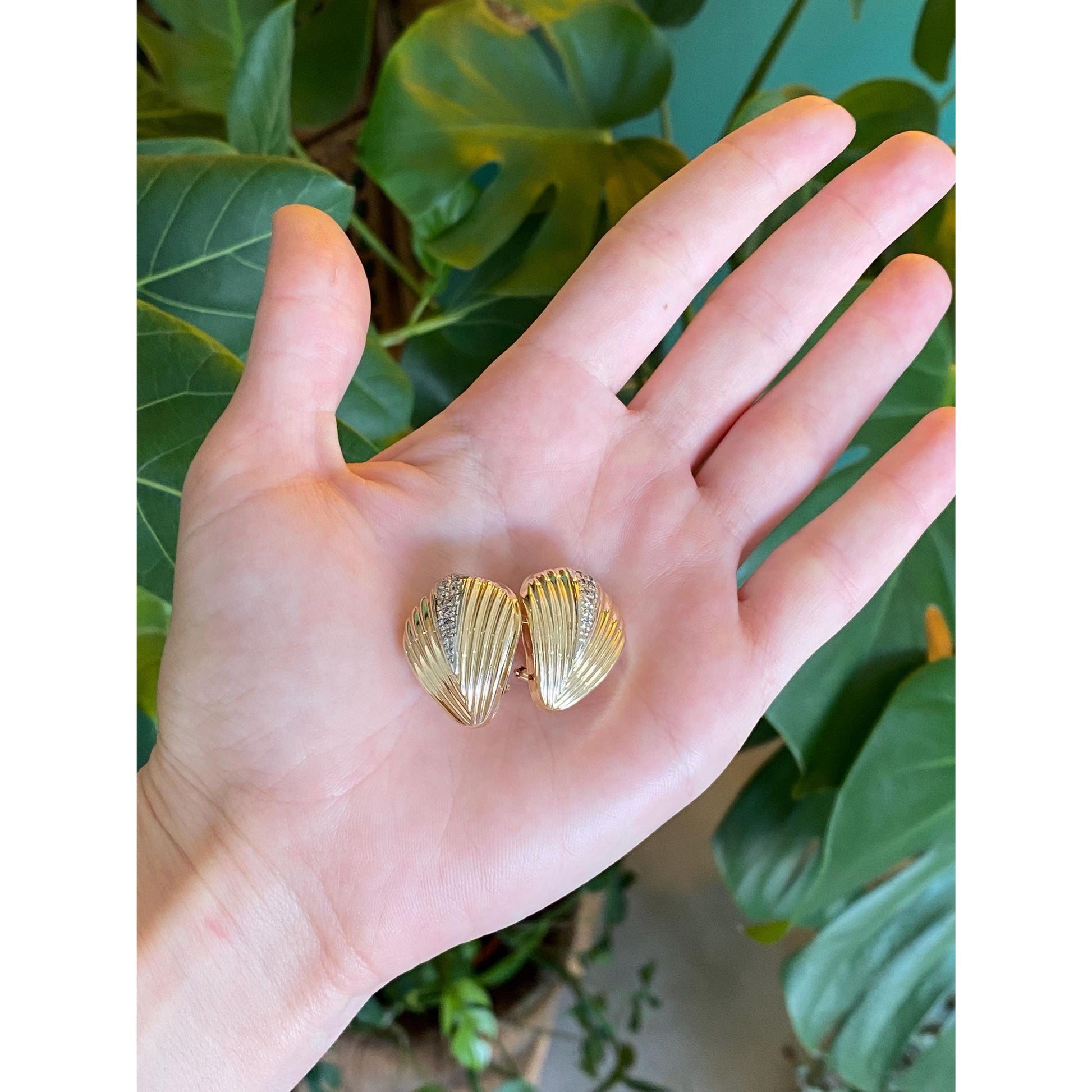 Vintage Solid 14k White & Yellow Gold Diamond Fluted Domed Earrings