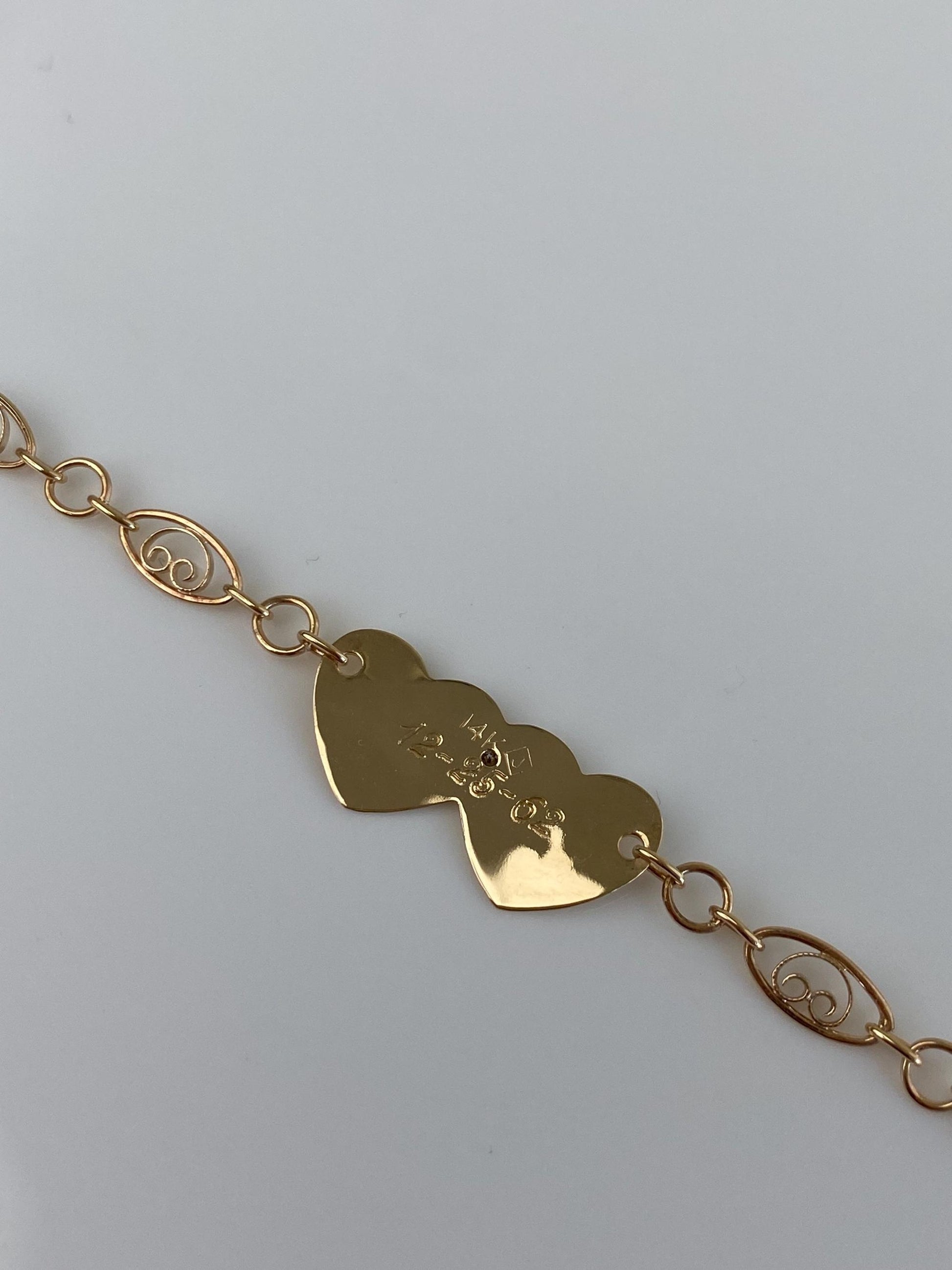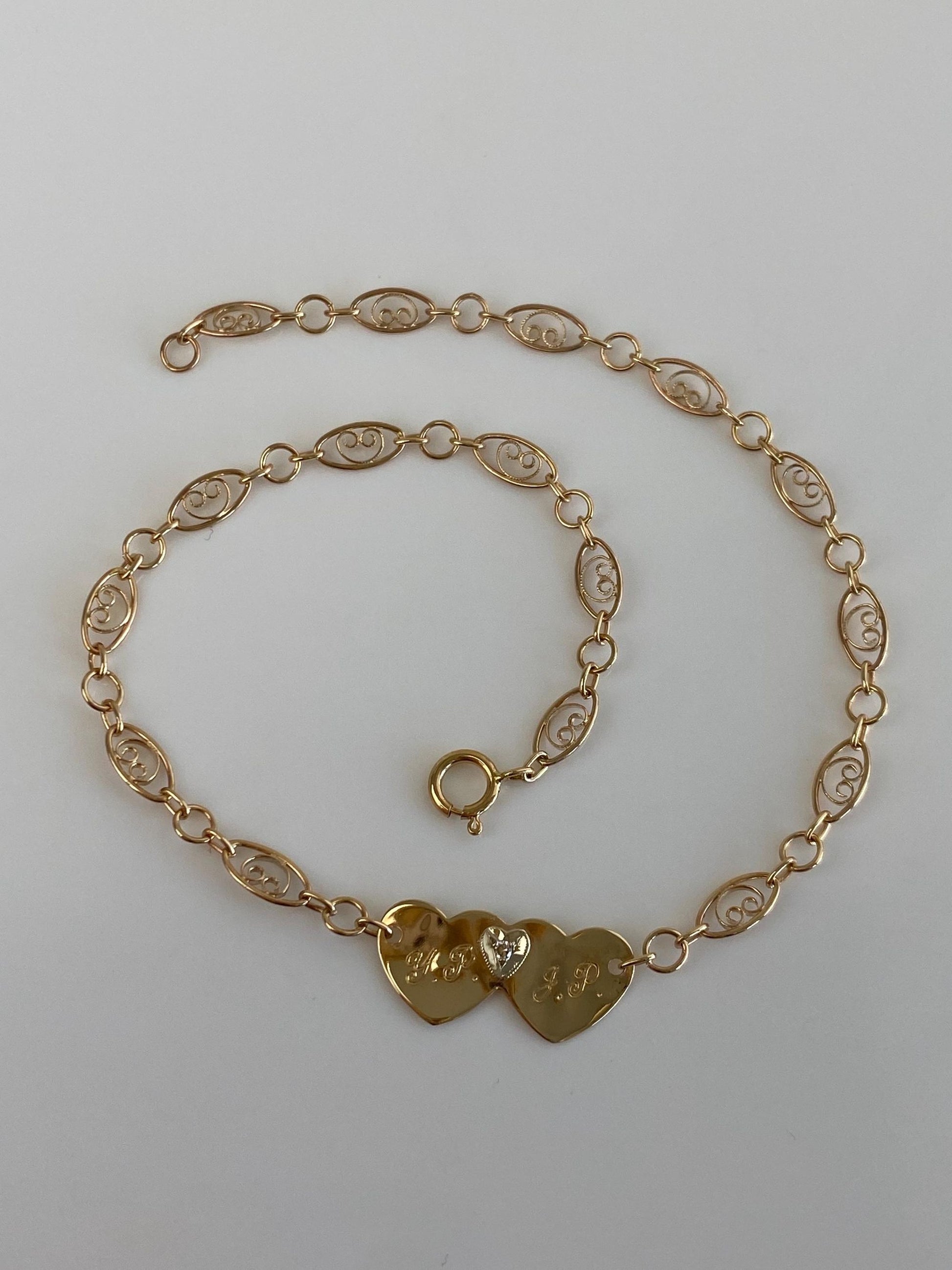 Vintage Solid 14k White & Yellow Gold Diamond Hearts Link Bracelet - 9.25 inches