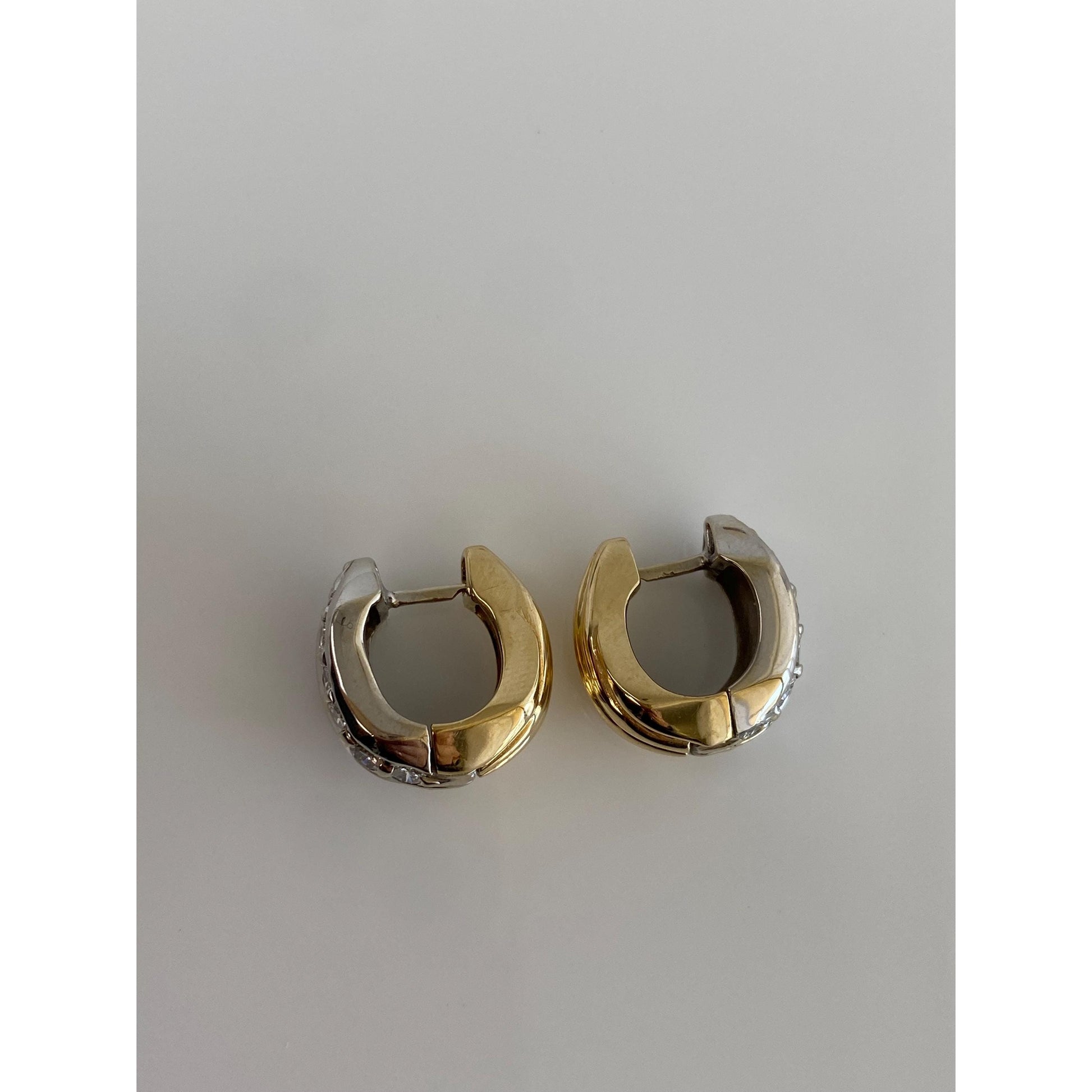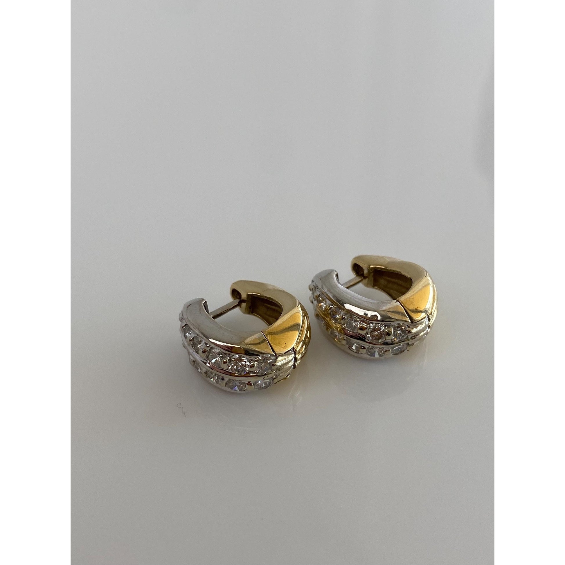 Vintage Solid 14k White & Yellow Gold Diamond Huggie Hoop Earrings
