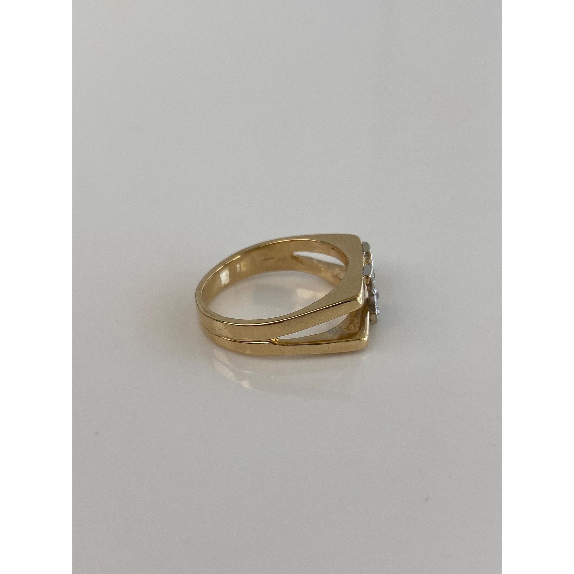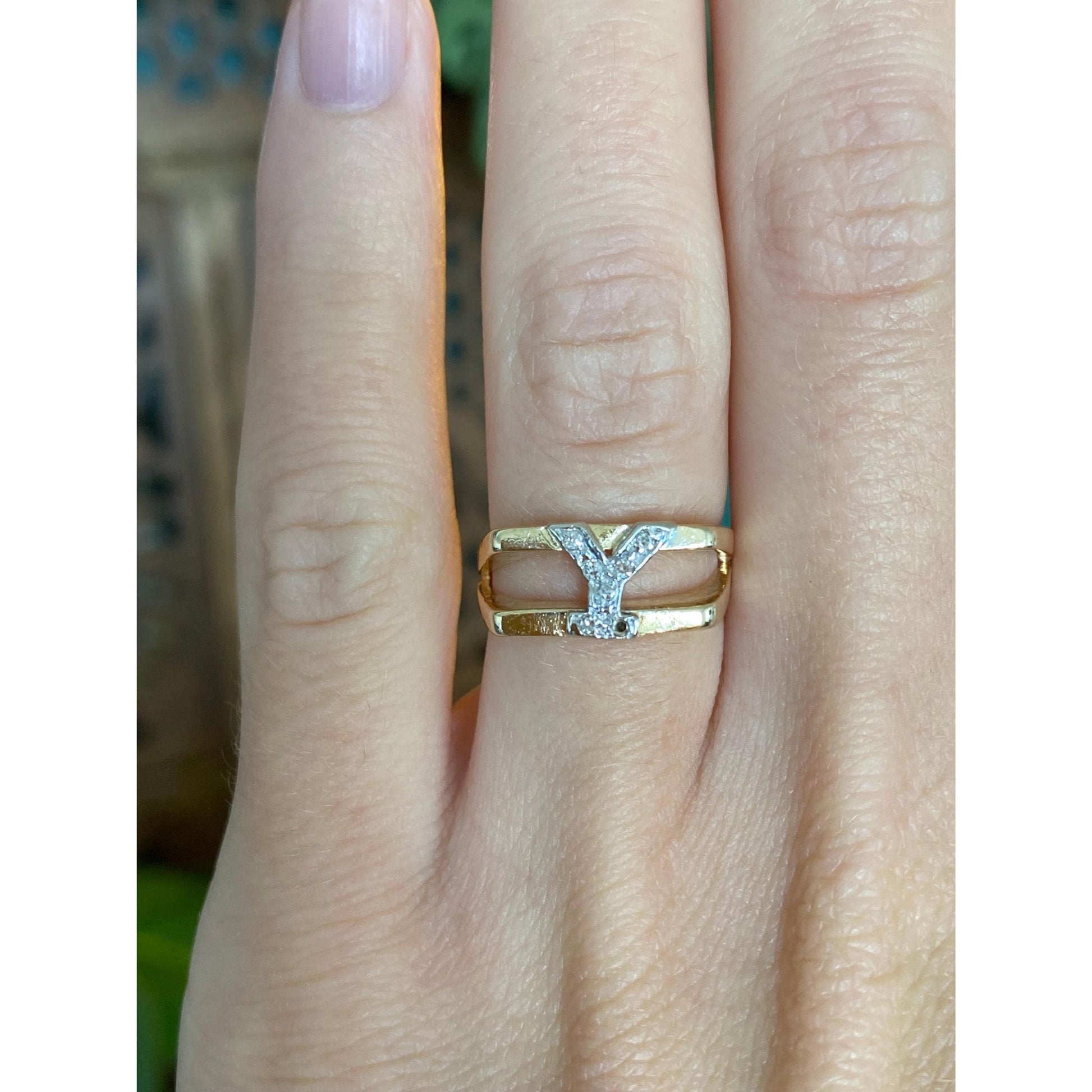 Vintage Solid 14k White & Yellow Gold Diamond Initial 'Y' Ring Band - Size 4.5