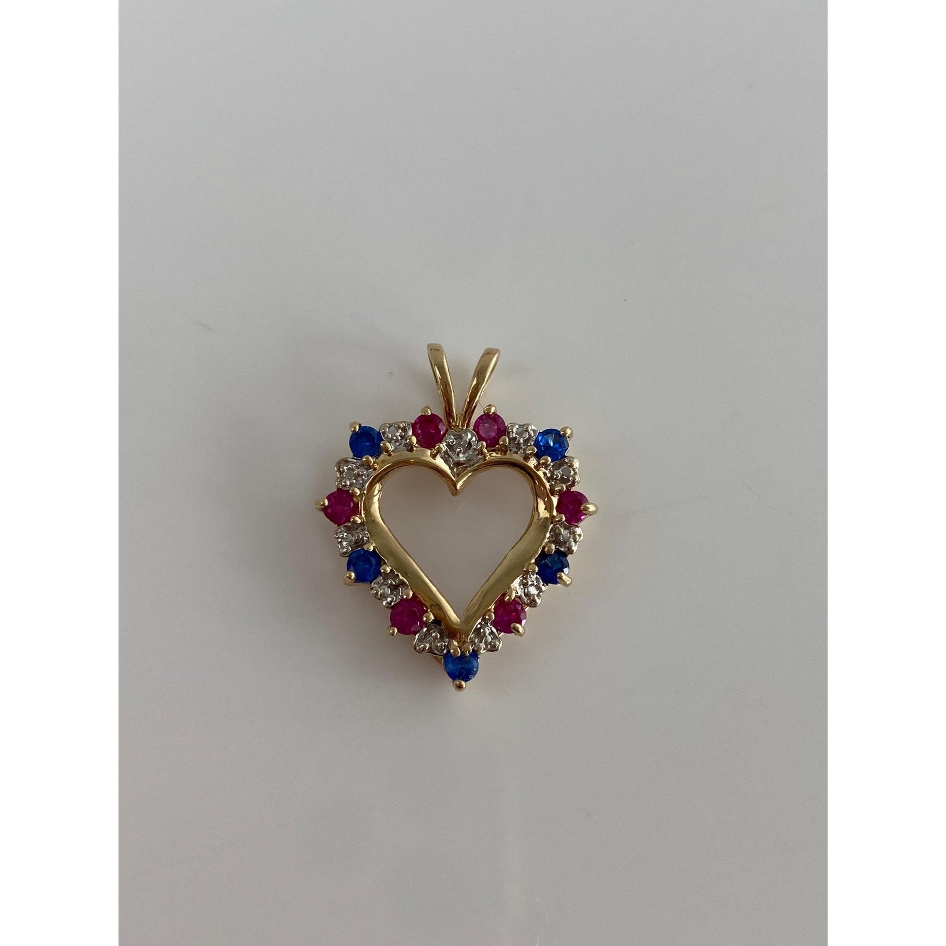 Vintage Solid 14k White & Yellow Gold Diamond Pink and Blue Spinel Heart Charm