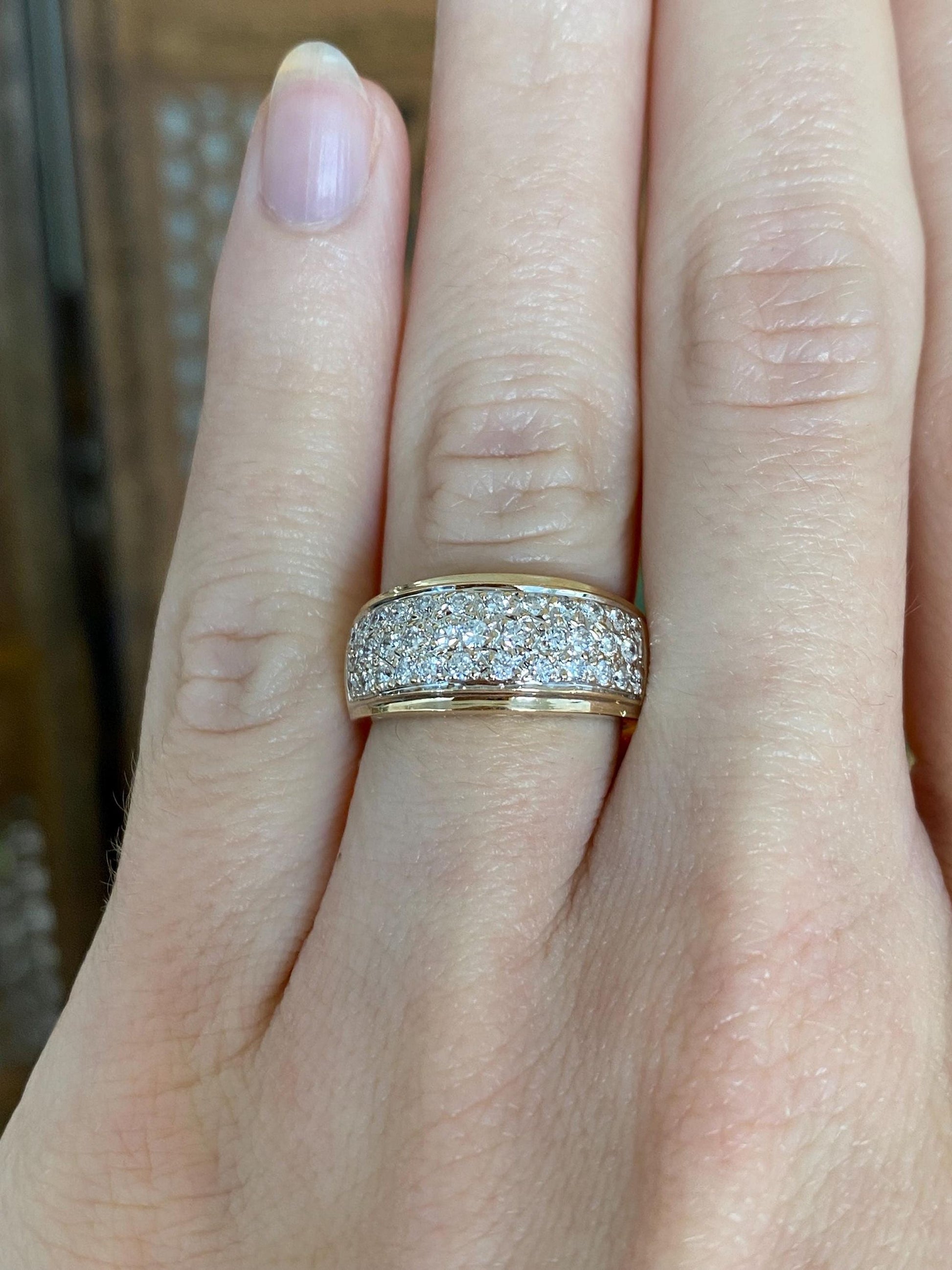 Vintage Solid 14k White & Yellow Gold Diamond Ring Band - Size 5.25