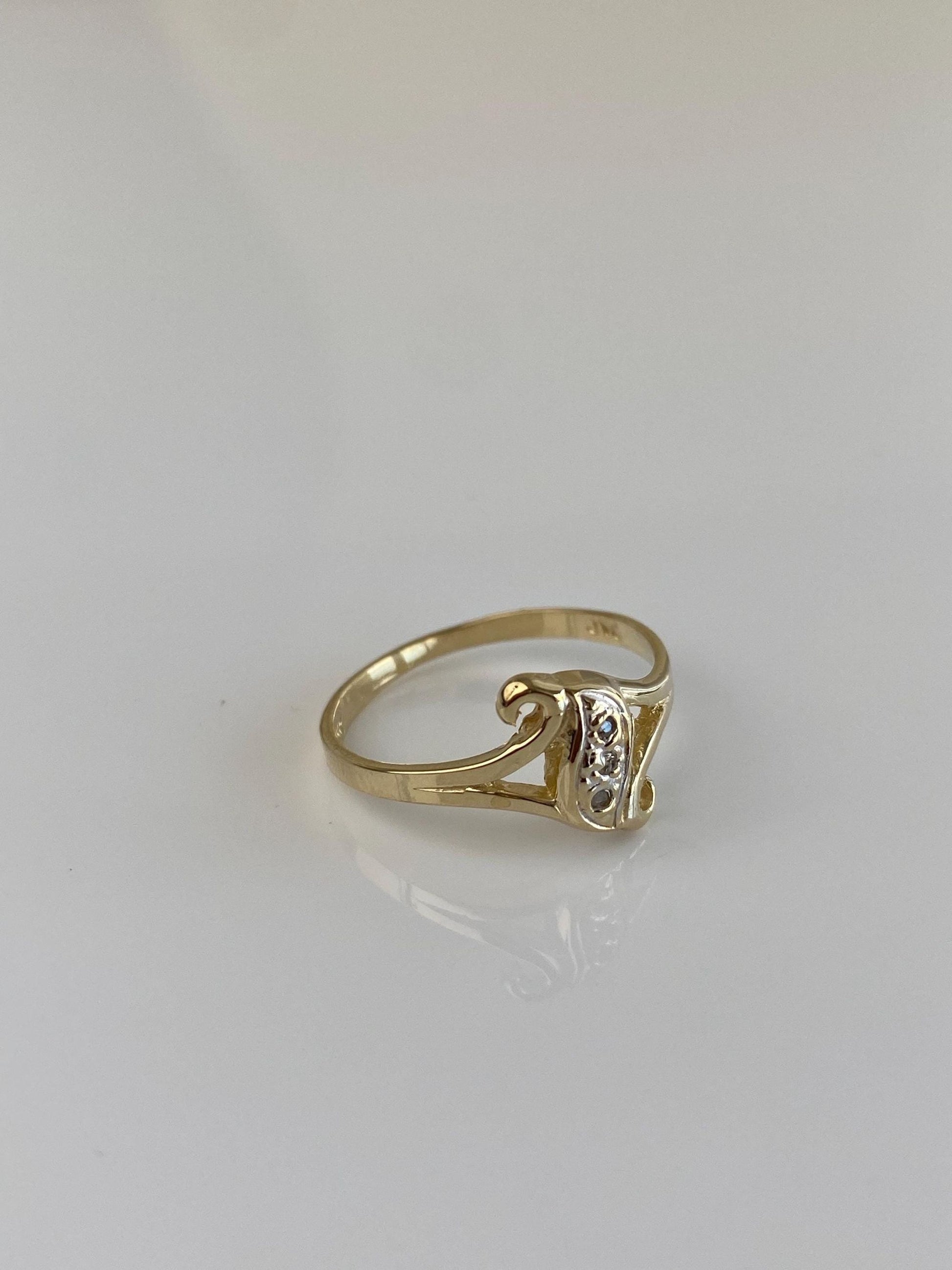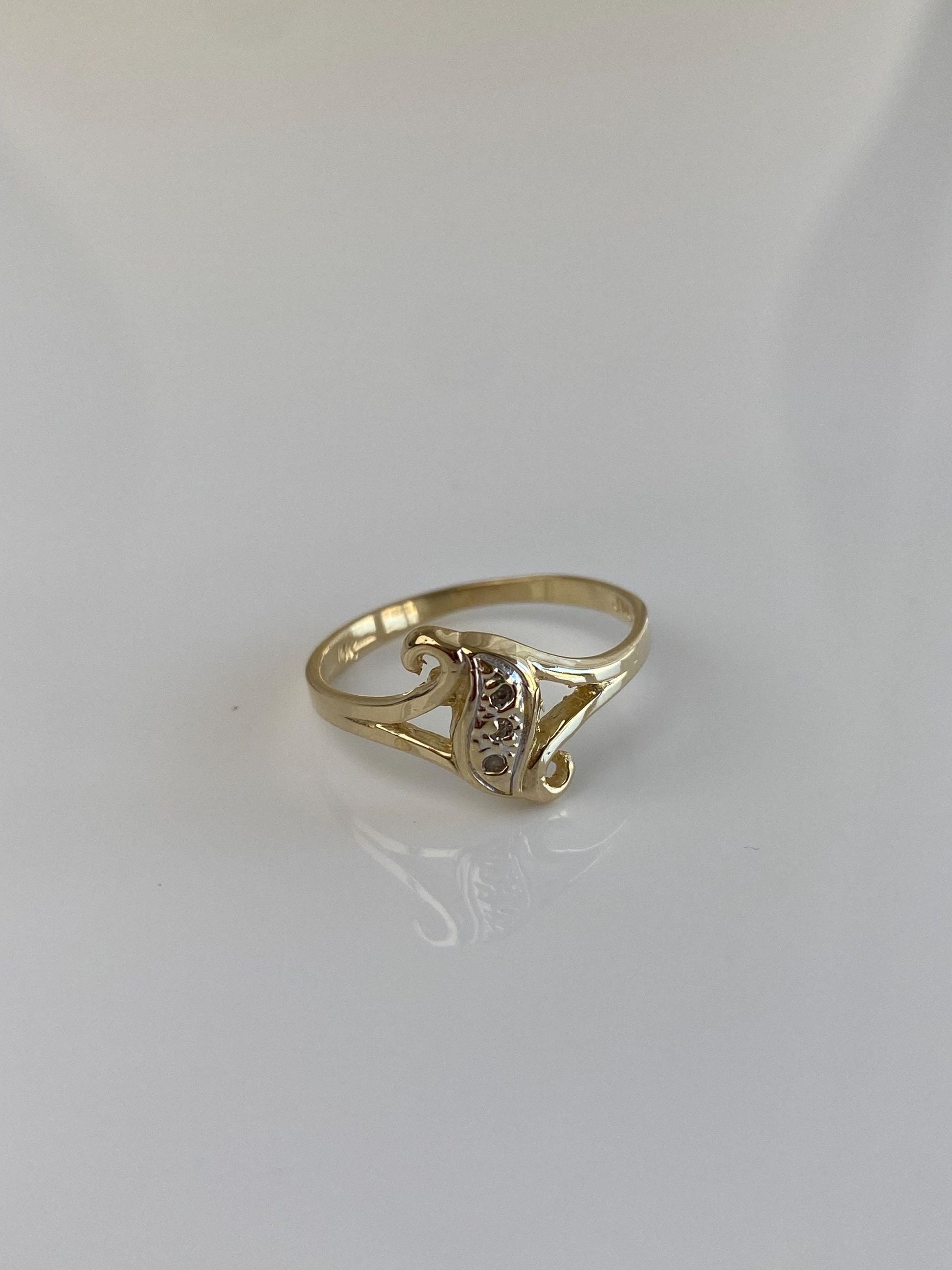 Vintage Solid 14k White & Yellow Gold Diamond Ring - Size 6.75