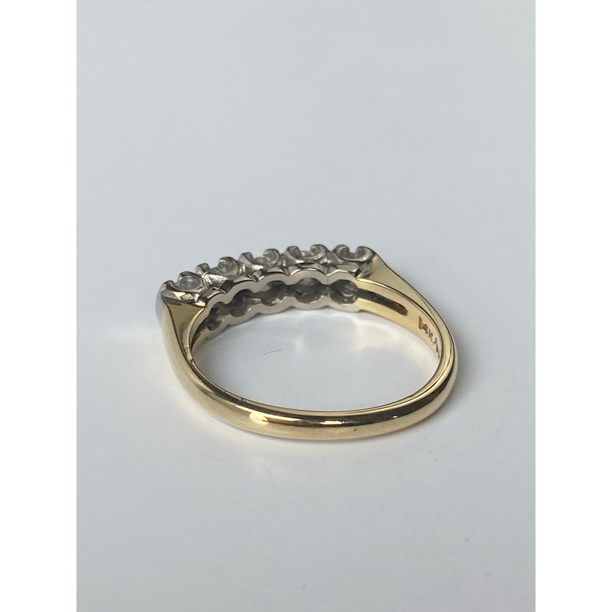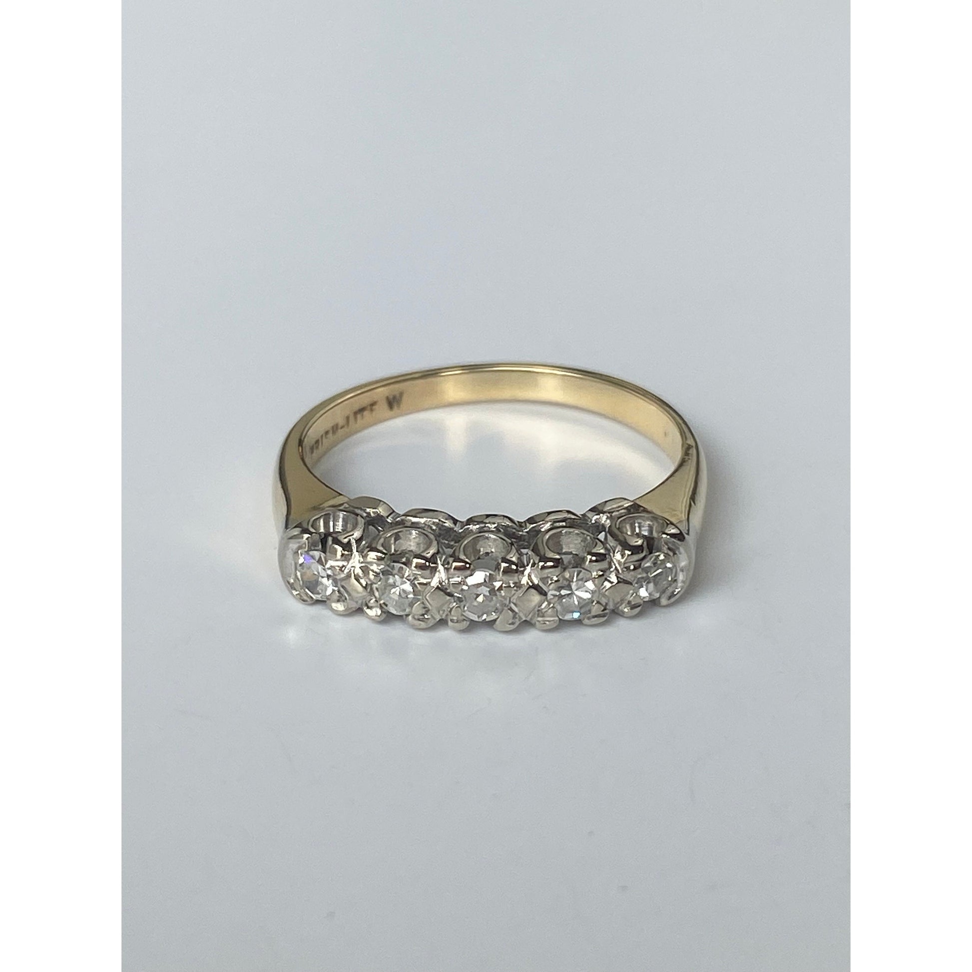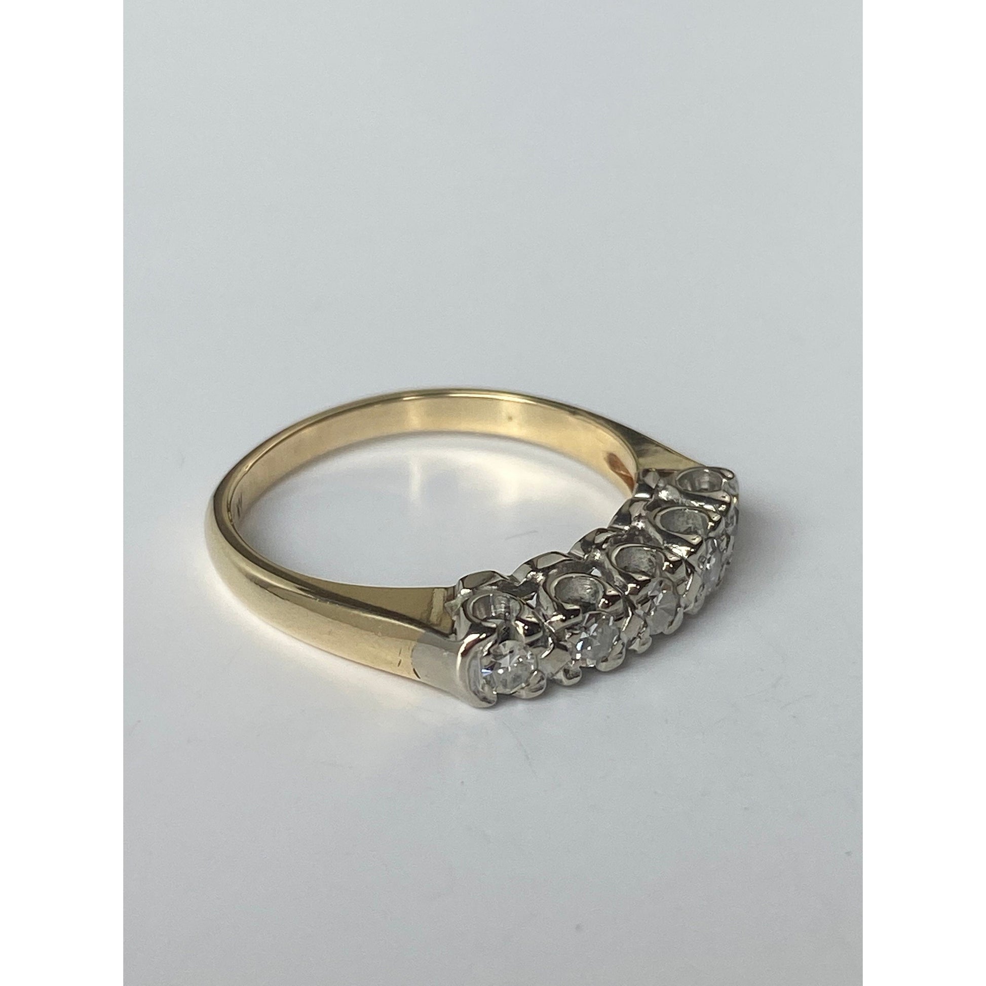 Vintage Solid 14k White & Yellow Gold Diamond Row Ring - Size 5.5