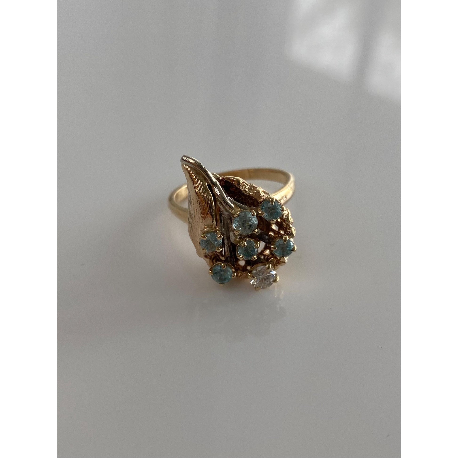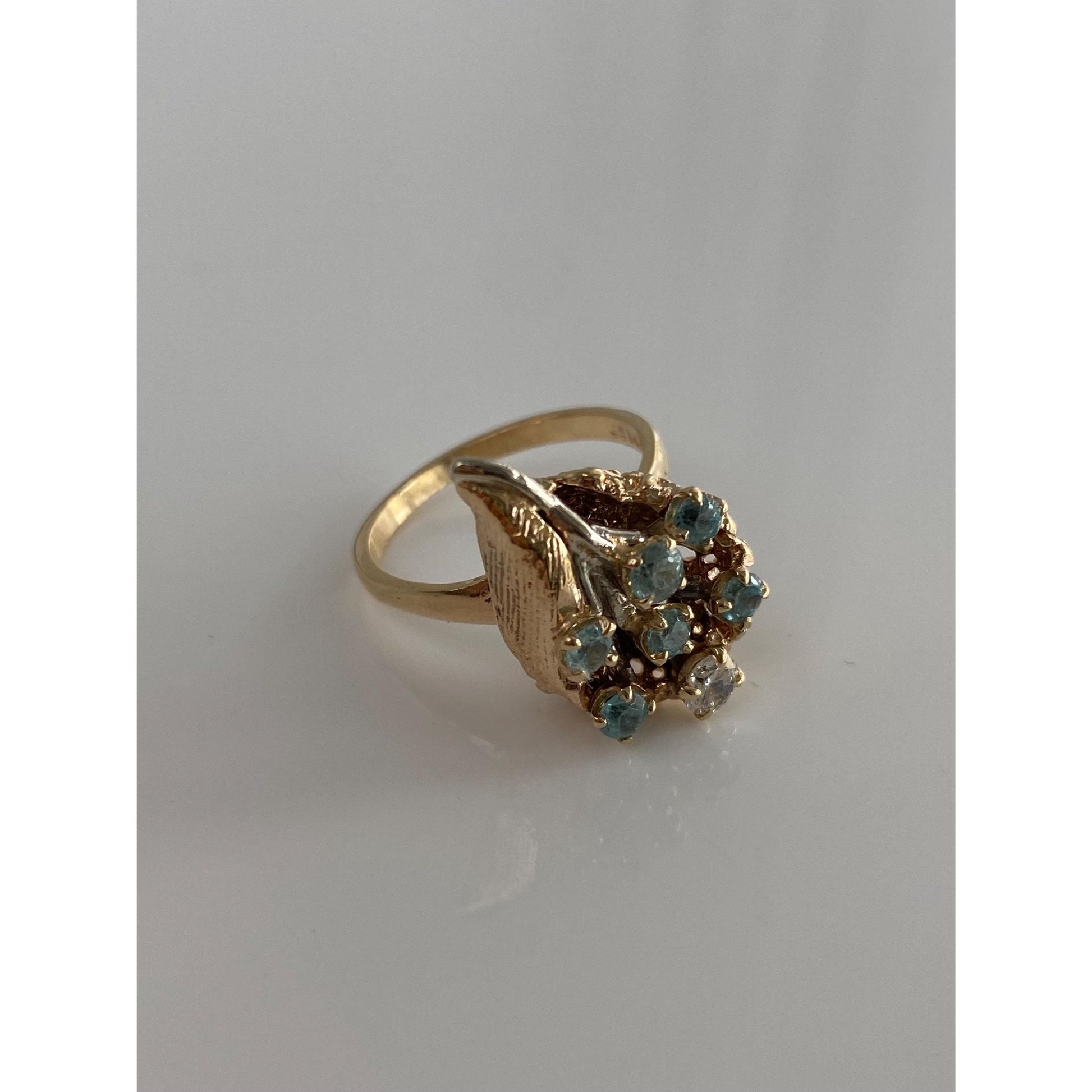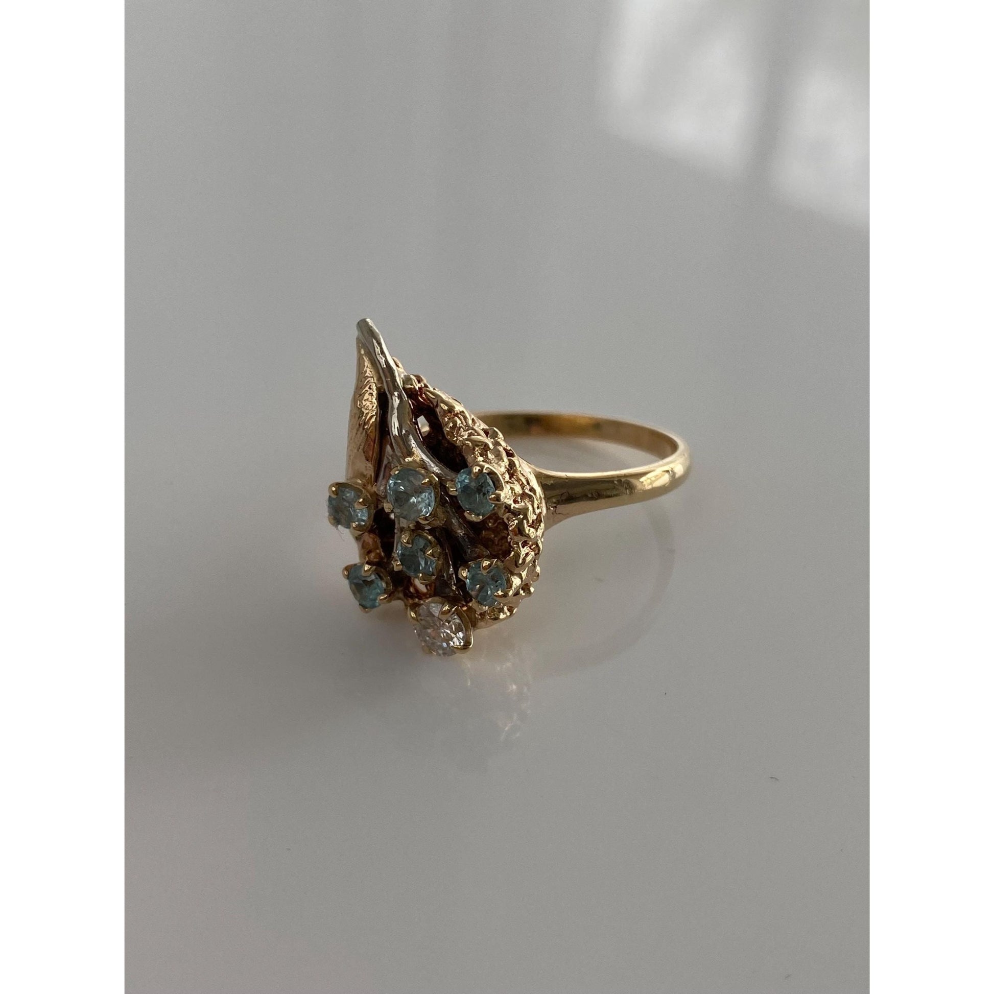 Vintage Solid 14k White & Yellow Gold Diamond Topaz Bouquet Ring - Size 7.25