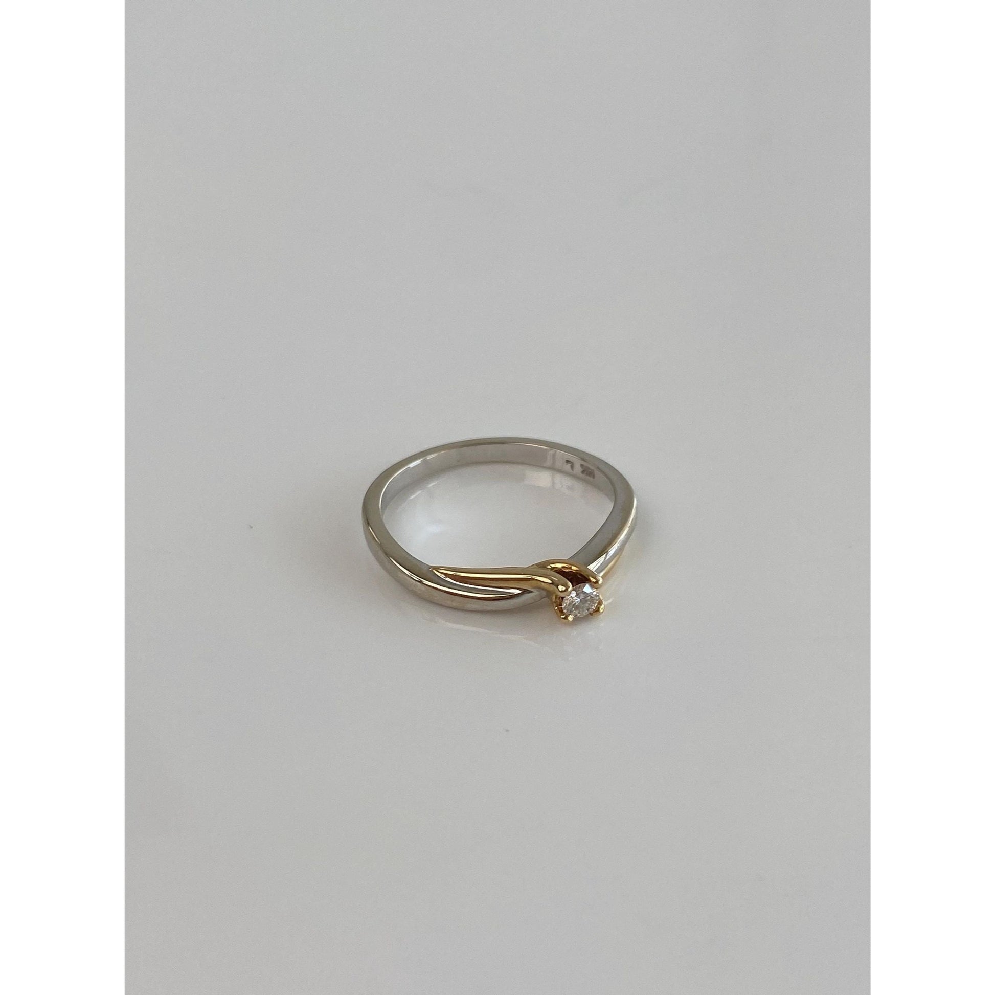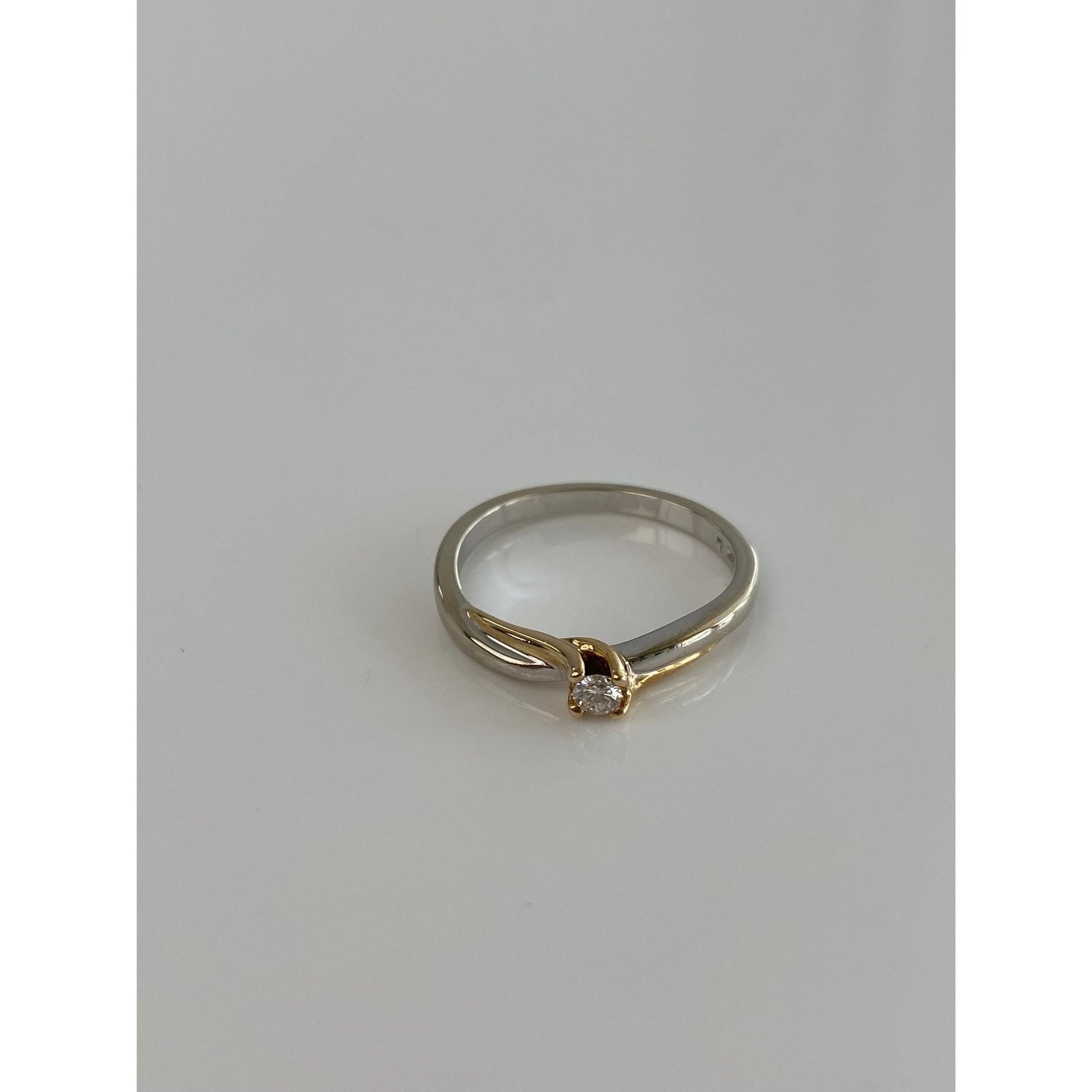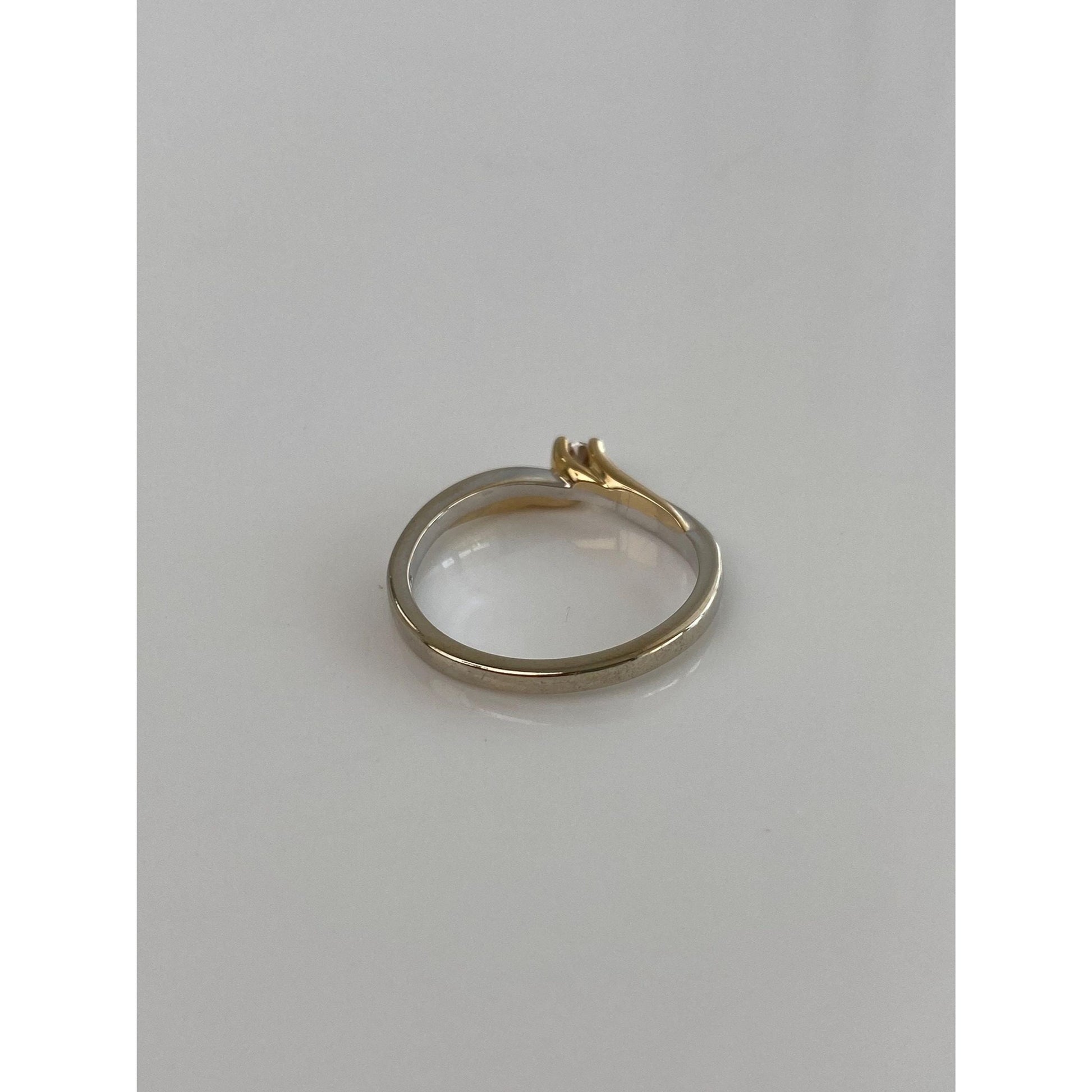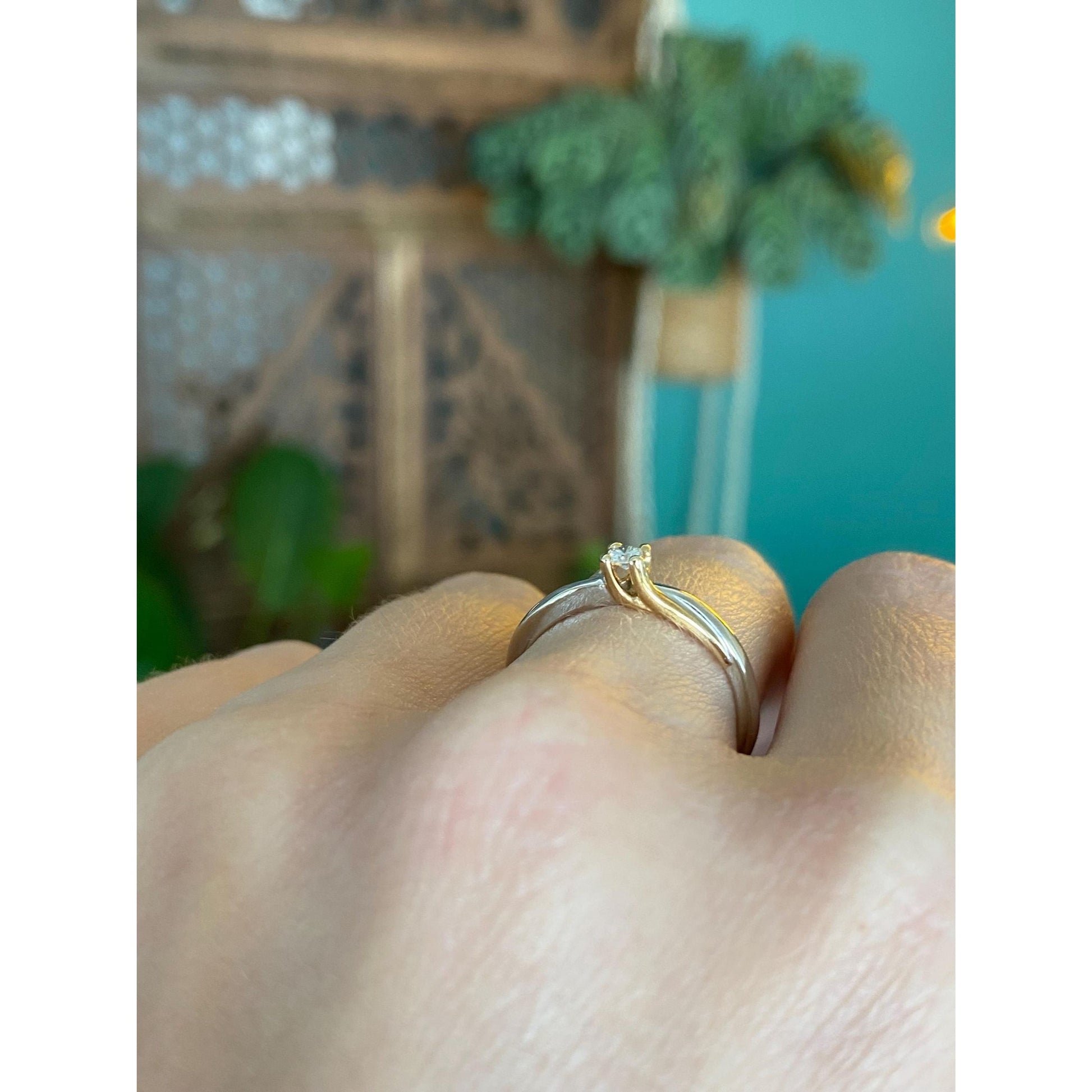 Vintage Solid 14k White & Yellow Gold Diamond Twist Ring - Size 6.25