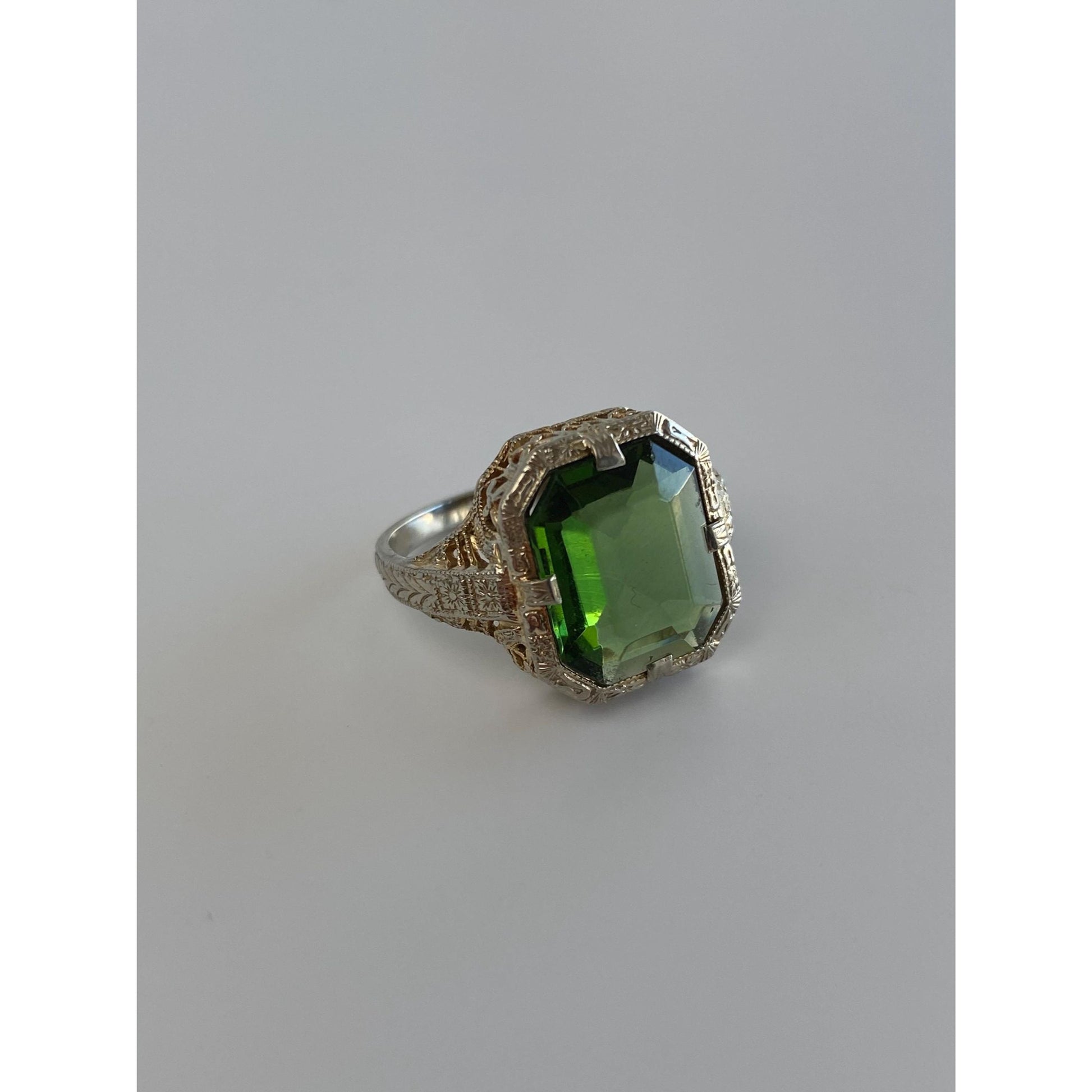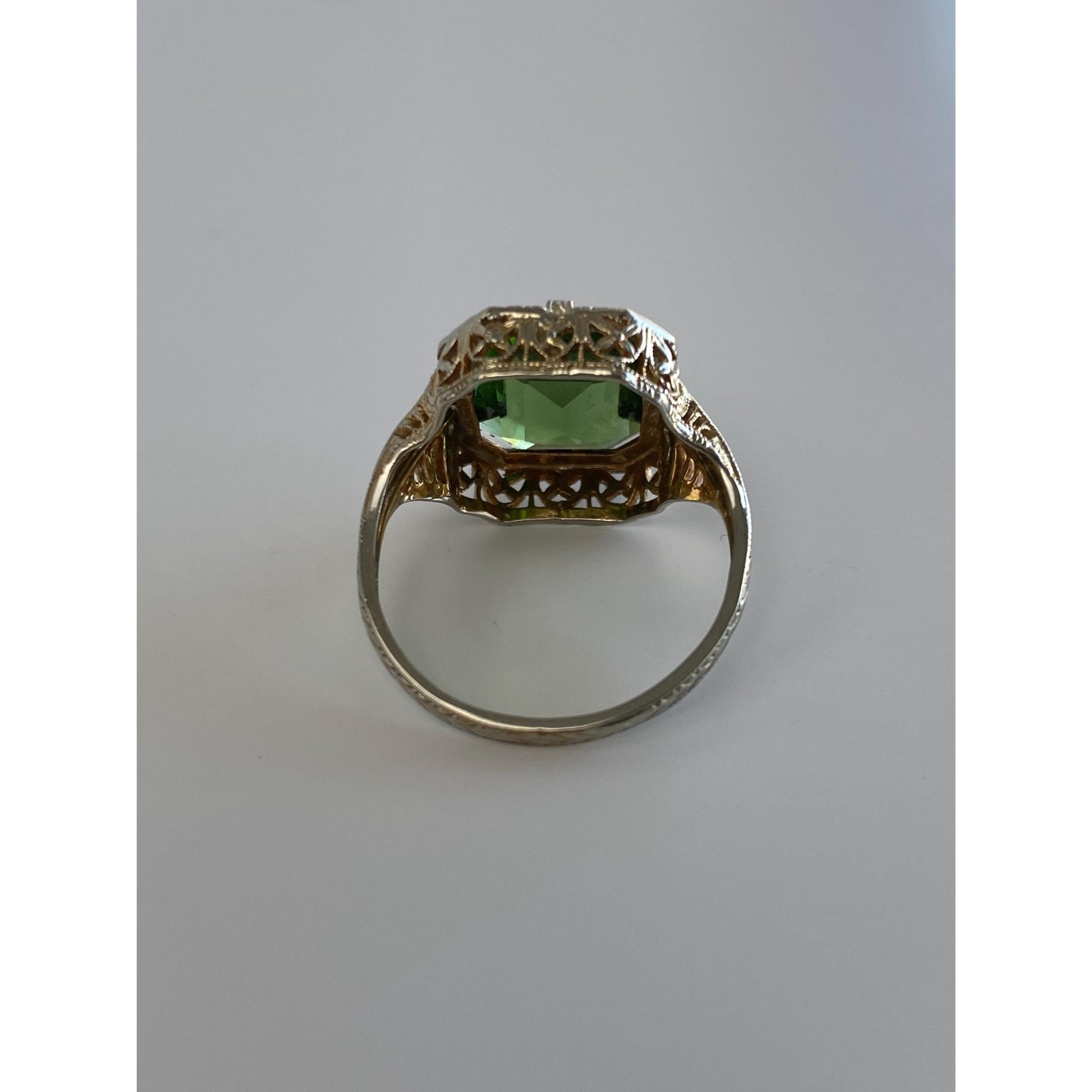 Vintage Solid 14k White & Yellow Gold Green Cubic Zirconia Art Deco Ring - Size 5