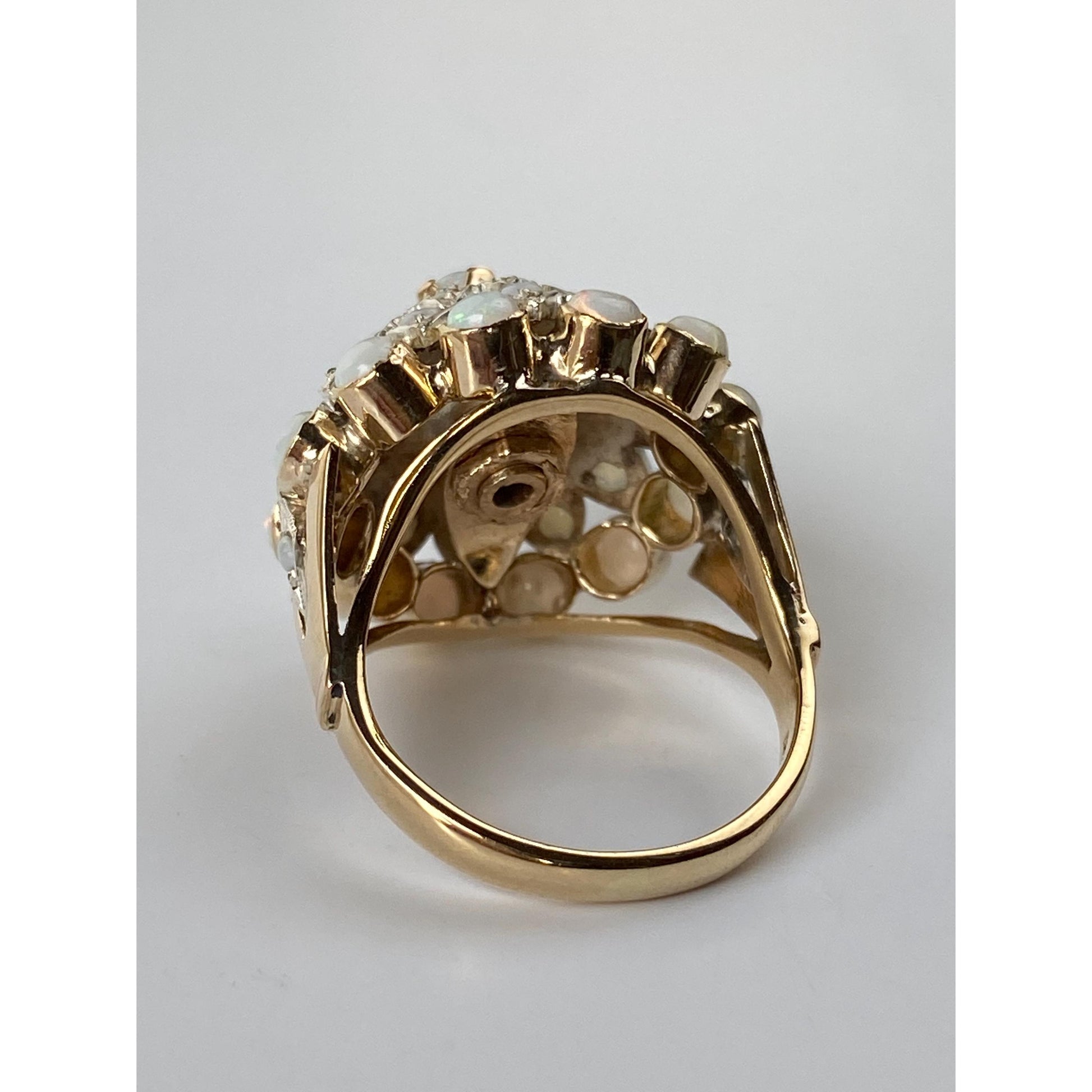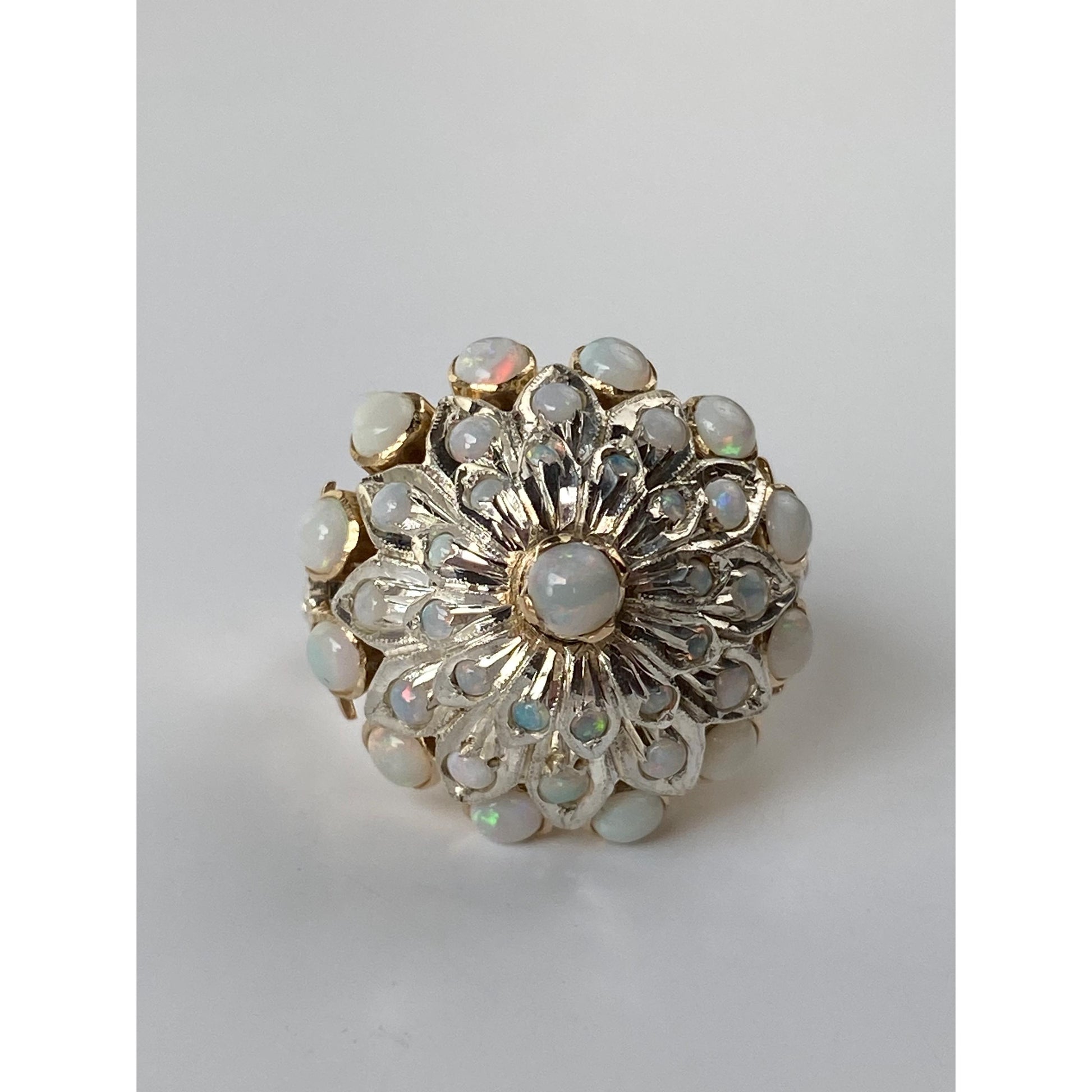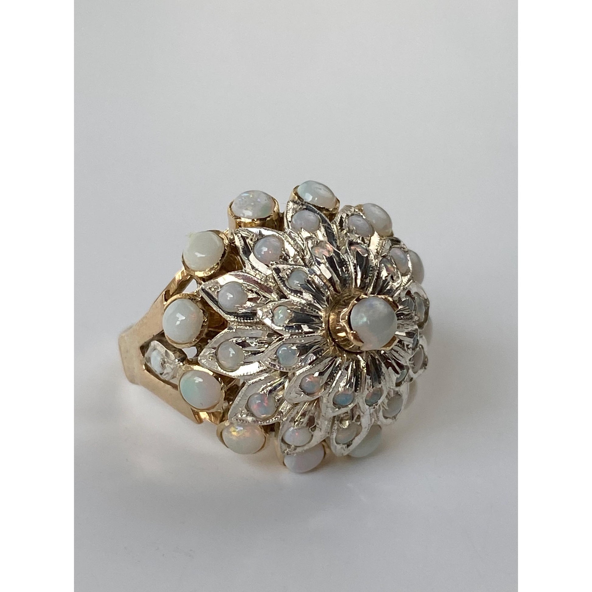 Vintage Solid 14k White & Yellow Gold Opal Halo Cocktail Ring - Size 6.5