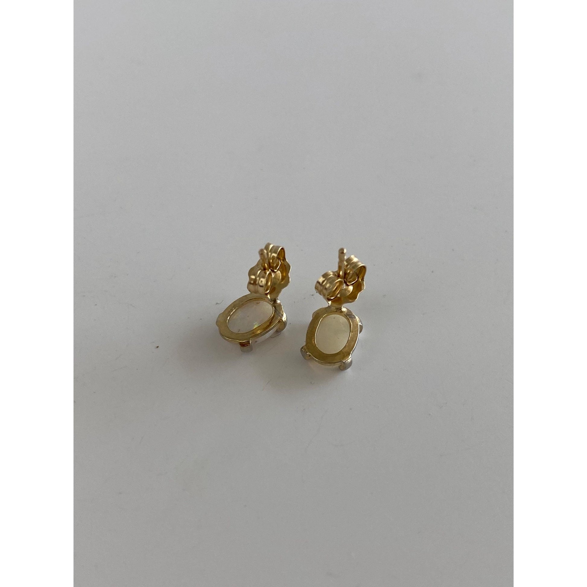 Vintage Solid 14k White & Yellow Gold Opal Stud Earrings