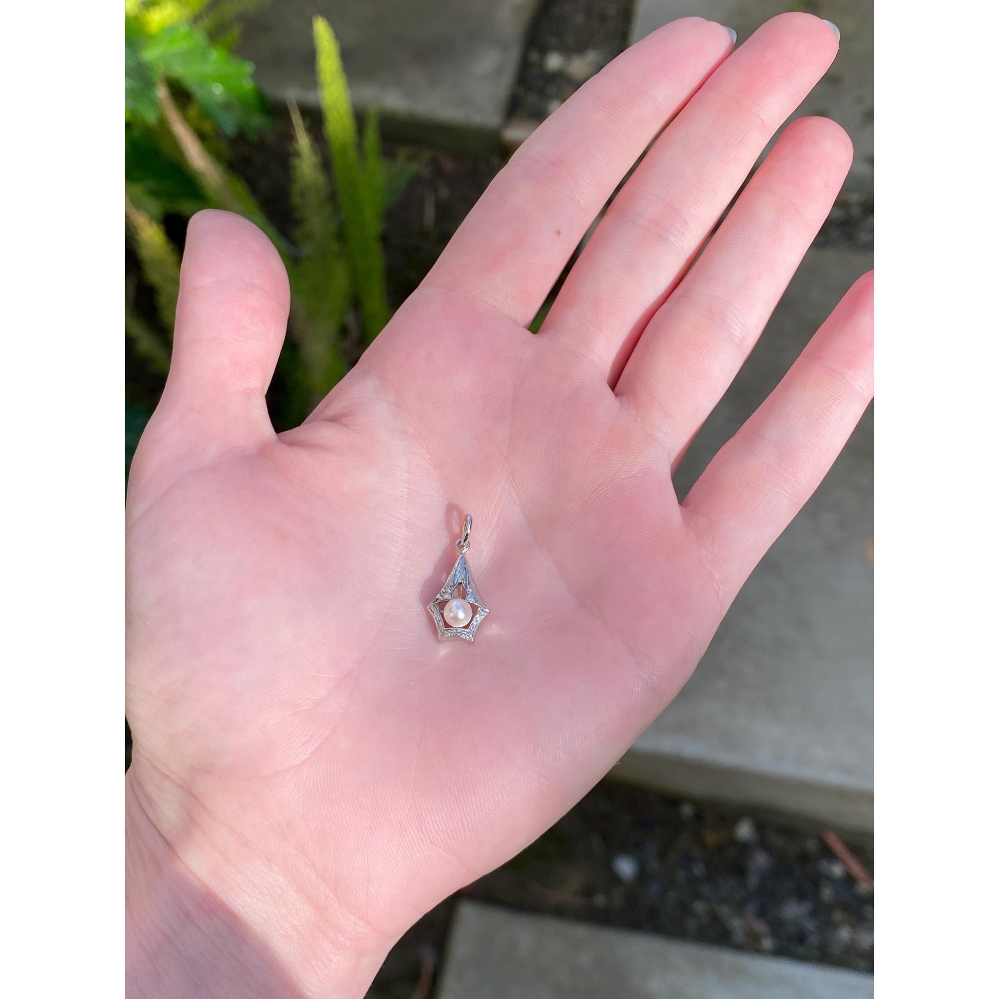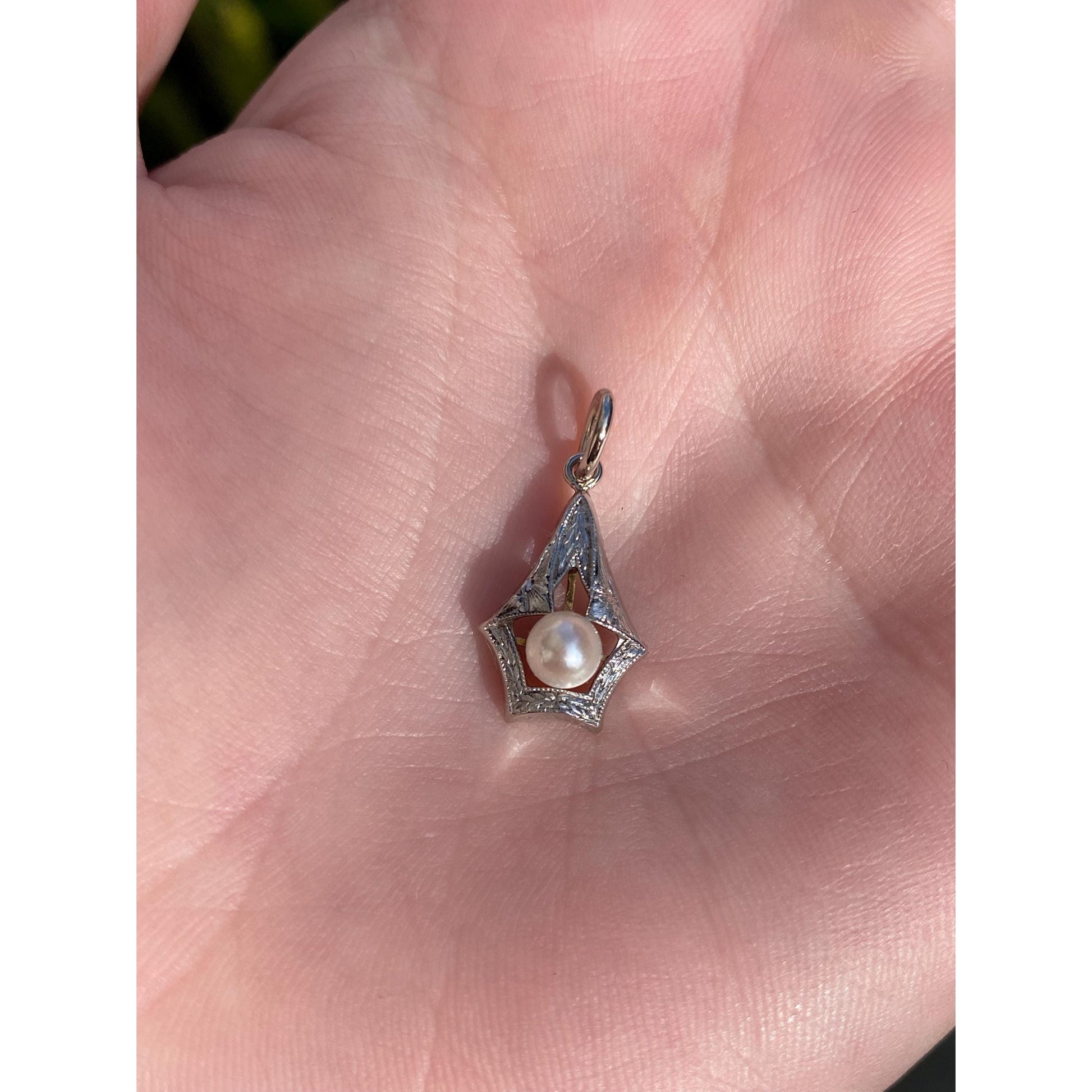 Vintage Solid 14k White & Yellow Gold Pearl Art Deco Charm