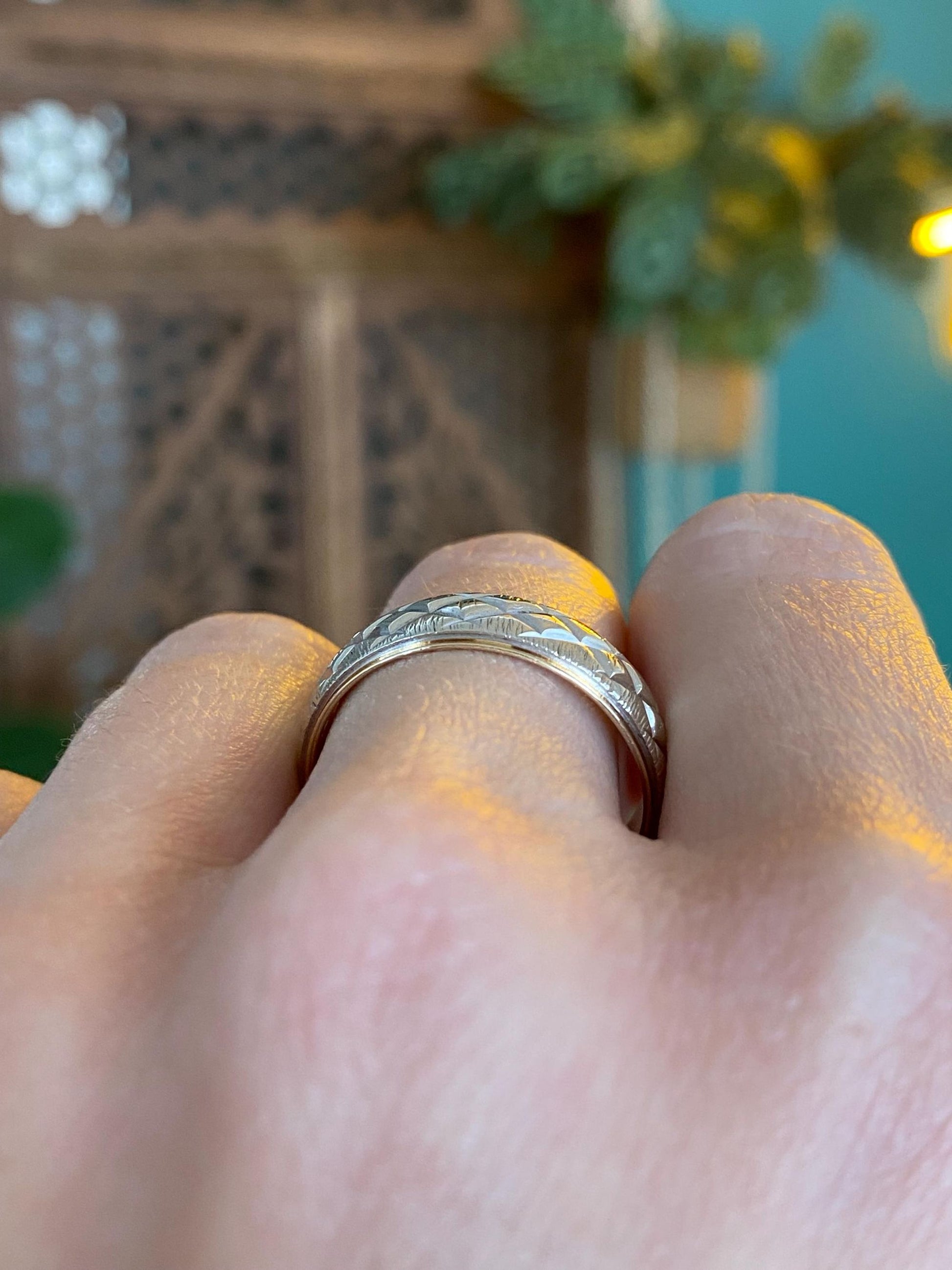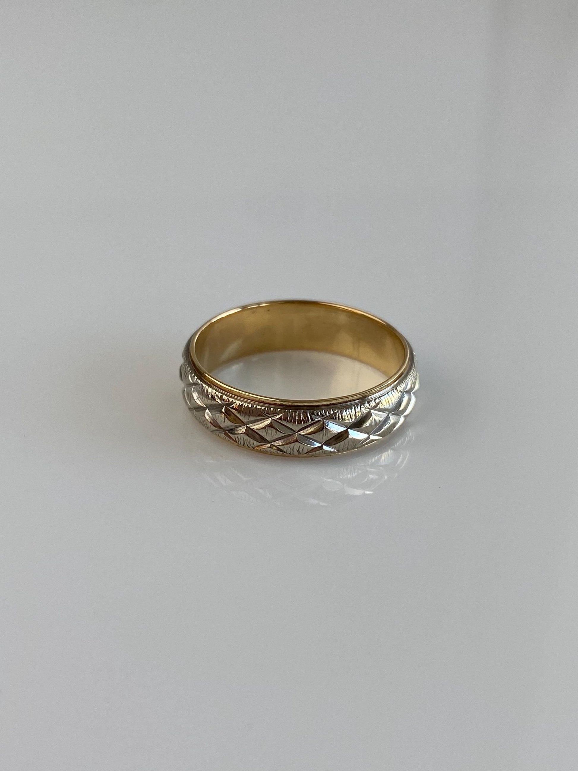 Vintage Solid 14k White & Yellow Gold Quilted Texture Ring Band - Size 9.25