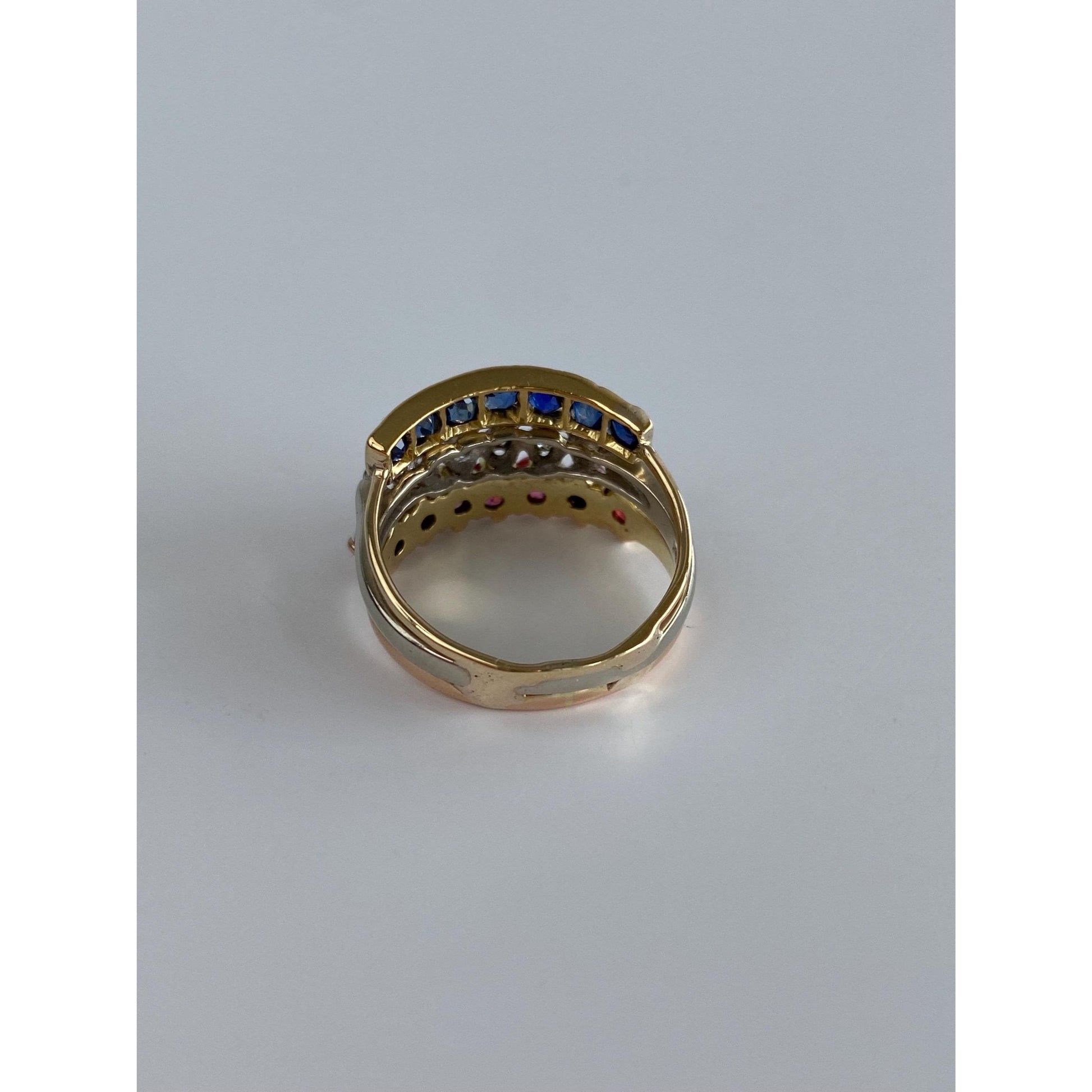 Vintage Solid 14k White & Yellow Gold Red and Blue Spinel Clear Sapphire Ring Band - Size 5.5