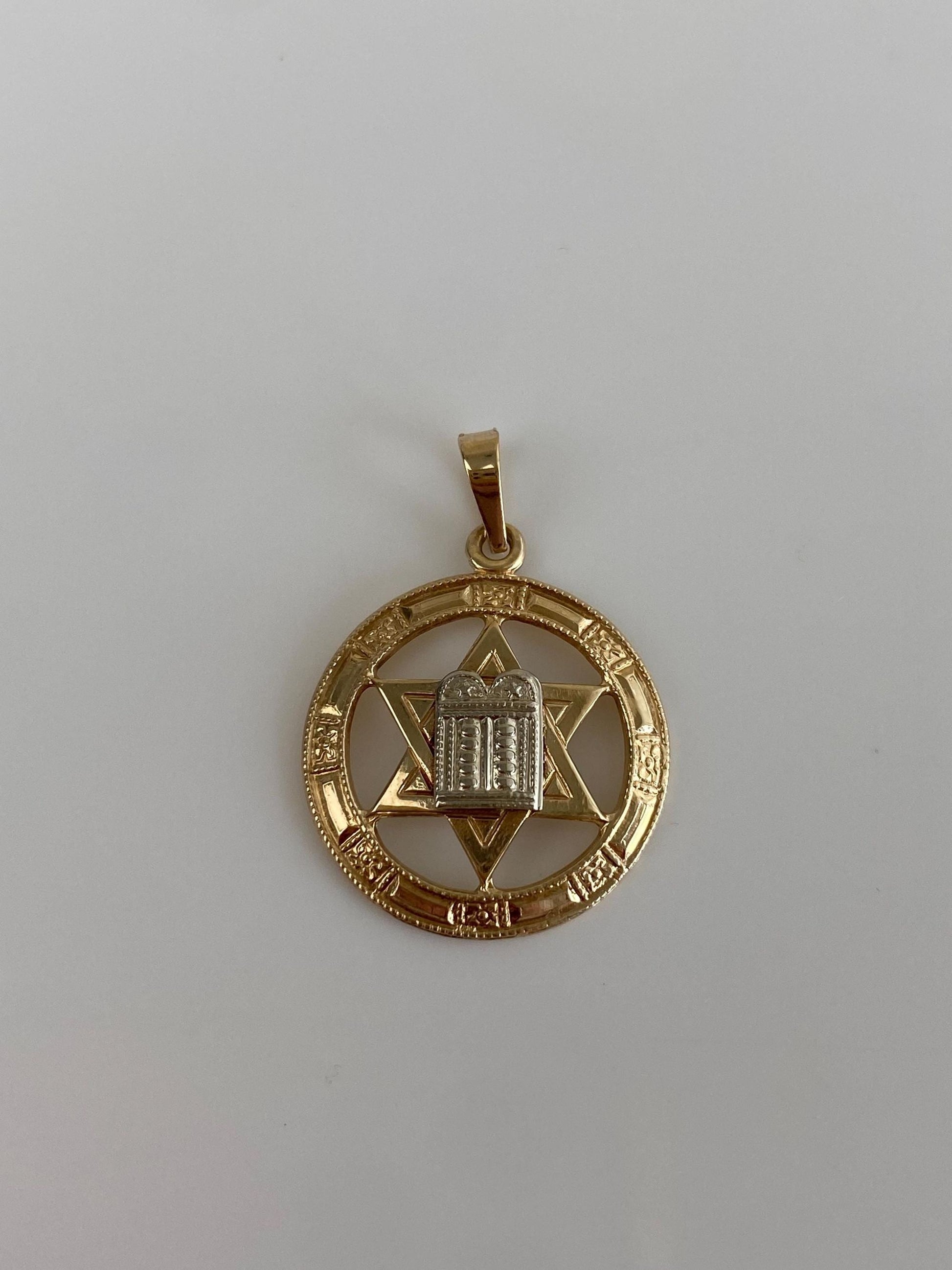 Vintage Solid 14k White & Yellow Gold Star Of David Scroll 10 Commandments Charm