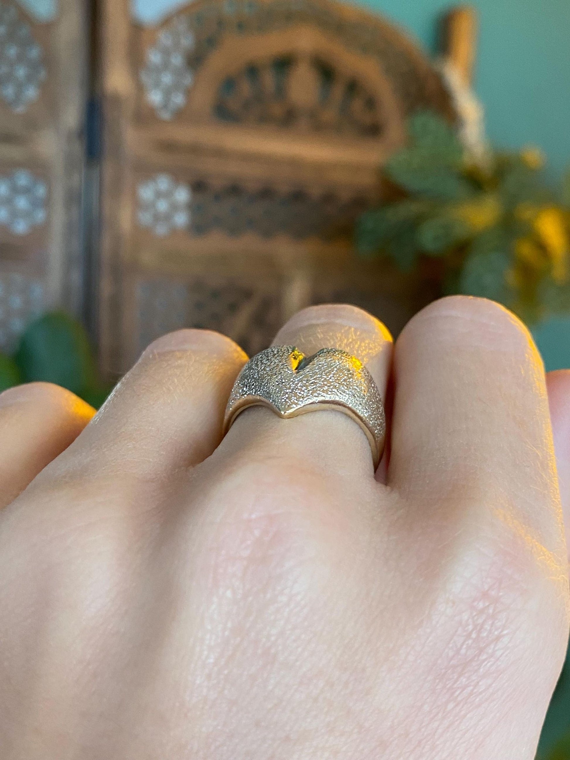 Vintage Solid 14k White & Yellow Gold Textured Heart Chevron Ring Band - Size 6.25