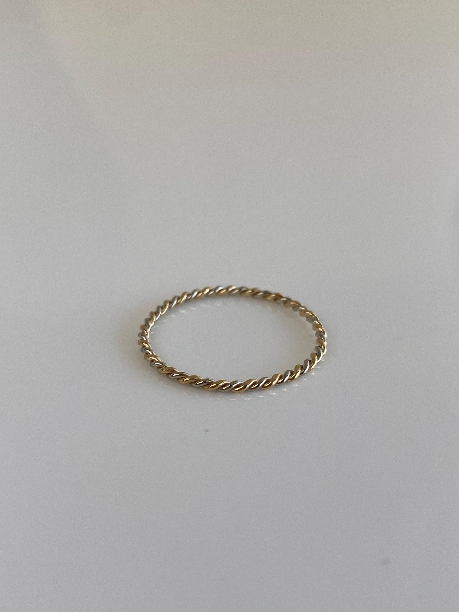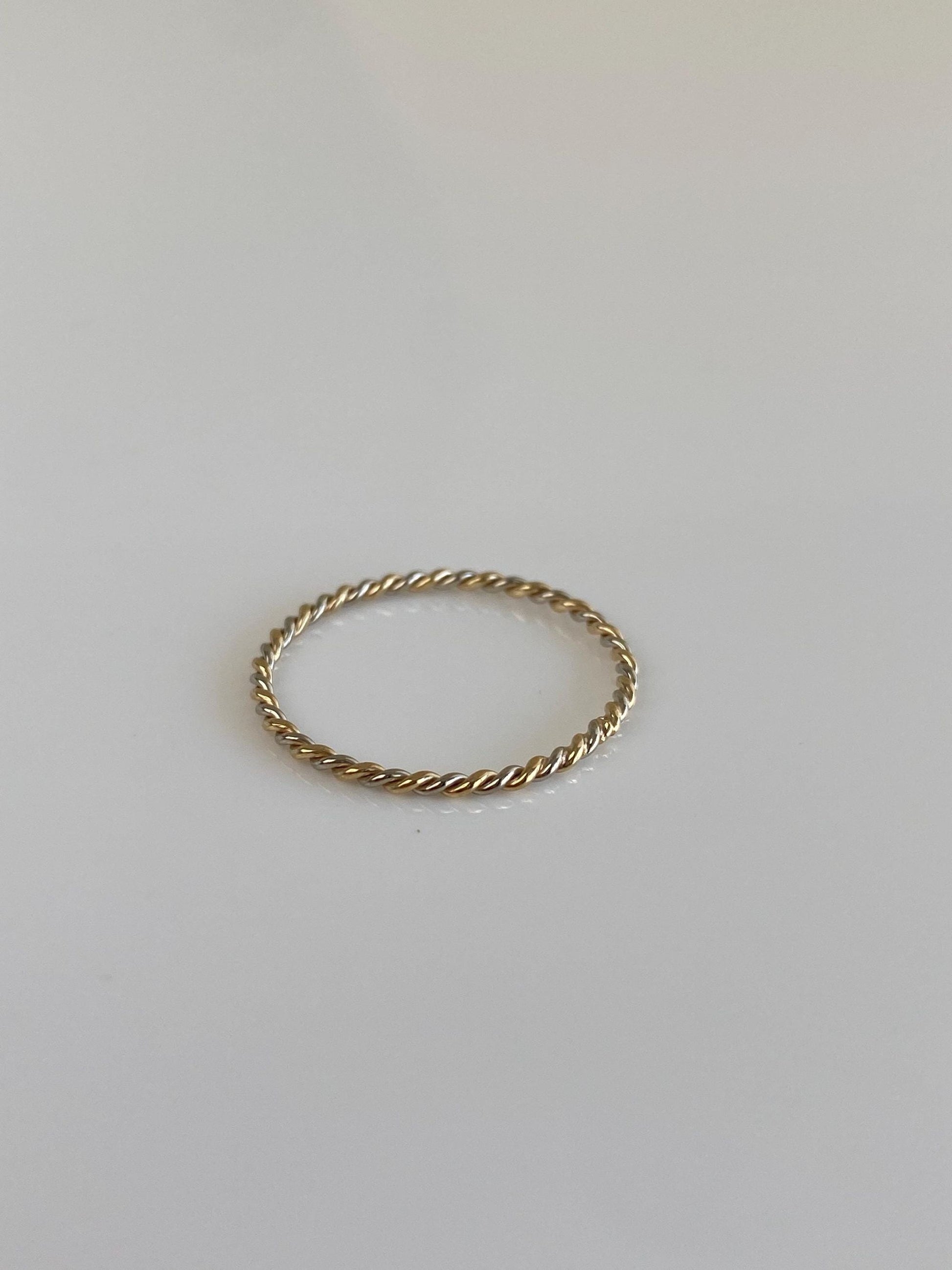 Vintage Solid 14k White & Yellow Gold Twist Ring - Size 7.5