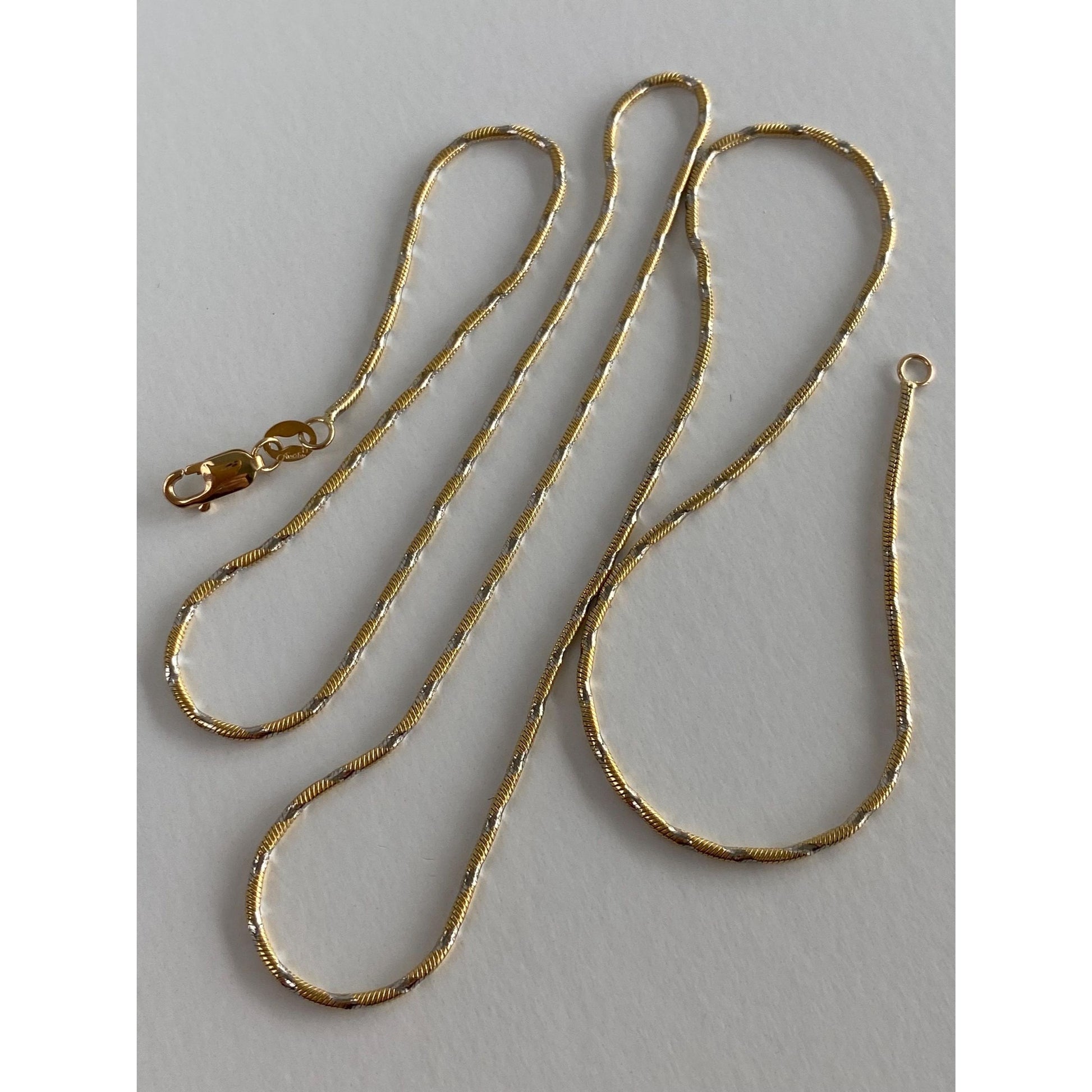 Vintage Solid 14k White & Yellow Gold Twist Snake Chain Necklace - 20.25 inches
