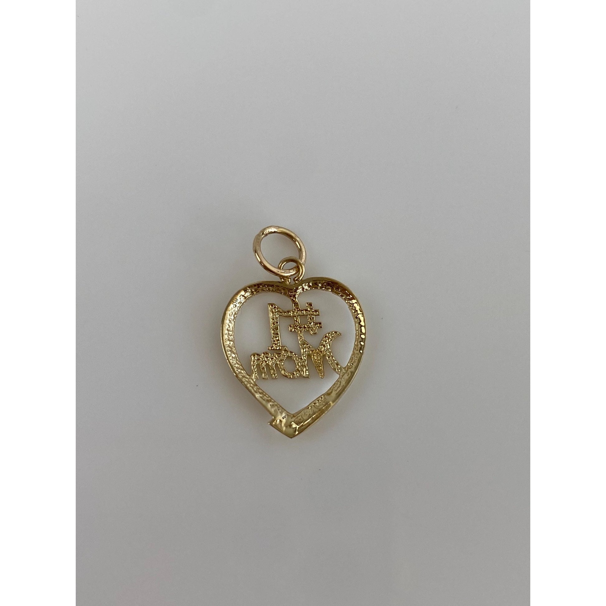 Vintage Solid 14k Yellow Gold #1 Mom Heart Charm