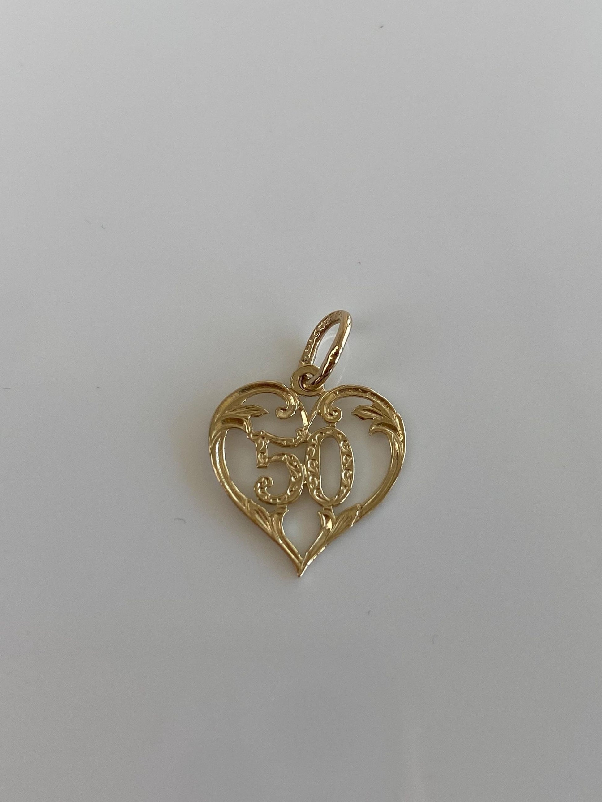 Vintage Solid 14k Yellow Gold '50' Heart Charm