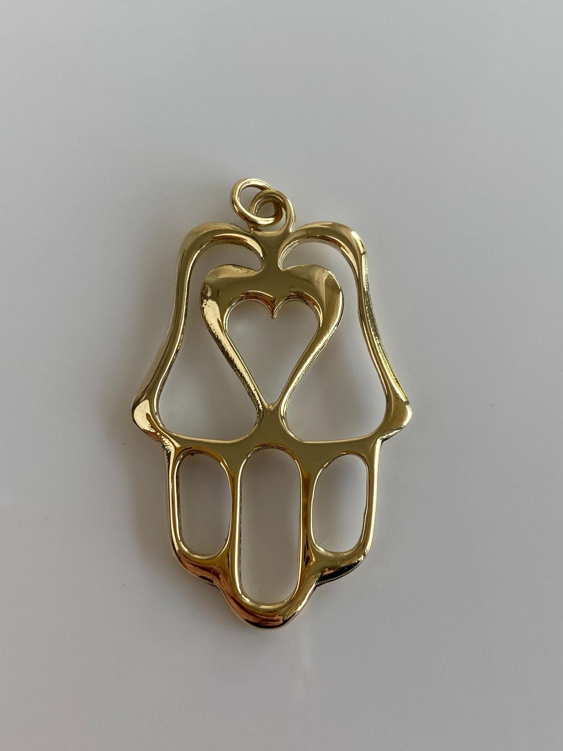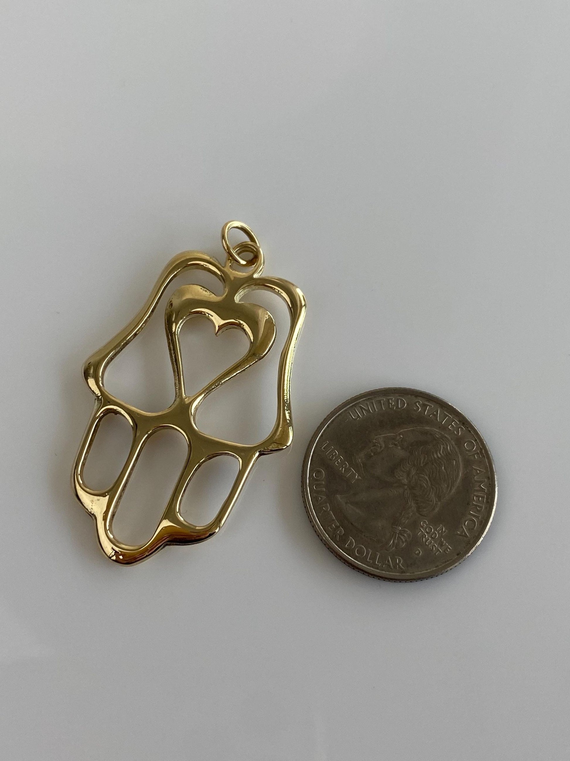 Vintage Solid 14k Yellow Gold Abstract Open Work Hamsa Hand Heart Charm