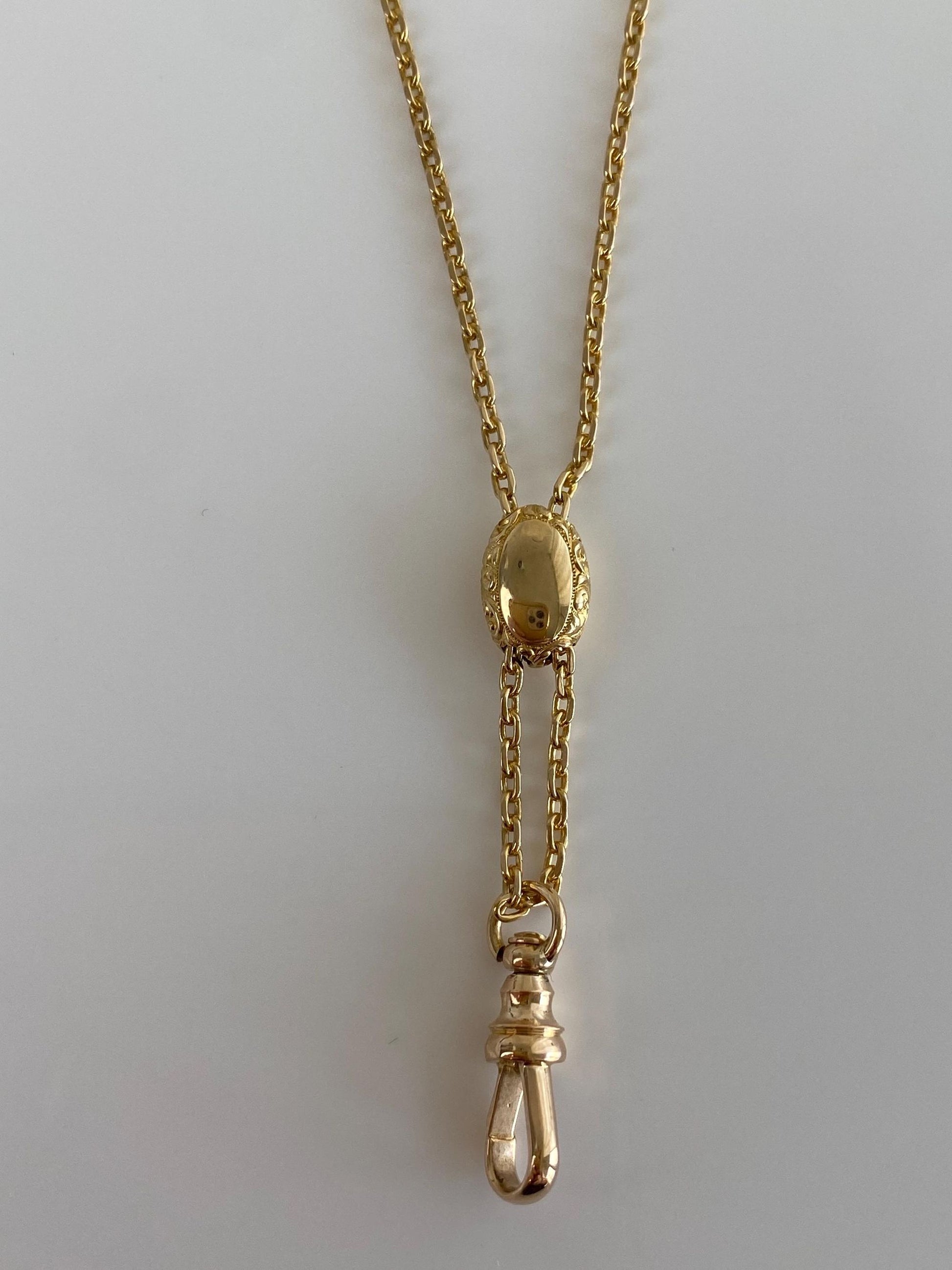 Vintage Solid 14k Yellow Gold Adjustable Slide Biker Link Chain Charm Holder Lariat Necklace - 30.75 inches