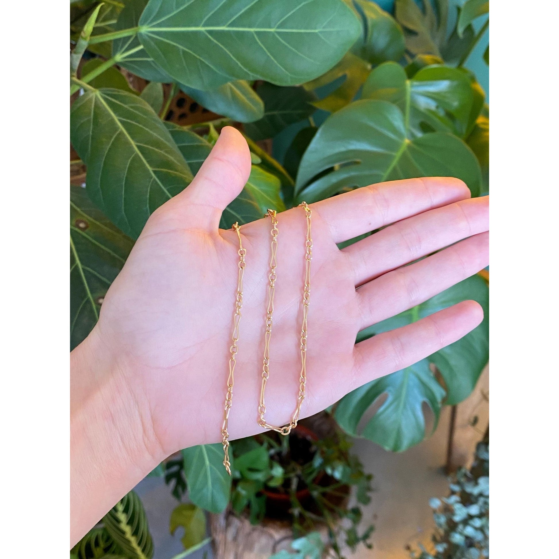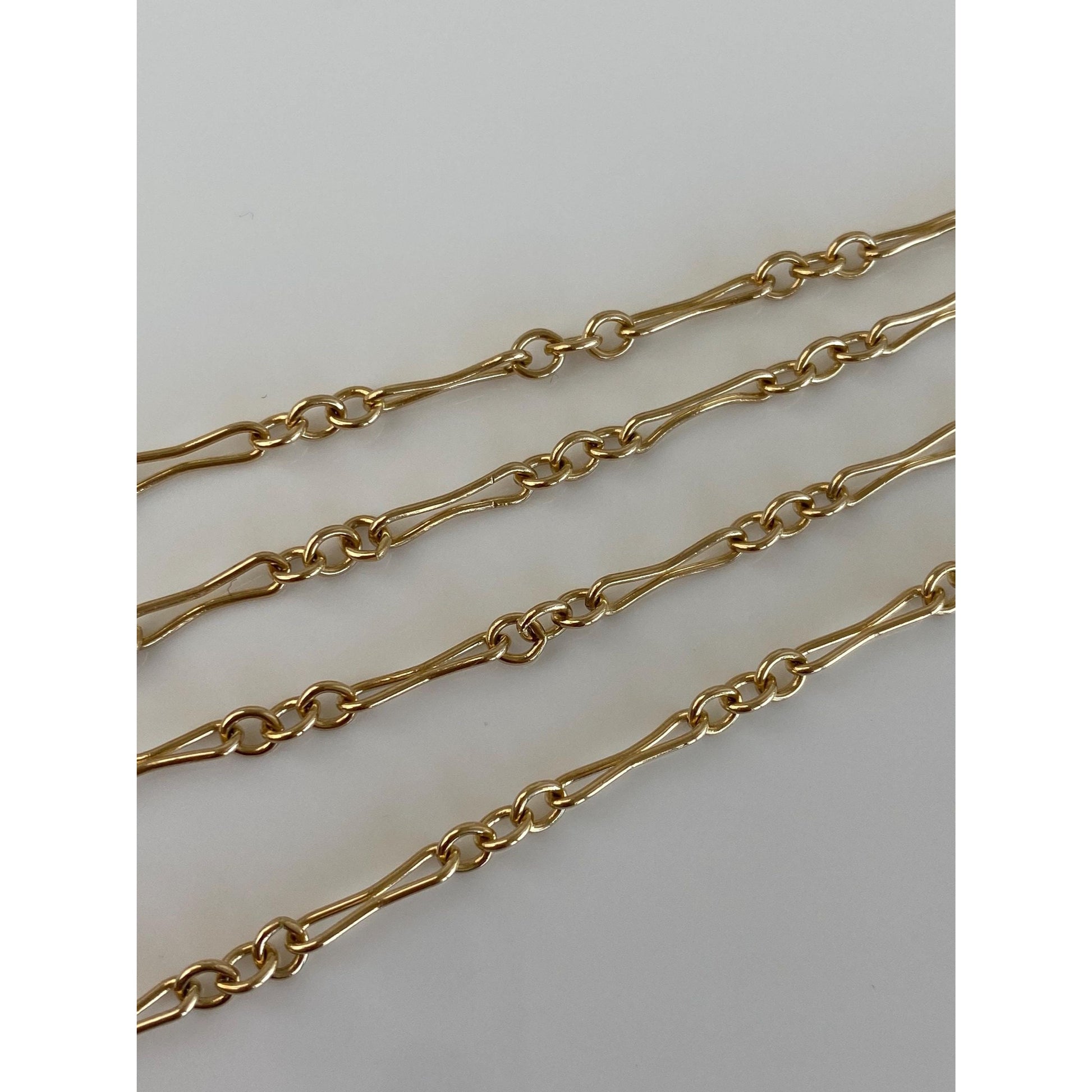 Vintage Solid 14k Yellow Gold Albert Trombone Link Chain Necklace - 14.75 inches