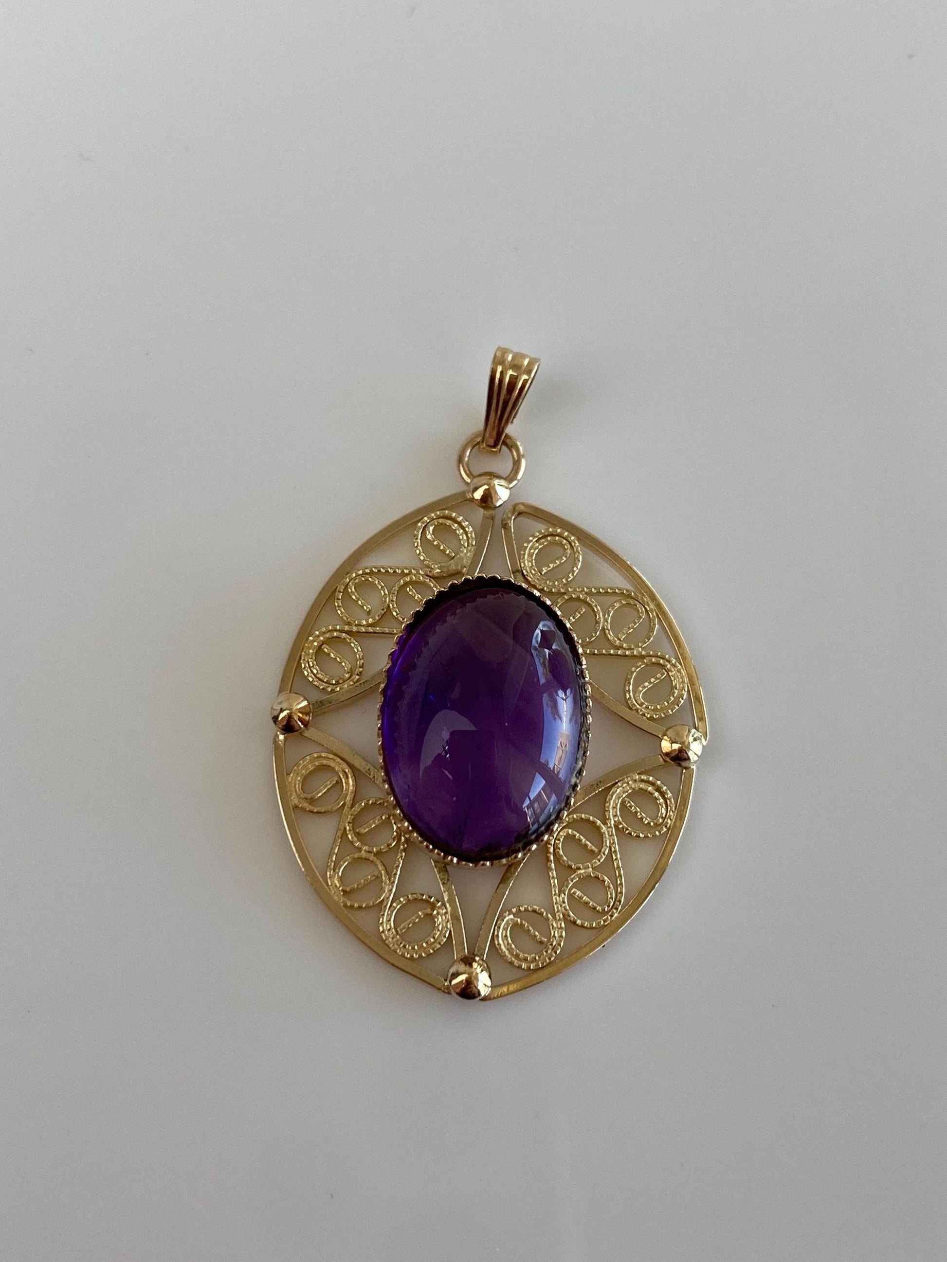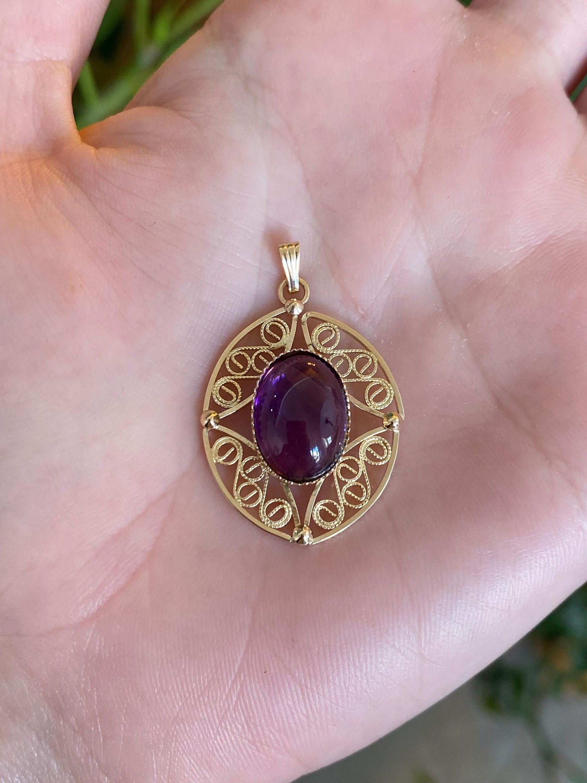 Vintage Solid 14k Yellow Gold Amethyst Cabochon Charm