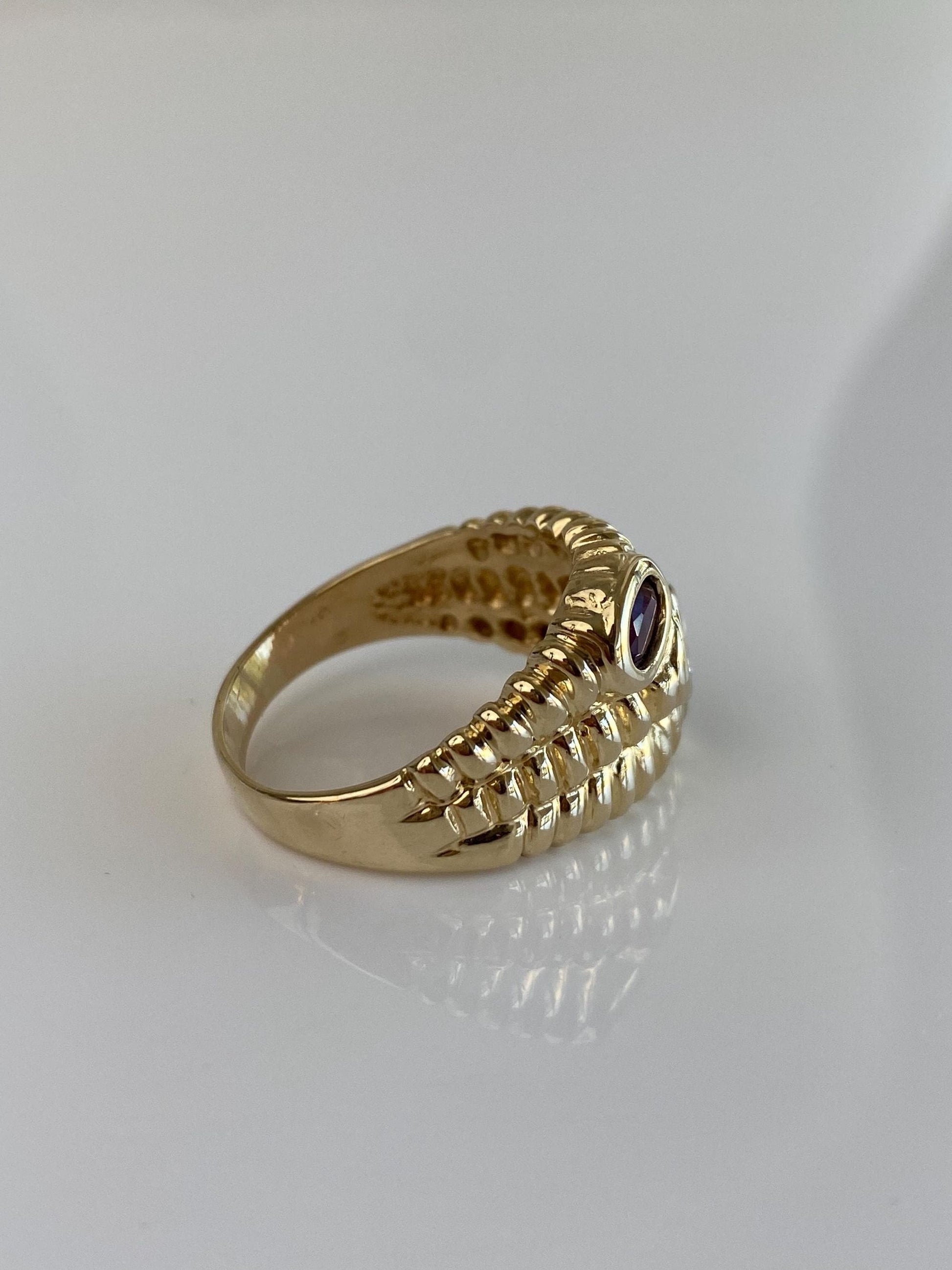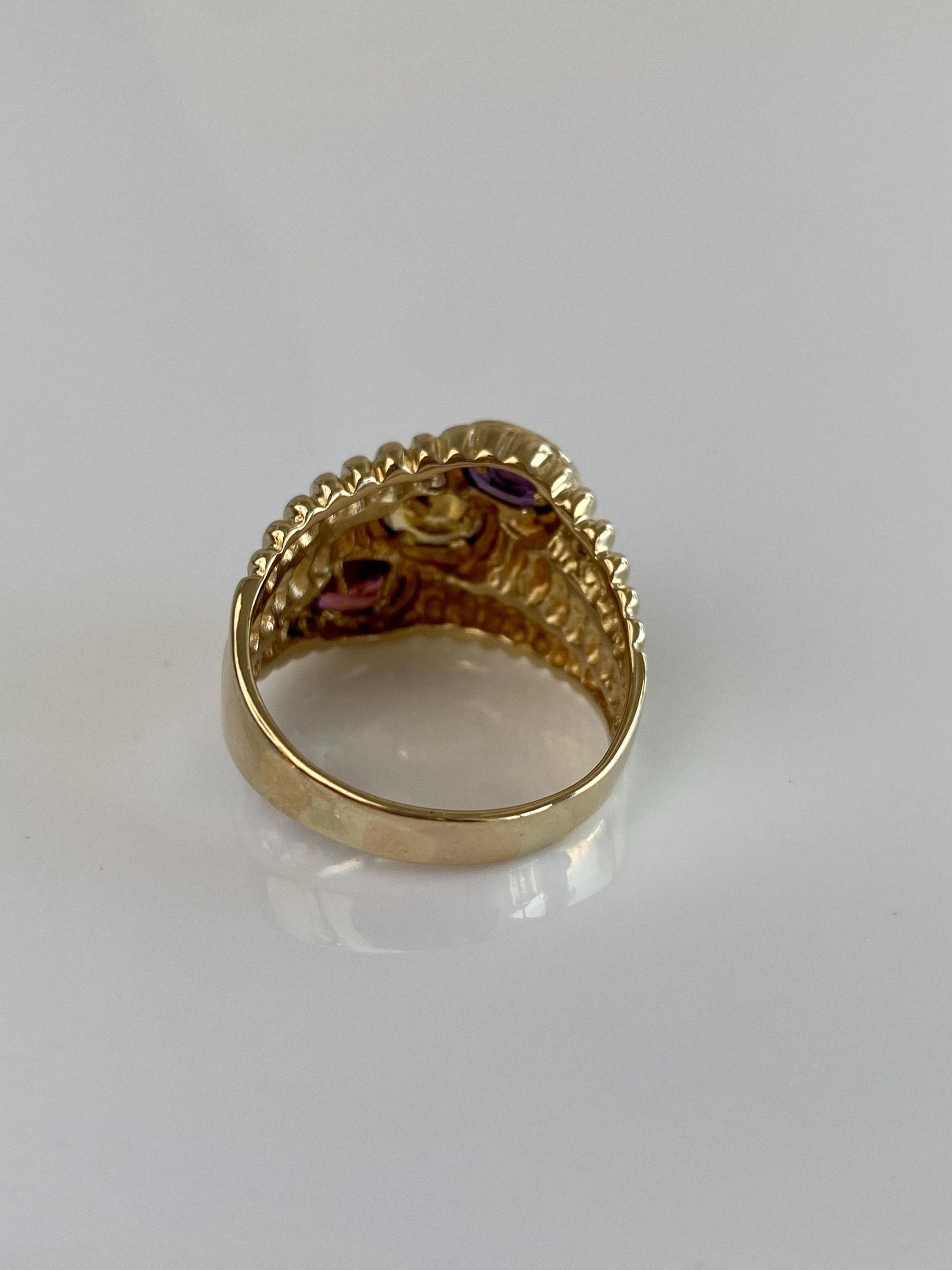 Vintage Solid 14k Yellow Gold Amethyst Citrine Garnet Textured Ring - Size 9.5