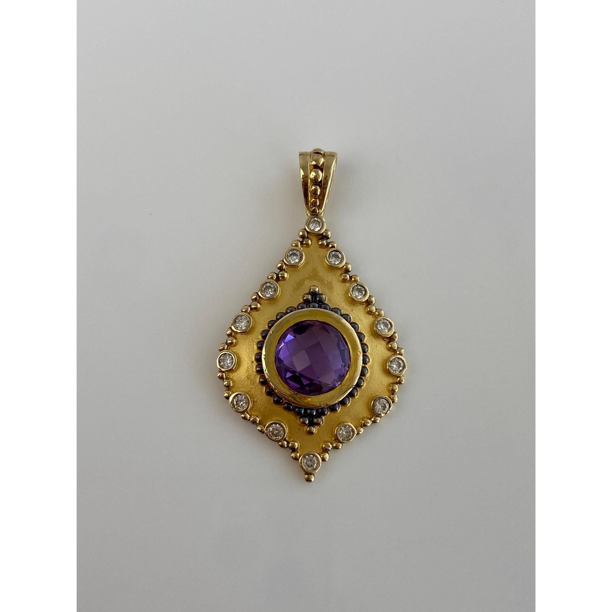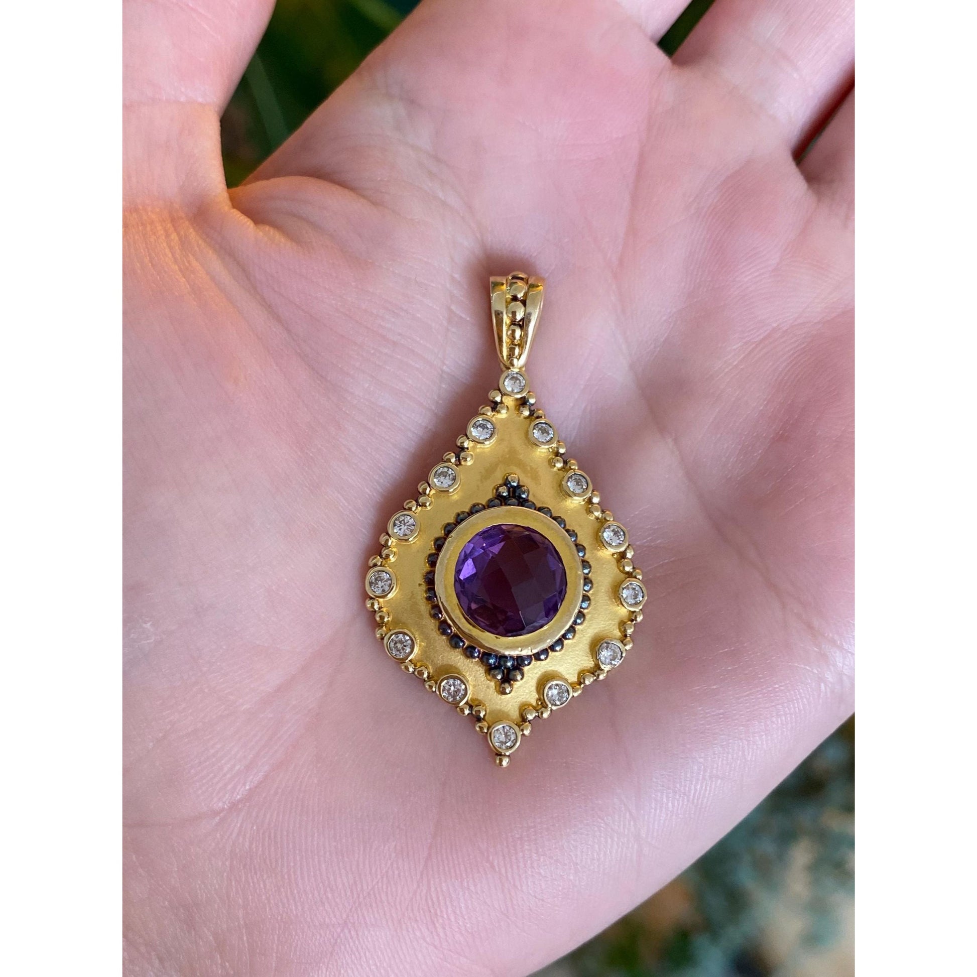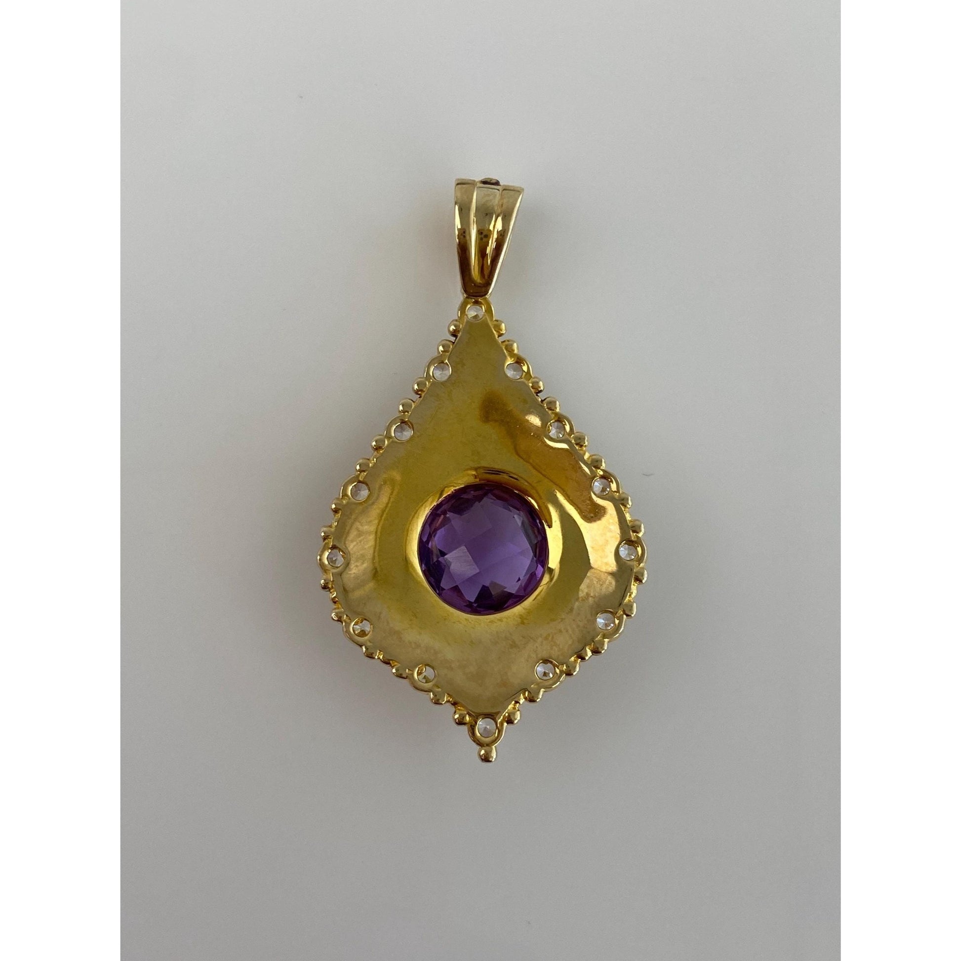 Vintage Solid 14k Yellow Gold Amethyst Clear Cubic Zirconia Charm