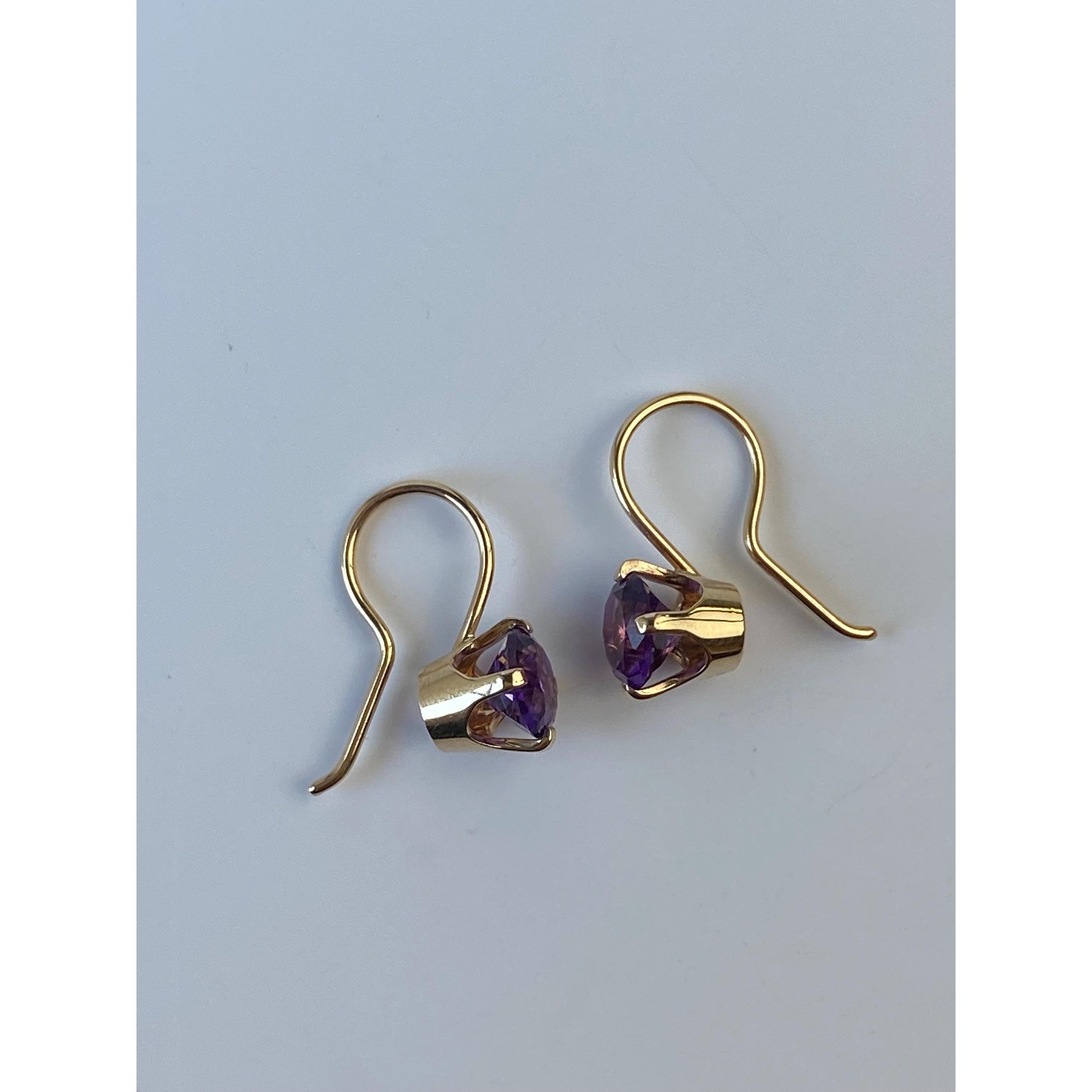 Vintage Solid 14k Yellow Gold Amethyst Dangle Earrings