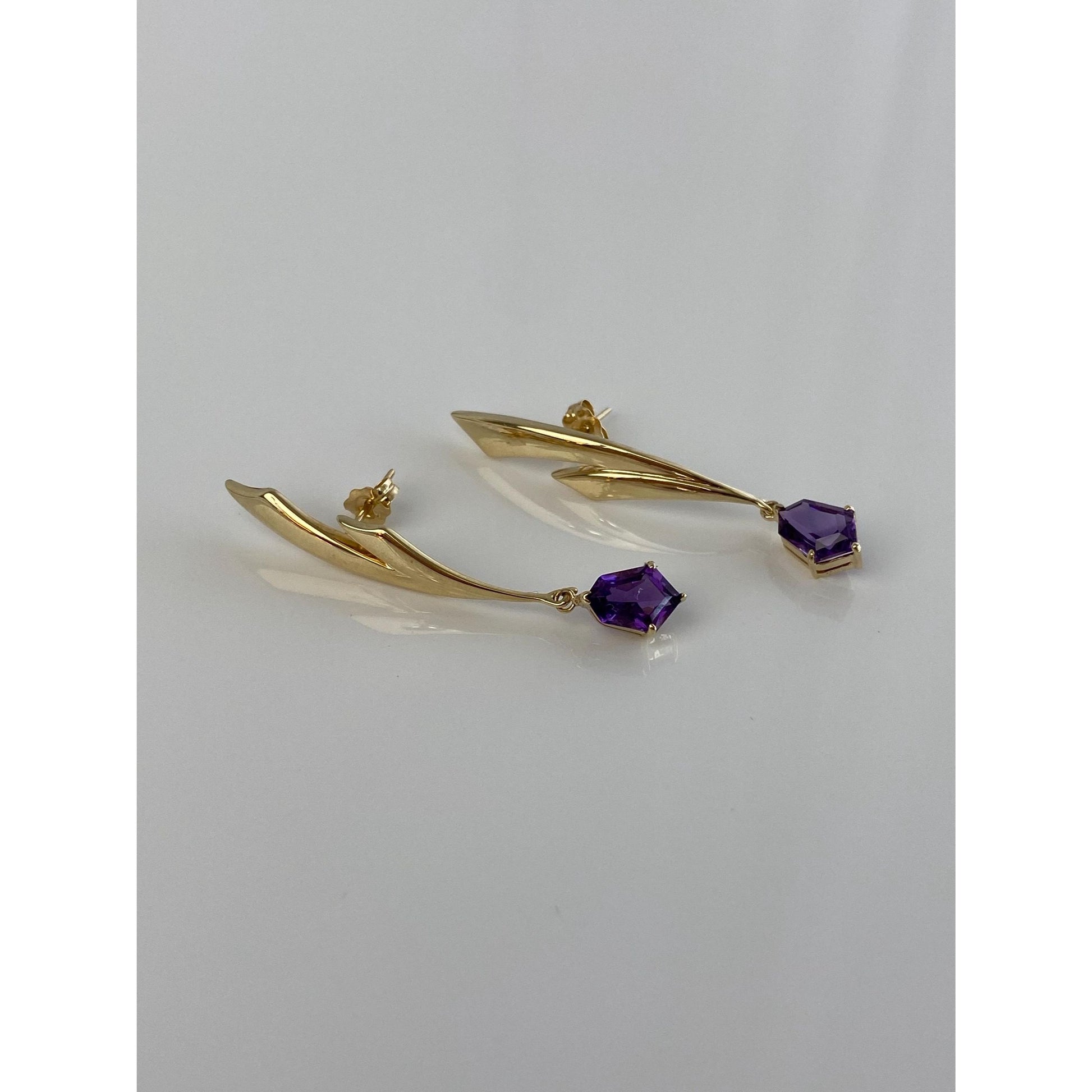 Vintage Solid 14k Yellow Gold Amethyst Dangle Stud Earrings