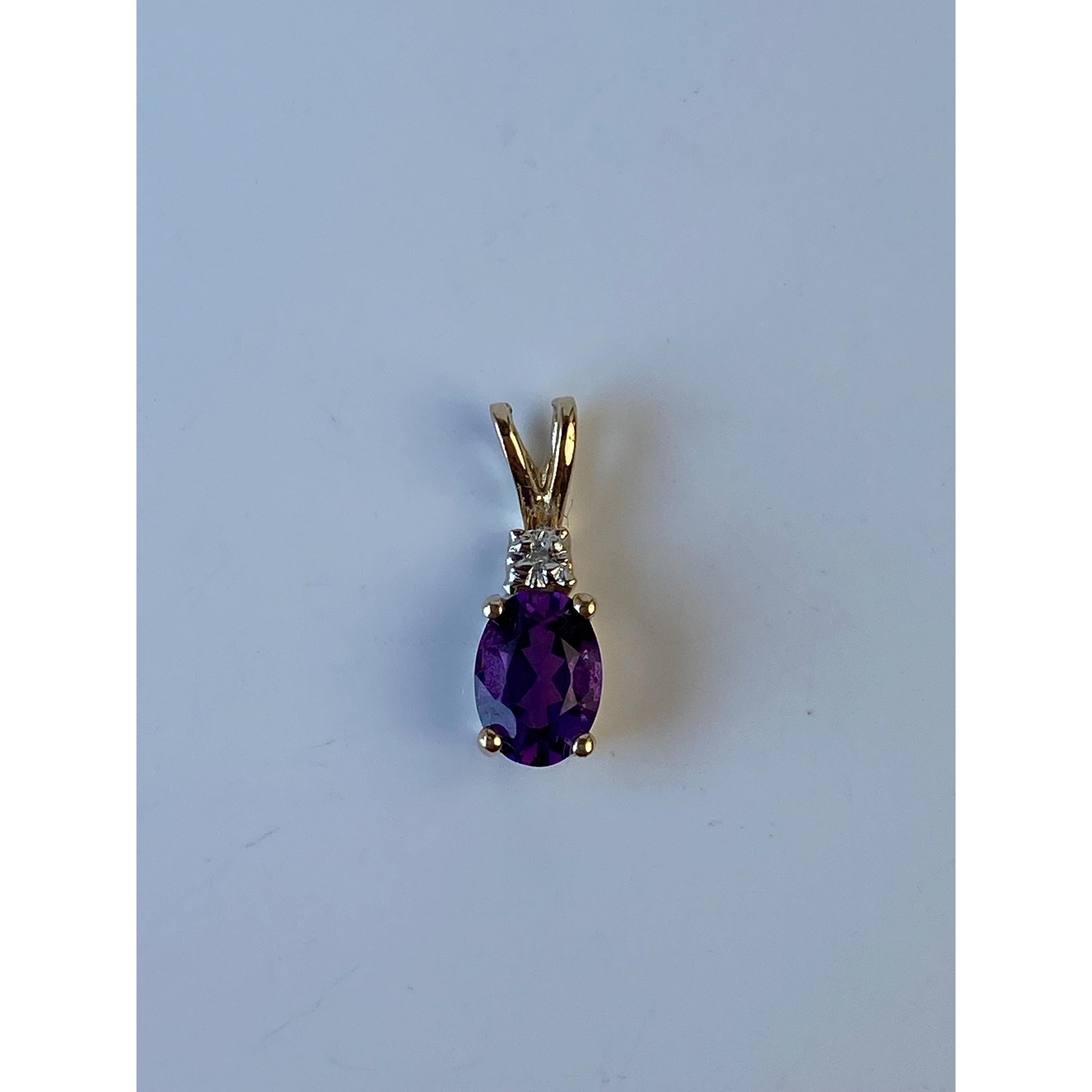 Vintage Solid 14k Yellow Gold Amethyst Diamond Charm