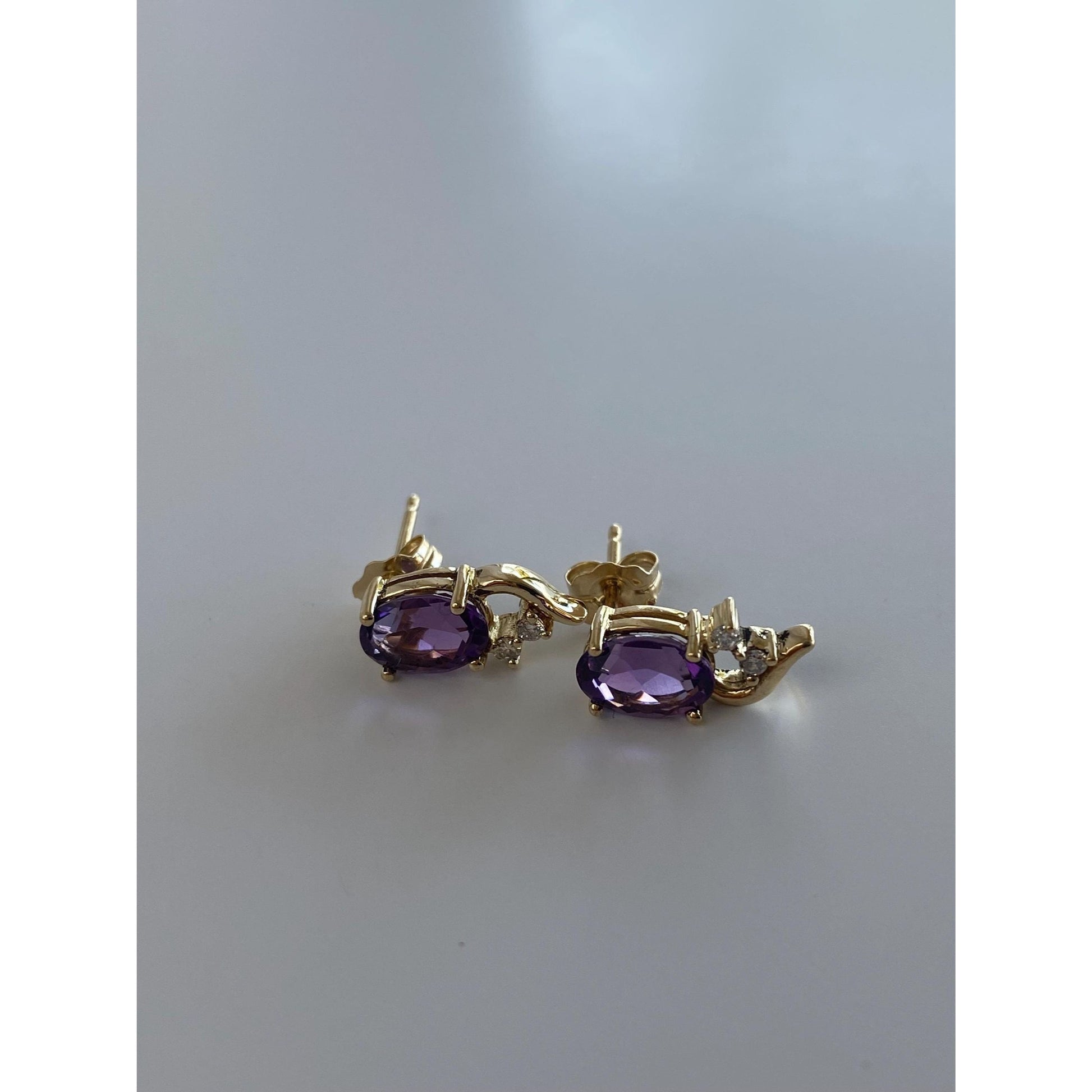 Vintage Solid 14k Yellow Gold Amethyst Diamond Stud Earrings