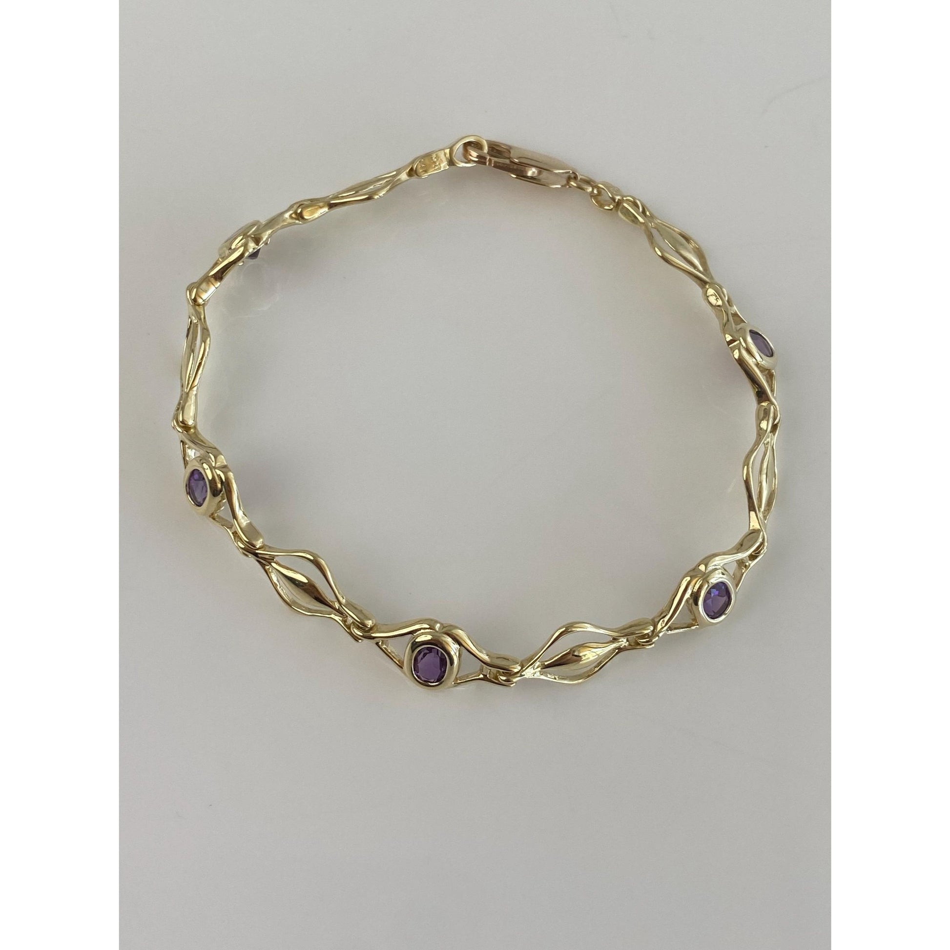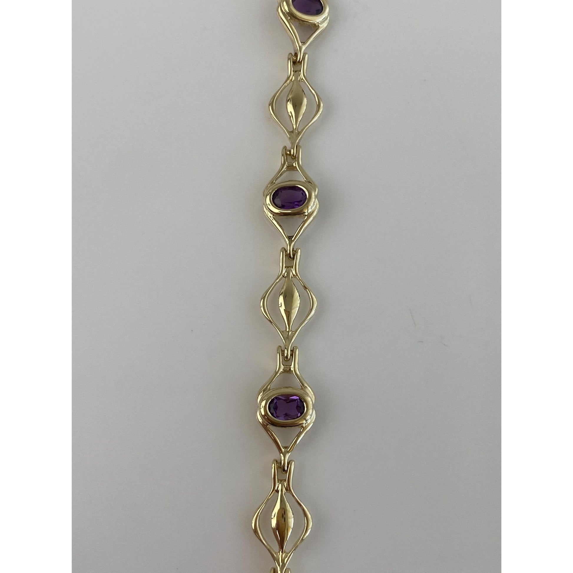 Vintage Solid 14k Yellow Gold Amethyst Link Bracelet - 7.5 inches