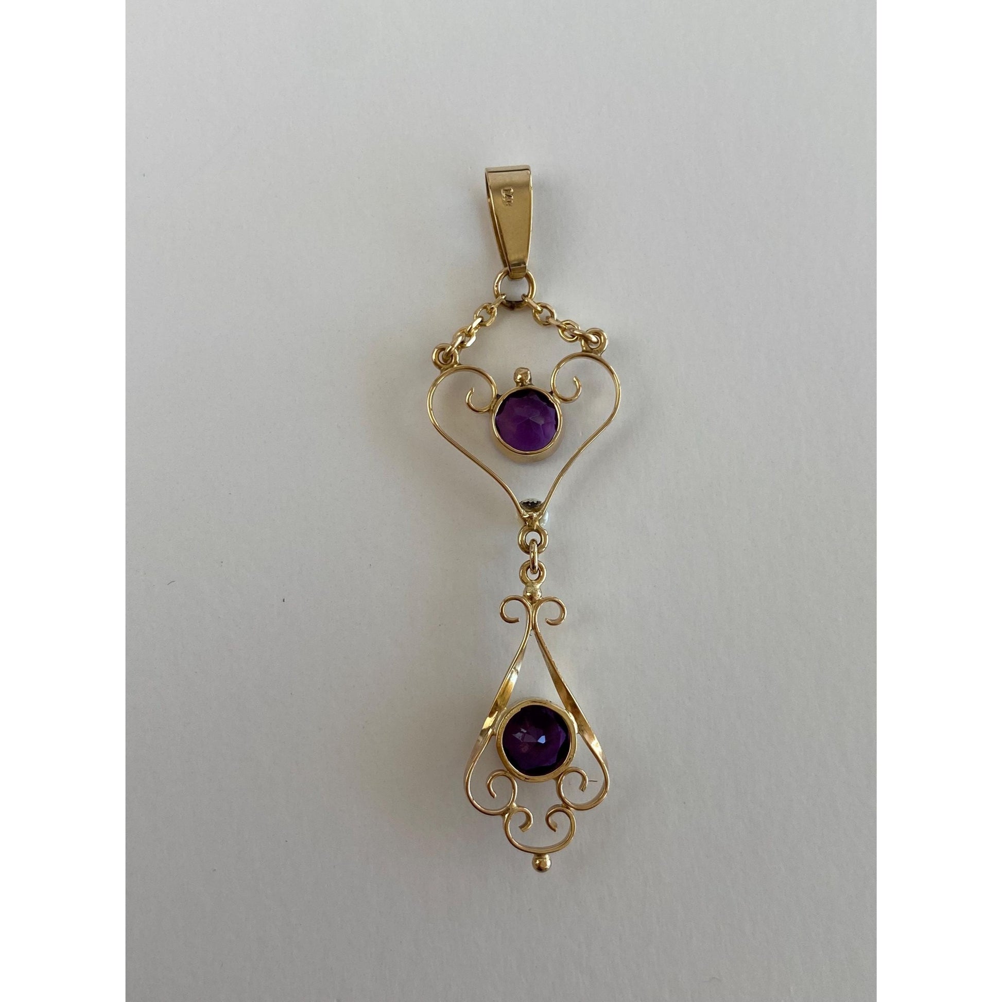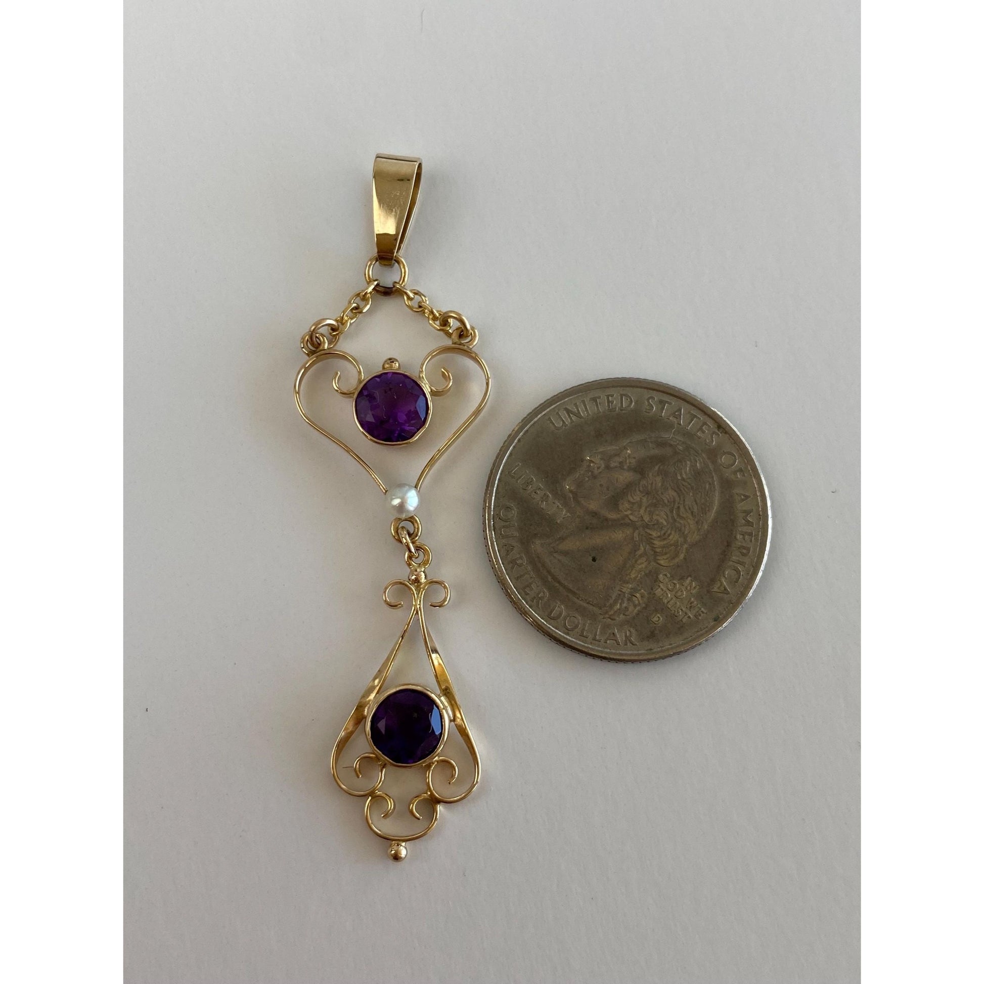 Vintage Solid 14k Yellow Gold Amethyst Pearl Dangle Charm