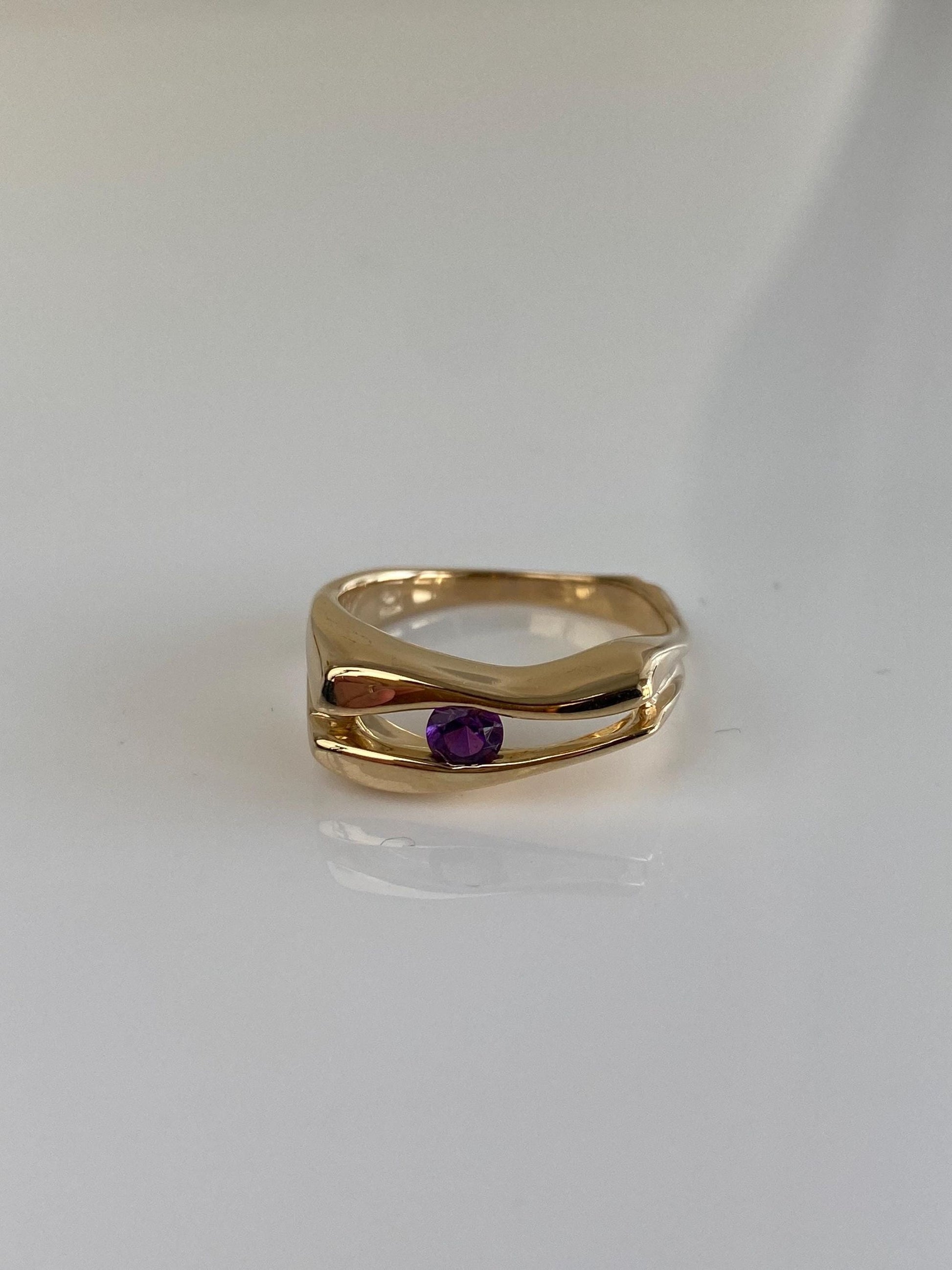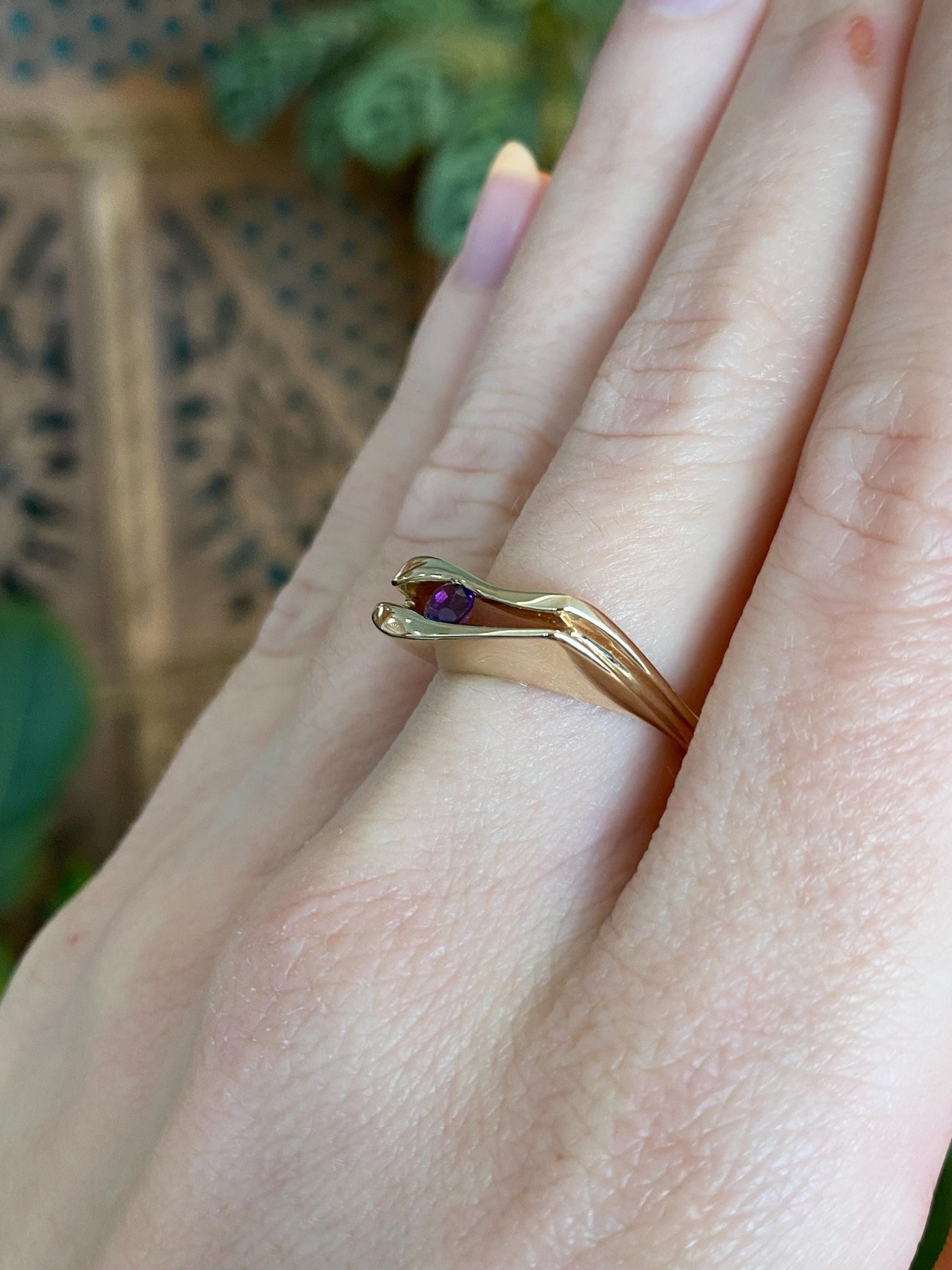 Vintage Solid 14k Yellow Gold Amethyst Ring - Size 6.5